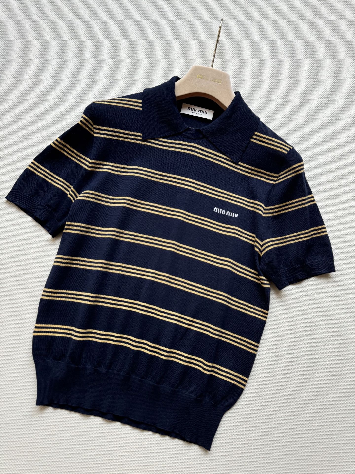 这款衣服是AAAAA 1:1 质量 (非常棒). 使用了和原版一模一样的材料. 商标部分也保持了和缪缪/Miu Miu一样. 图片拍摄是实物衣服拍摄, 您所收到的实物保证和我们图片一模一样.