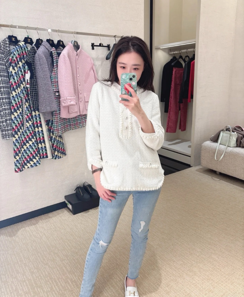 这款衣服是AAAAA 1:1 质量 (非常棒). 使用了和原版一模一样的材料. 商标部分也保持了和香奈儿/Chanel一样. 图片拍摄是实物衣服拍摄, 您所收到的实物保证和我们图片一模一样.