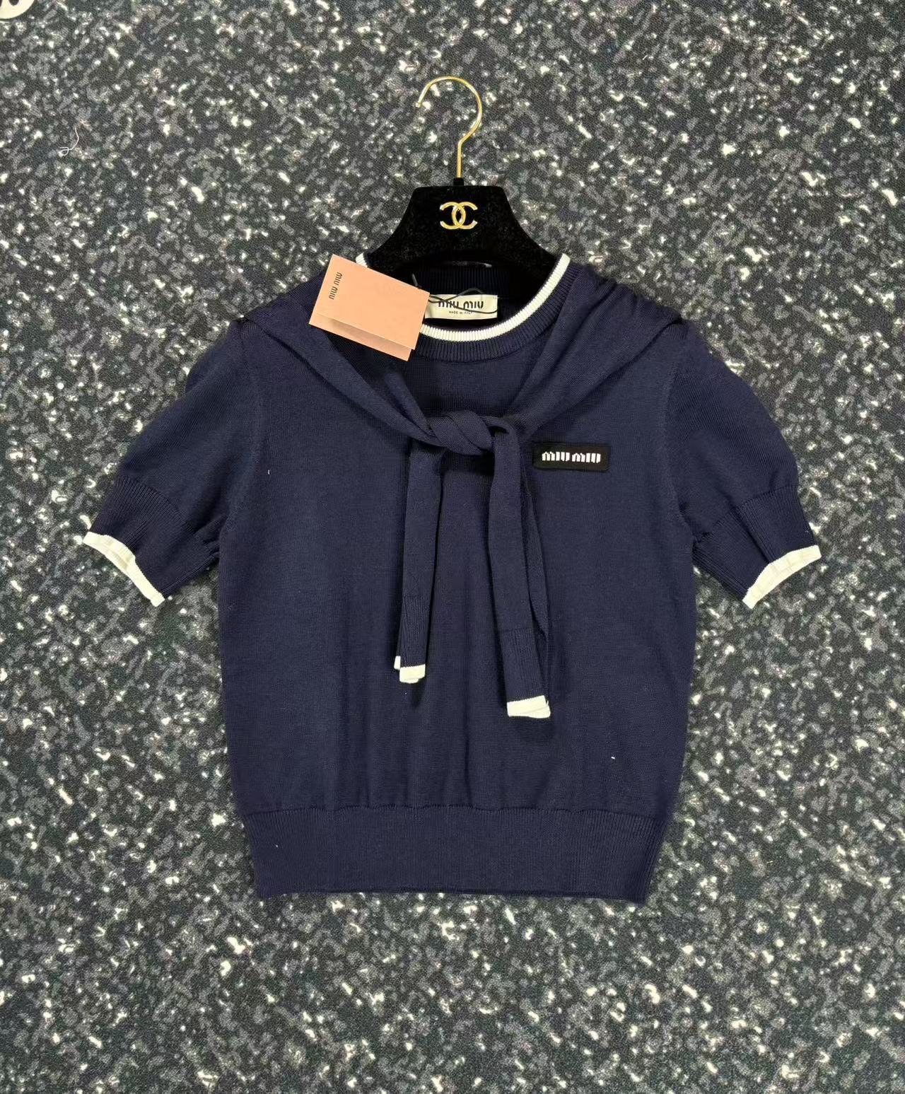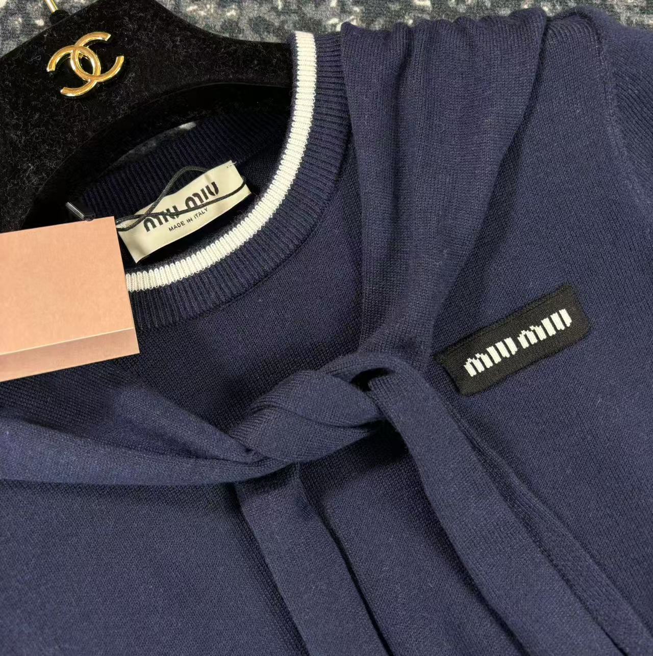 这款衣服是AAAAA 1:1 质量 (非常棒). 使用了和原版一模一样的材料. 商标部分也保持了和缪缪/Miu Miu一样. 图片拍摄是实物衣服拍摄, 您所收到的实物保证和我们图片一模一样.