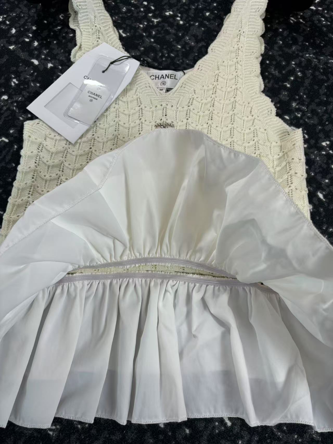这款衣服是AAAAA 1:1 质量 (非常棒). 使用了和原版一模一样的材料. 商标部分也保持了和香奈儿/Chanel一样. 图片拍摄是实物衣服拍摄, 您所收到的实物保证和我们图片一模一样.