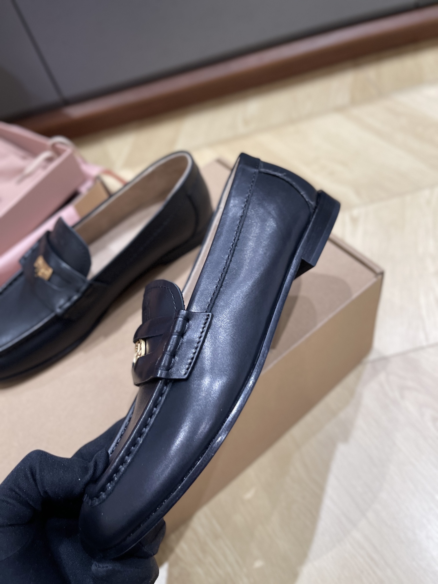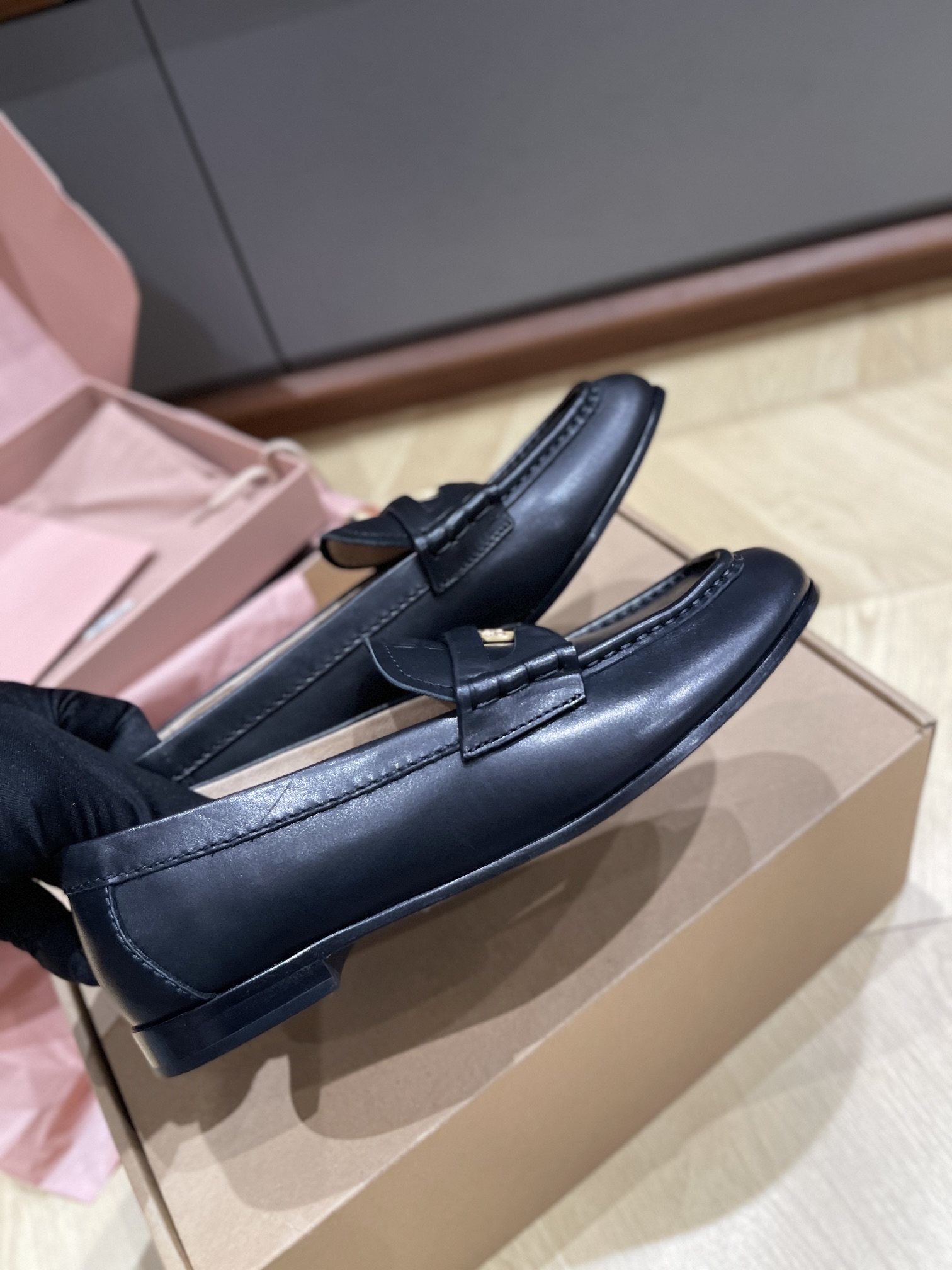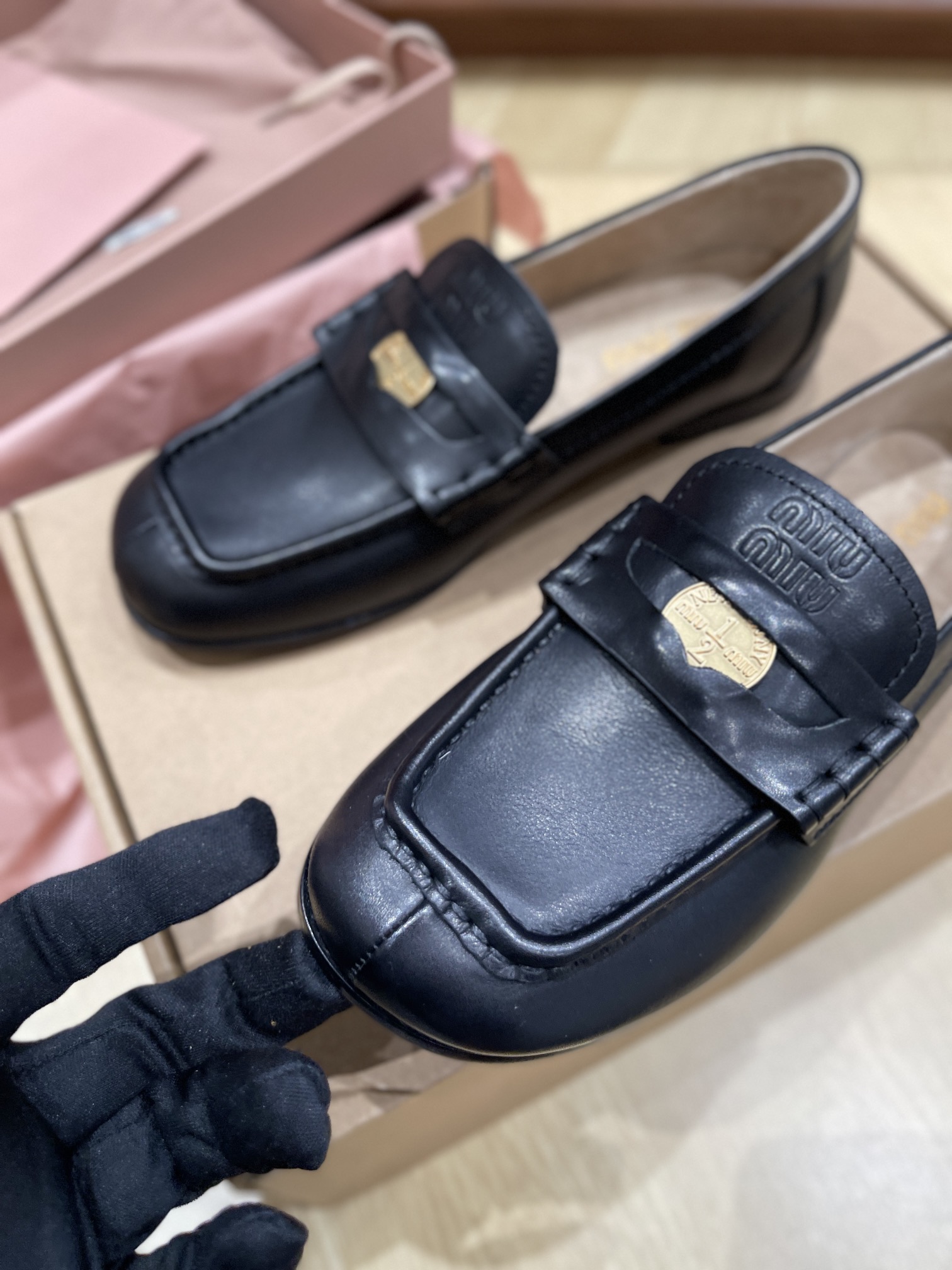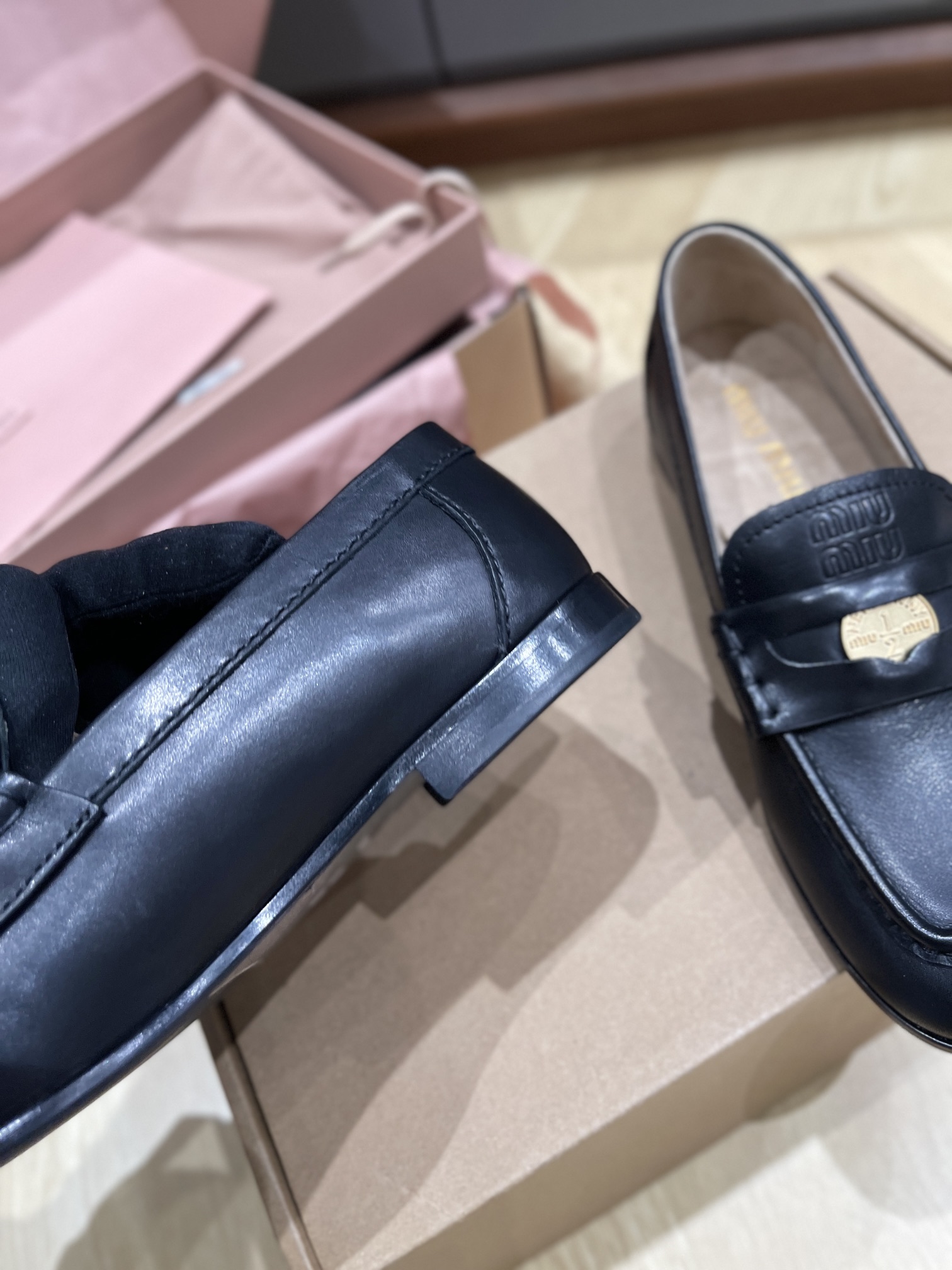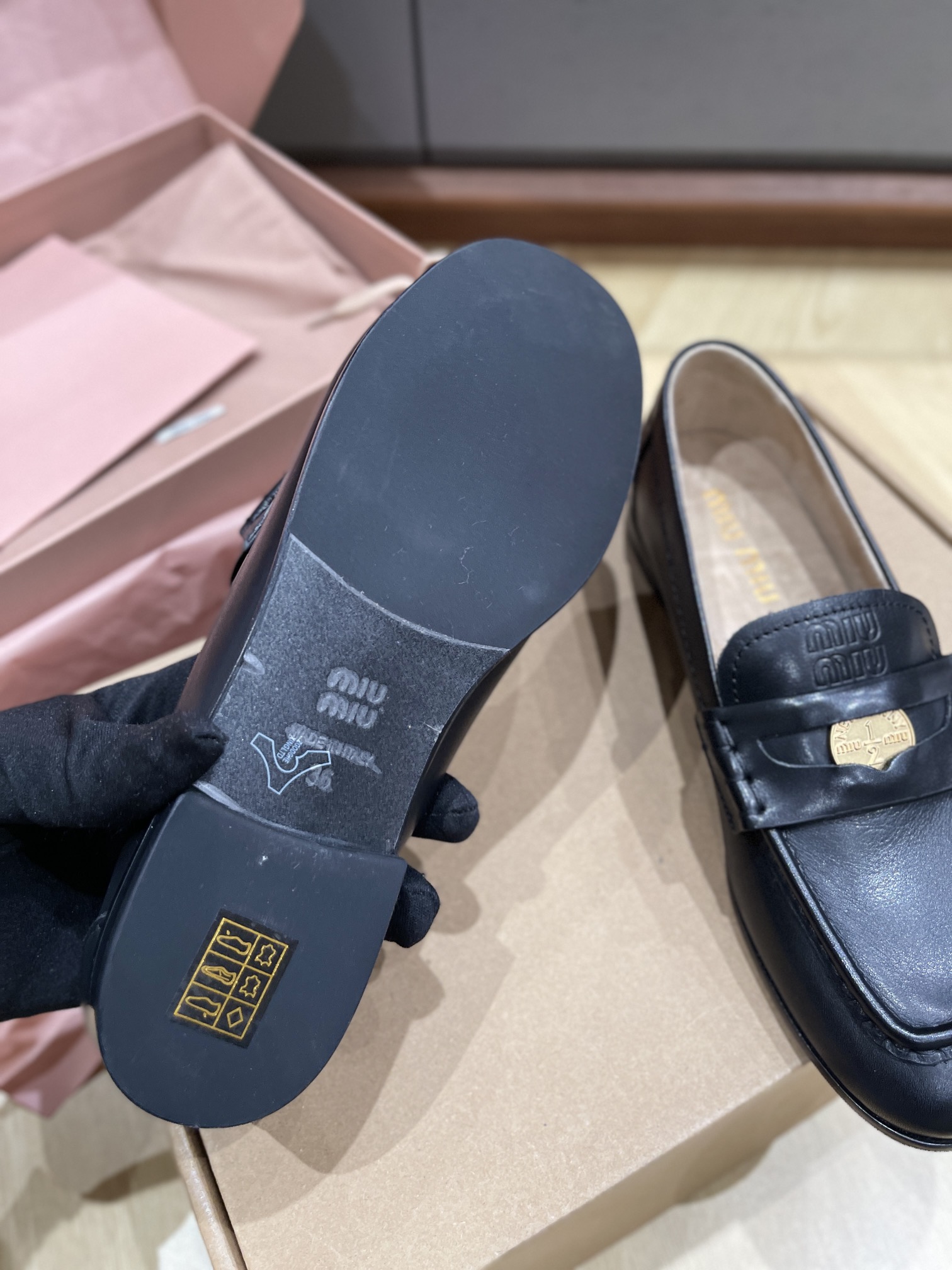 这款鞋子是AAAAA 1:1 质量 (非常棒). 使用了和原版一模一样的材料. 商标部分也保持了和缪缪/Miu Miu一样. 图片拍摄是实物鞋子拍摄, 您所收到的实物保证和我们图片一模一样.
