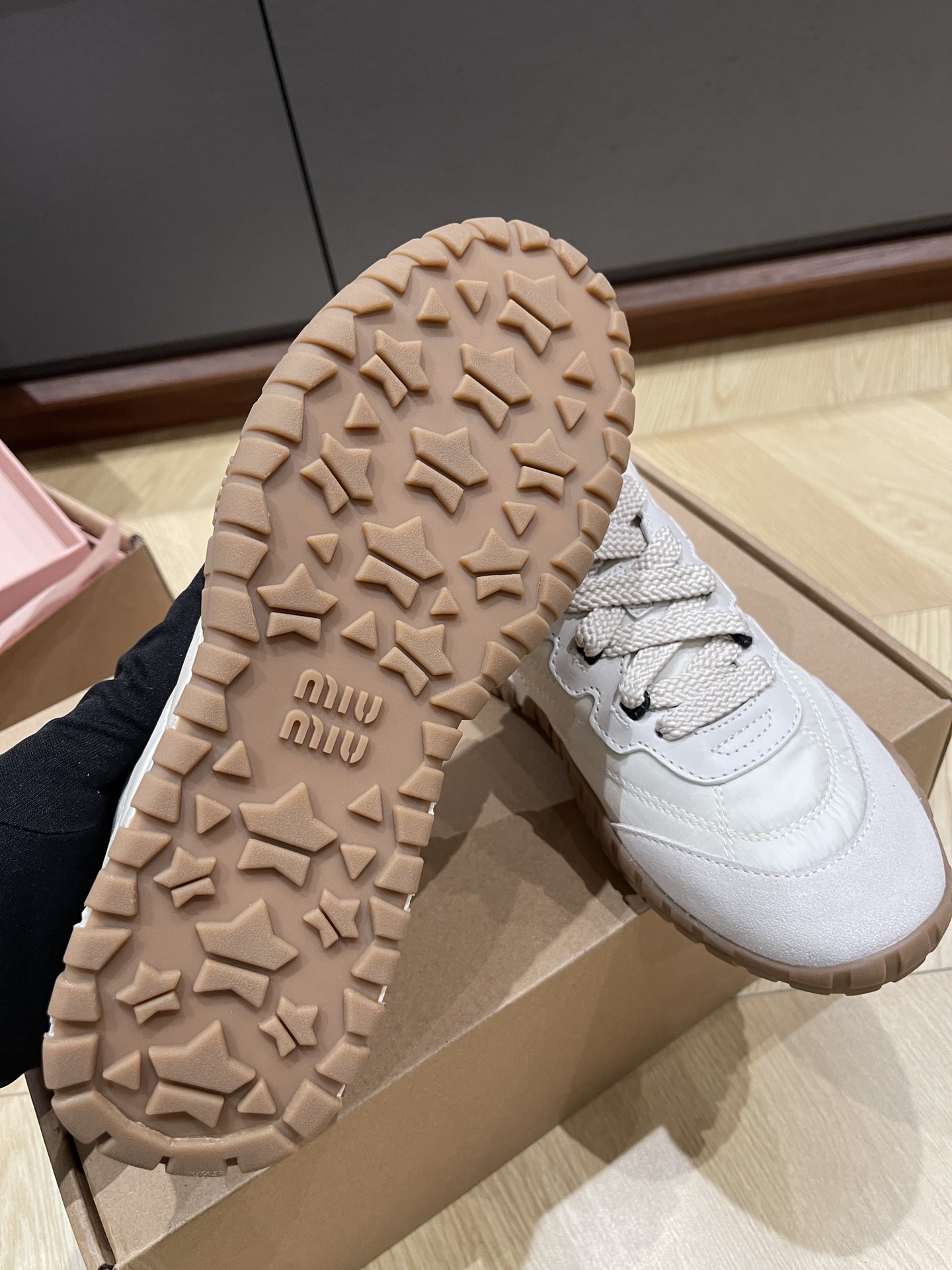 这款鞋子是AAAAA 1:1 质量 (非常棒). 使用了和原版一模一样的材料. 商标部分也保持了和缪缪/Miu Miu一样. 图片拍摄是实物鞋子拍摄, 您所收到的实物保证和我们图片一模一样.