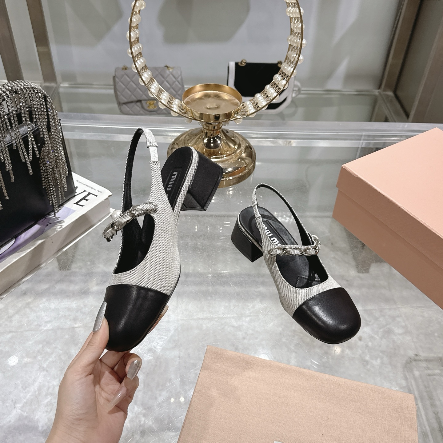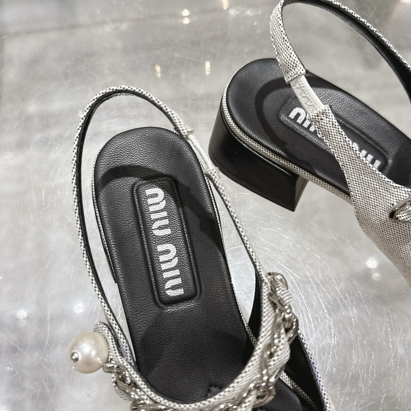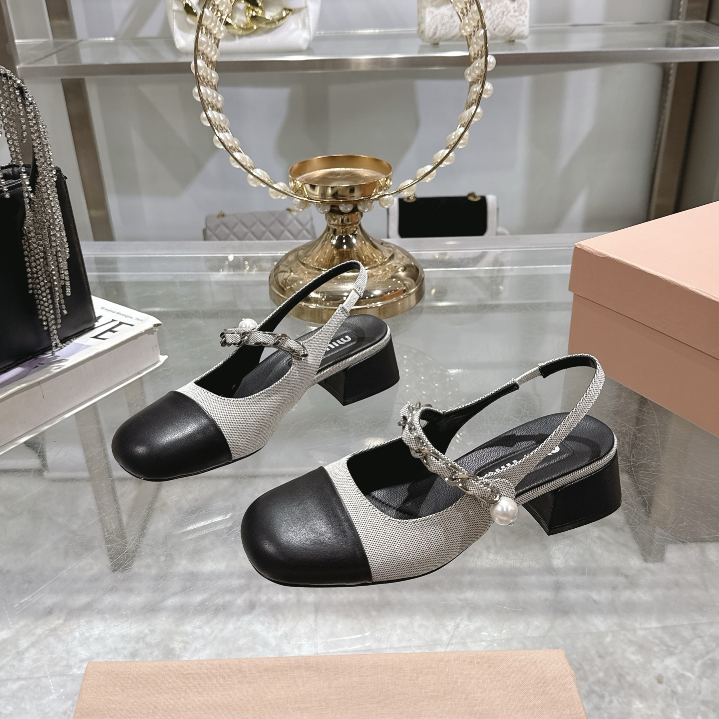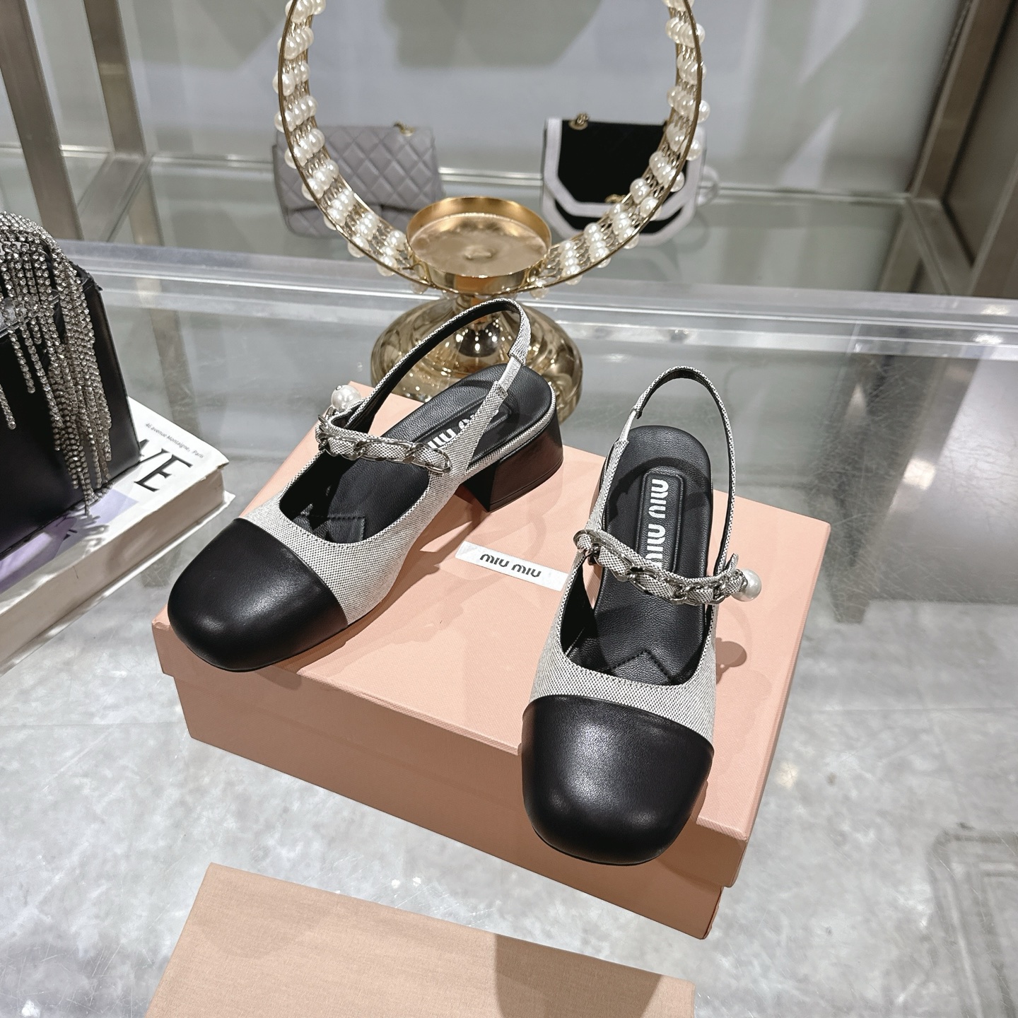 这款鞋子是AAAAA 1:1 质量 (非常棒). 使用了和原版一模一样的材料. 商标部分也保持了和缪缪/Miu Miu一样. 图片拍摄是实物鞋子拍摄, 您所收到的实物保证和我们图片一模一样.