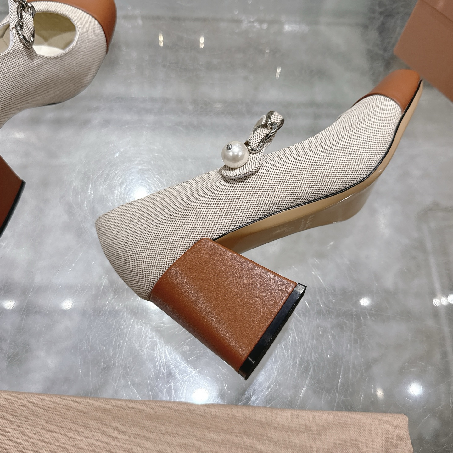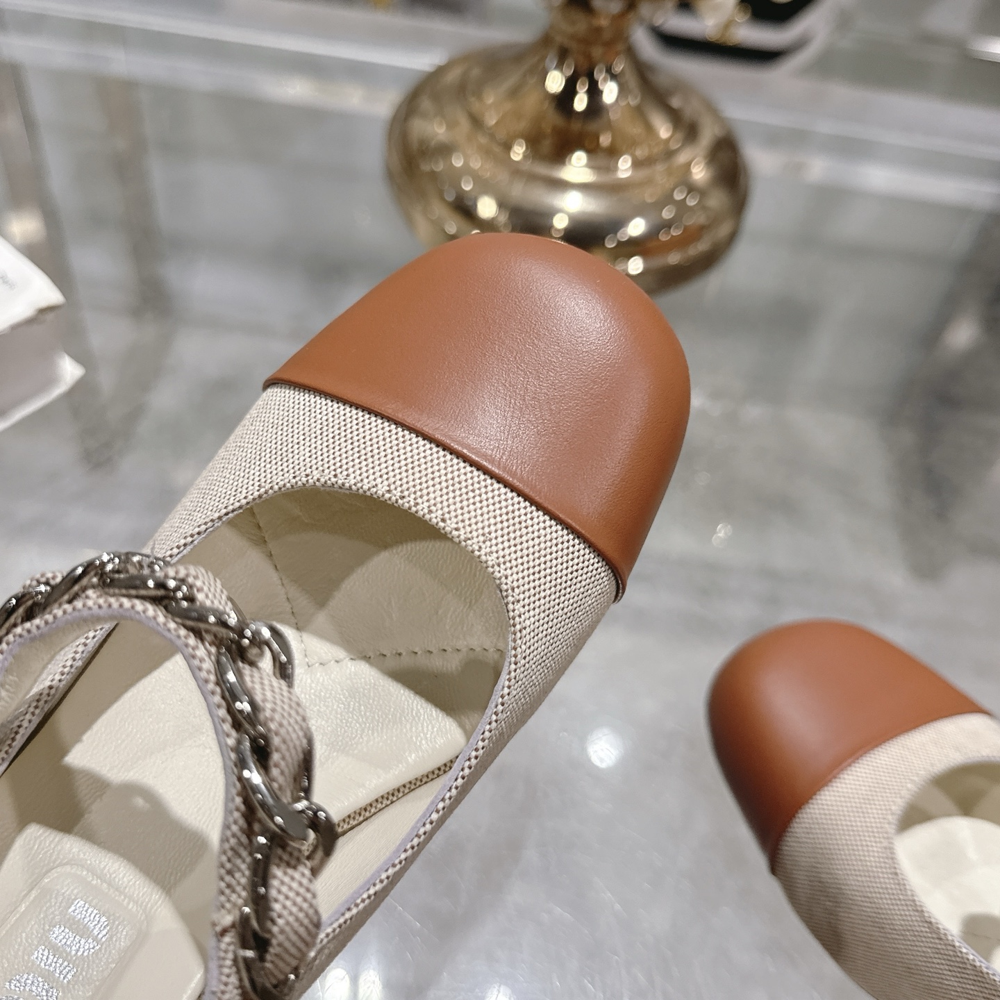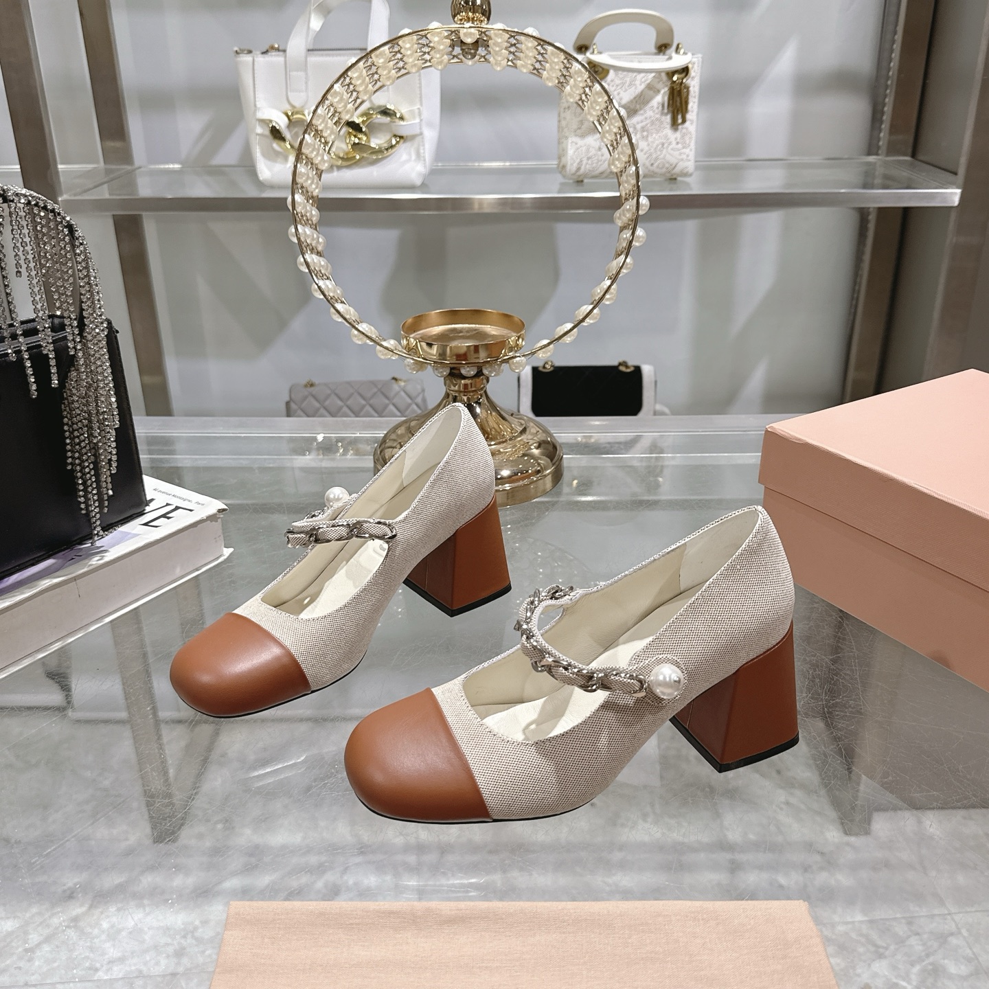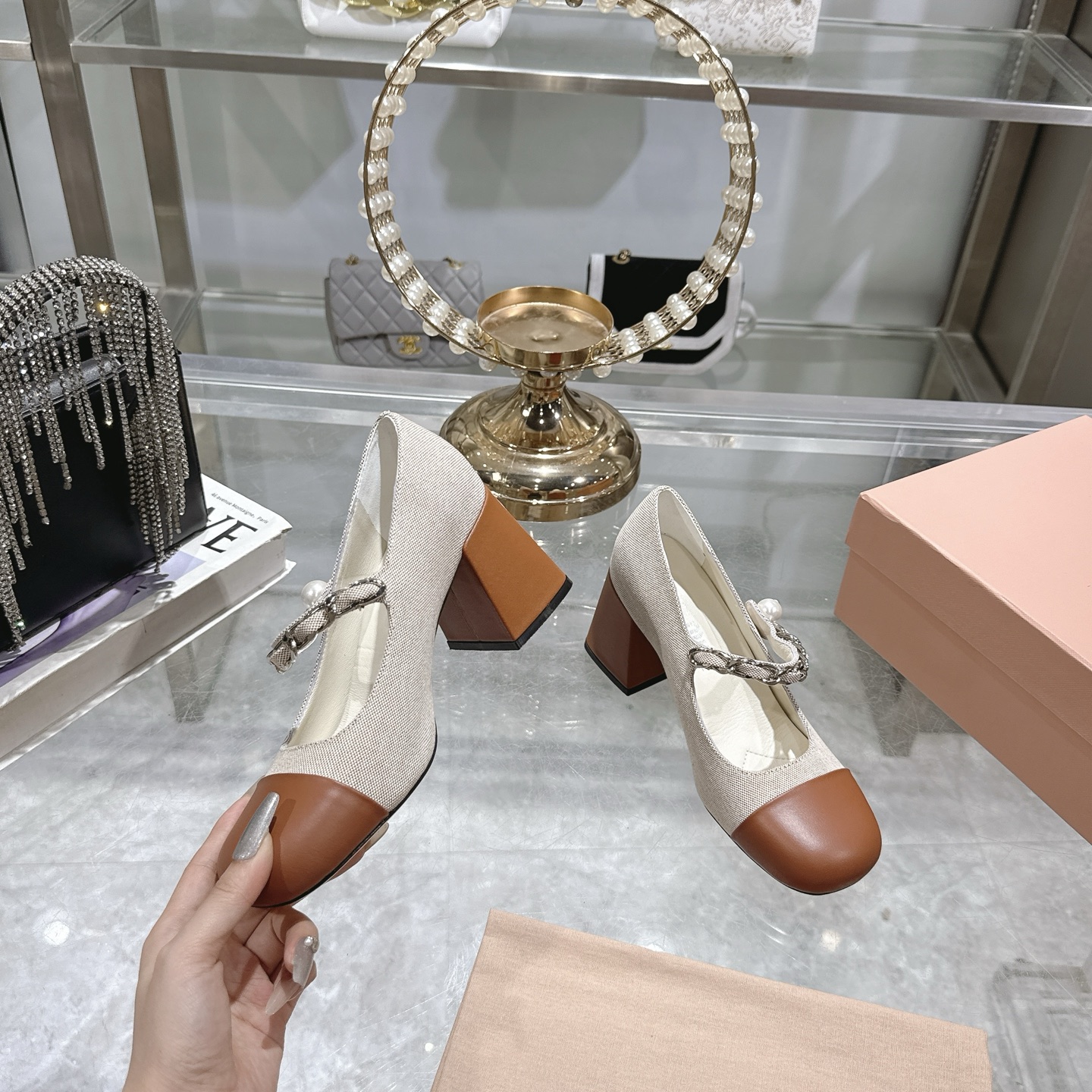 这款鞋子是AAAAA 1:1 质量 (非常棒). 使用了和原版一模一样的材料. 商标部分也保持了和缪缪/Miu Miu一样. 图片拍摄是实物鞋子拍摄, 您所收到的实物保证和我们图片一模一样.