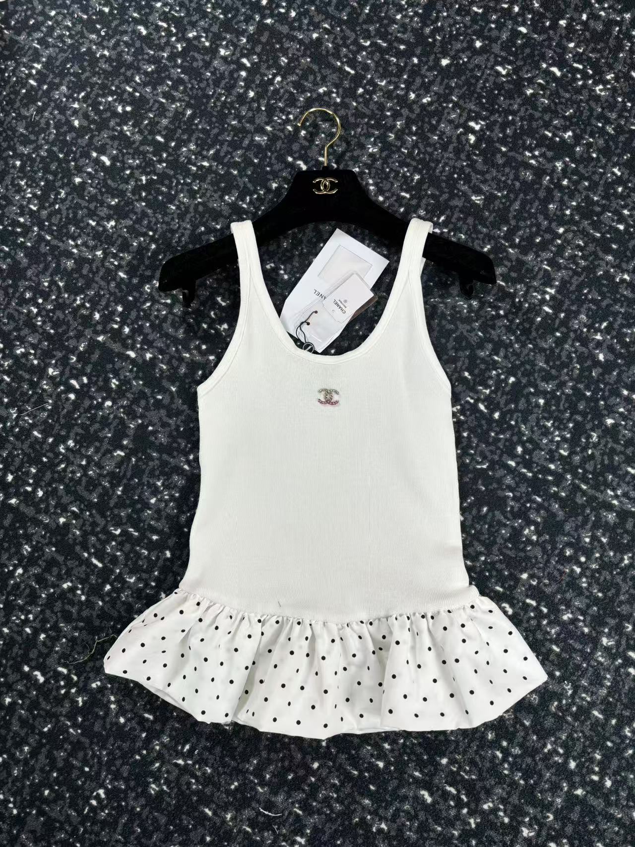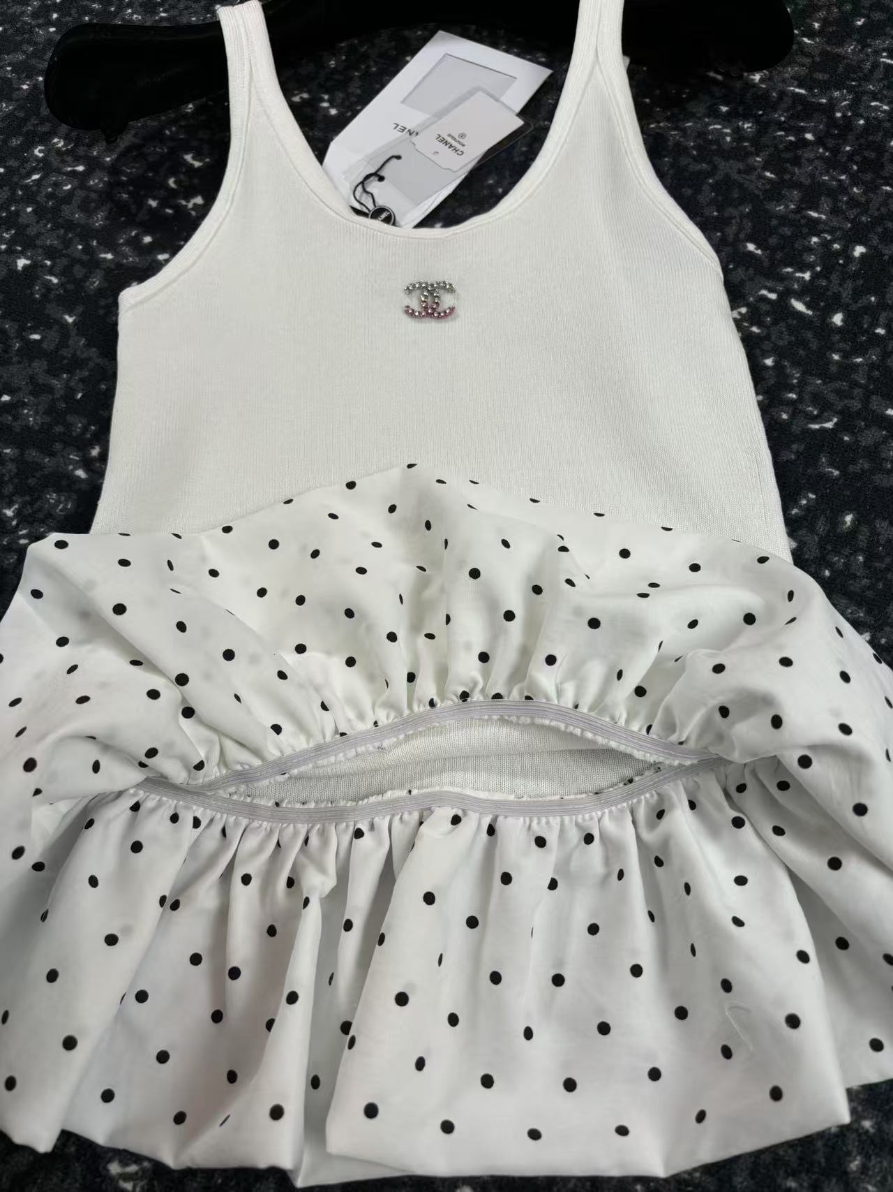 这款衣服是AAAAA 1:1 质量 (非常棒). 使用了和原版一模一样的材料. 商标部分也保持了和香奈儿/Chanel一样. 图片拍摄是实物衣服拍摄, 您所收到的实物保证和我们图片一模一样.