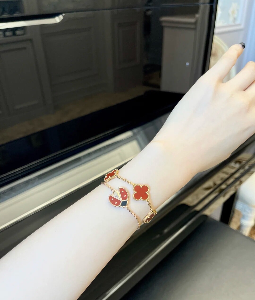 这款首饰是AAAAA 1:1 质量 (非常棒). 使用了和原版一模一样的材料. 商标部分也保持了和梵克雅宝/Van Cleef & Arpels一样. 图片拍摄是实物首饰拍摄, 您所收到的实物保证和我们图片一模一样.