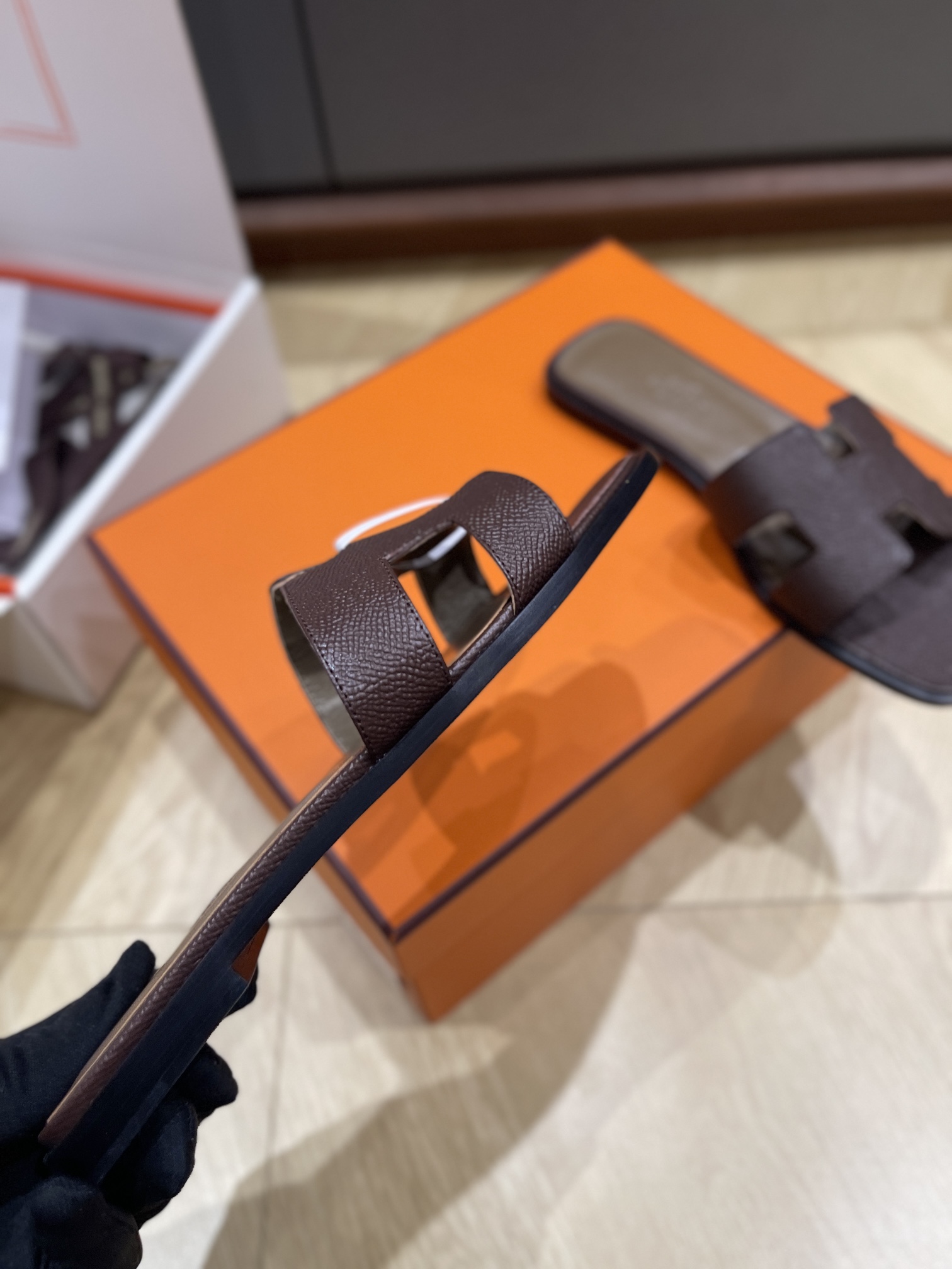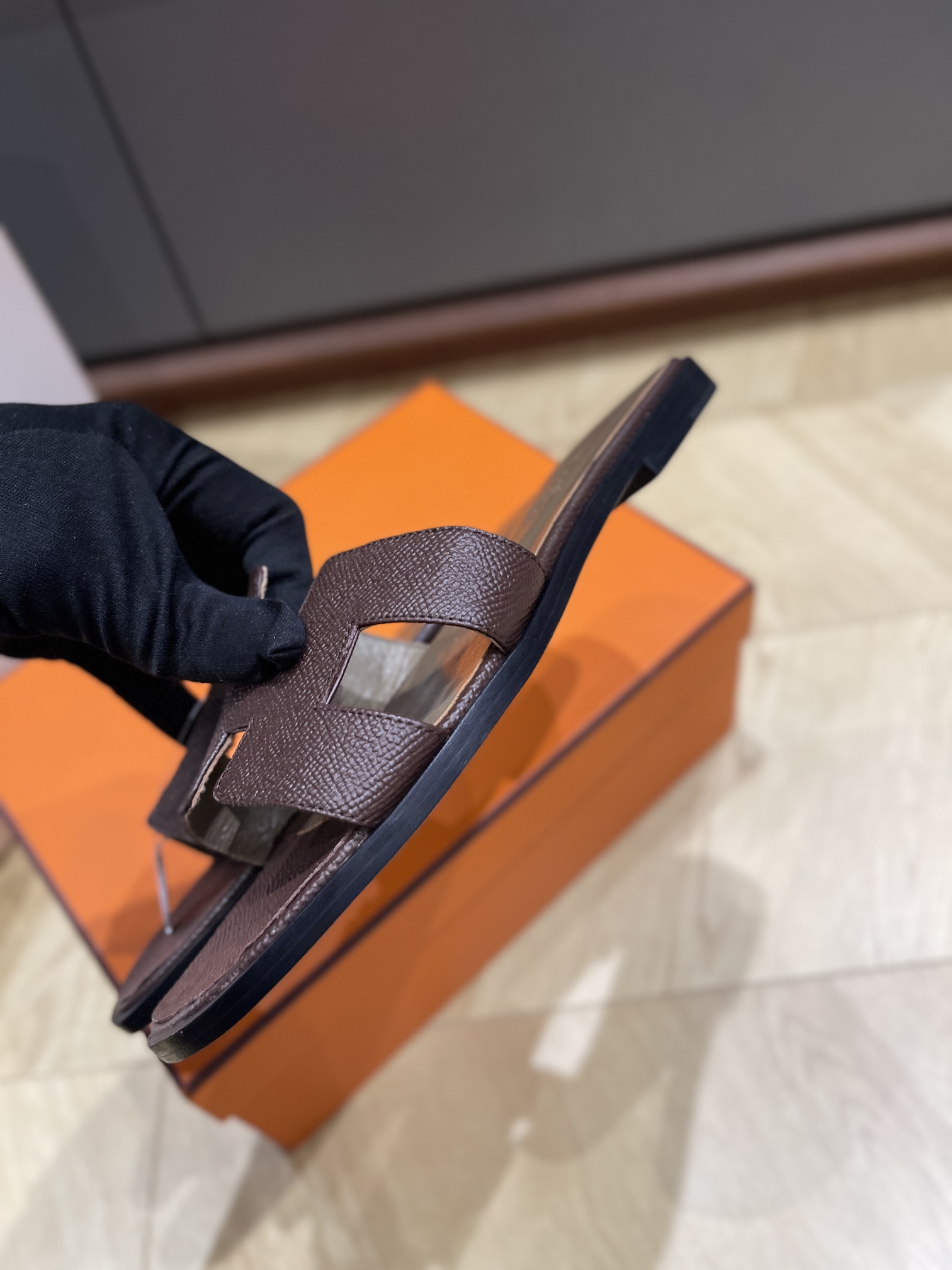 这款鞋子是AAAAA 1:1 质量 (非常棒). 使用了和原版一模一样的材料. 商标部分也保持了和爱马仕/Hermes一样. 图片拍摄是实物鞋子拍摄, 您所收到的实物保证和我们图片一模一样.