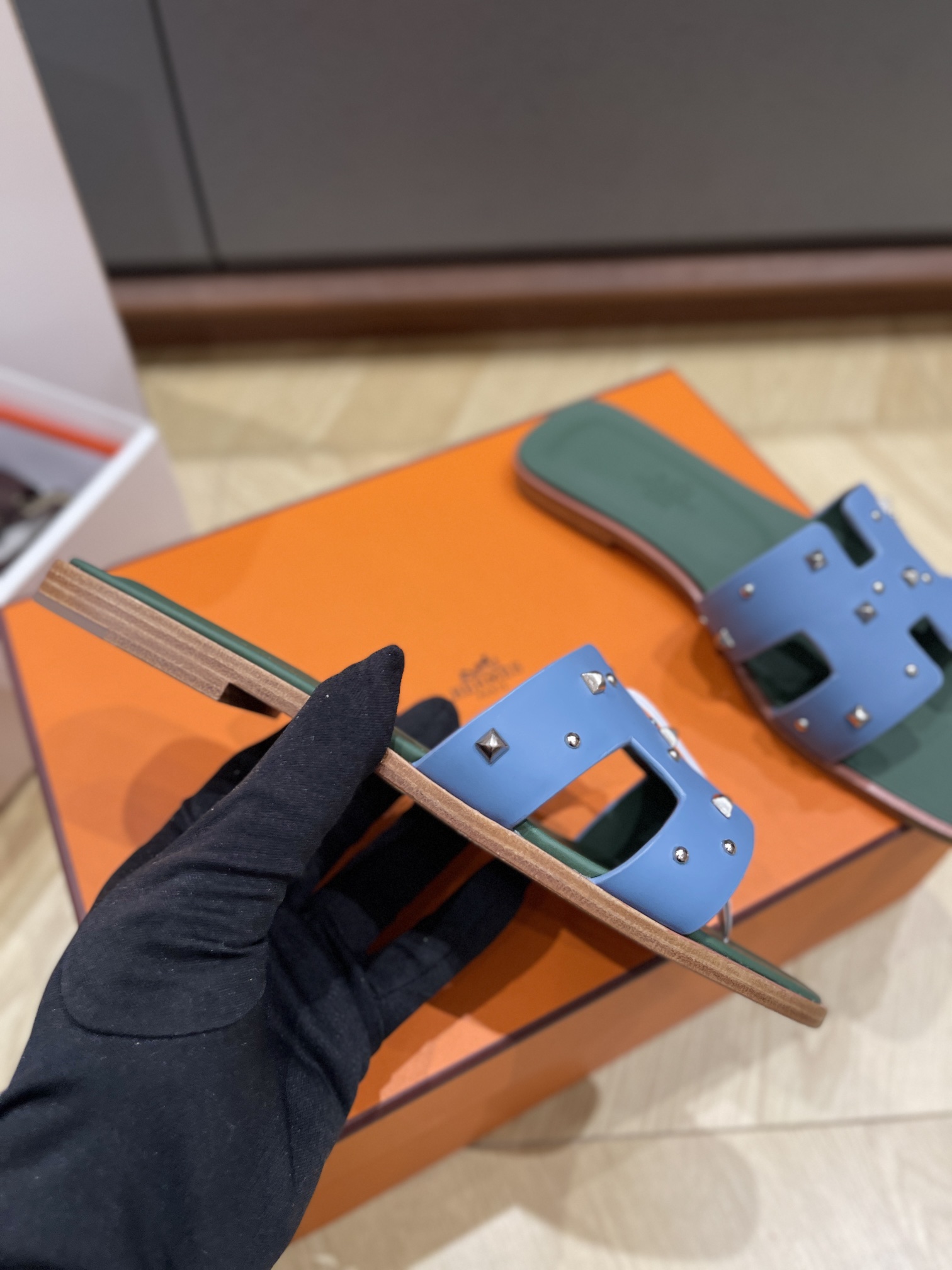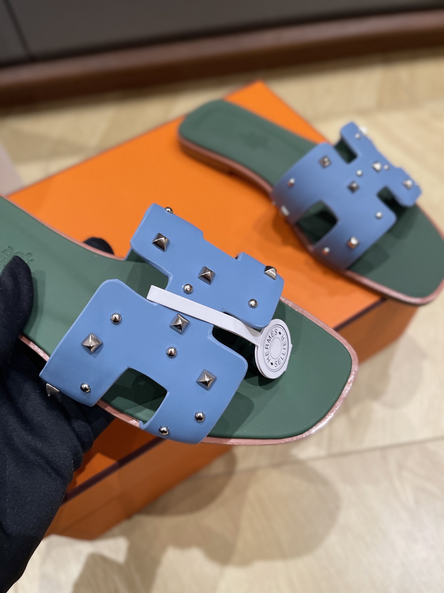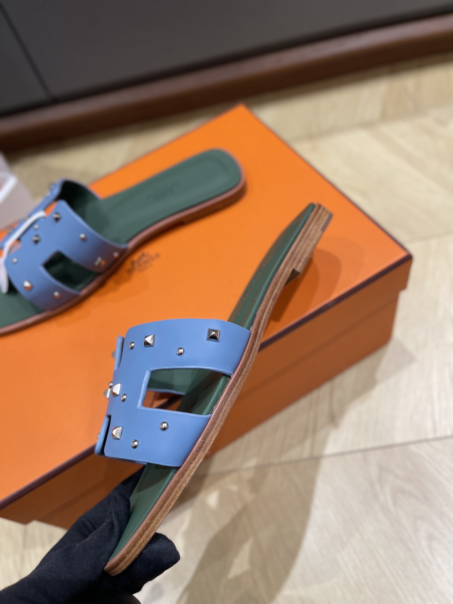 这款鞋子是AAAAA 1:1 质量 (非常棒). 使用了和原版一模一样的材料. 商标部分也保持了和爱马仕/Hermes一样. 图片拍摄是实物鞋子拍摄, 您所收到的实物保证和我们图片一模一样.