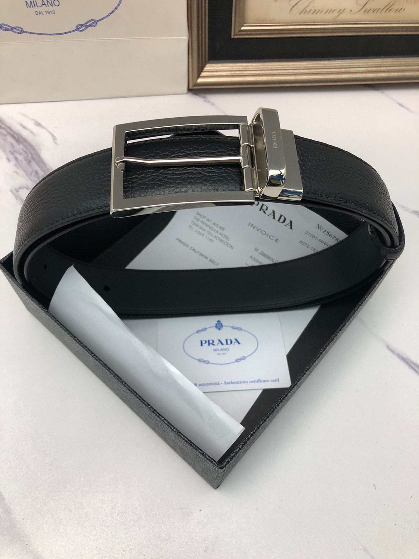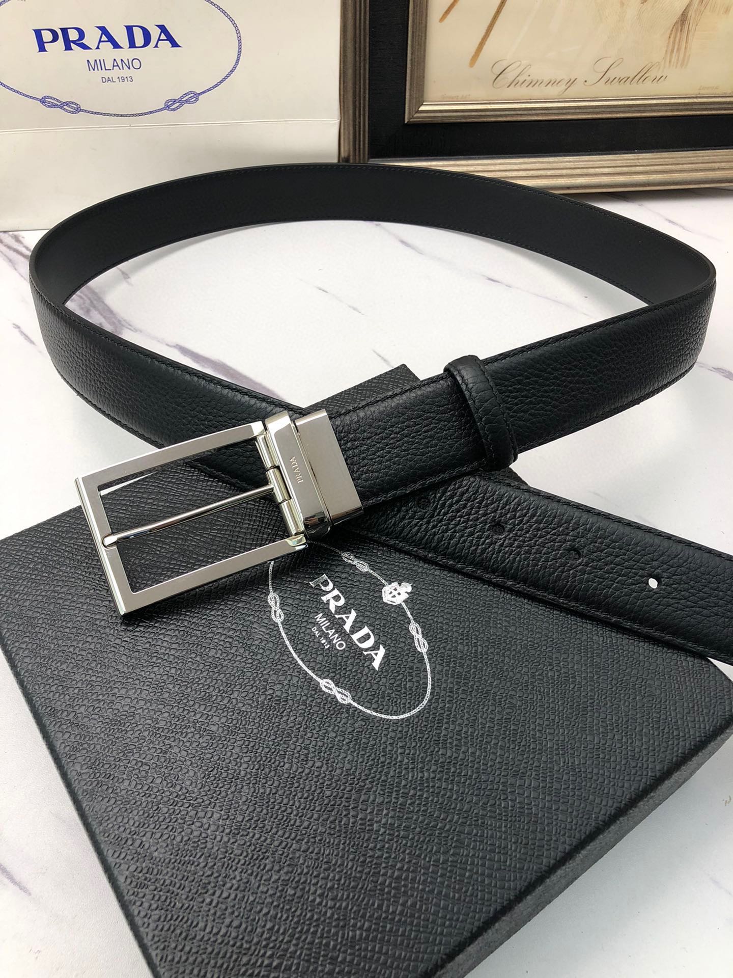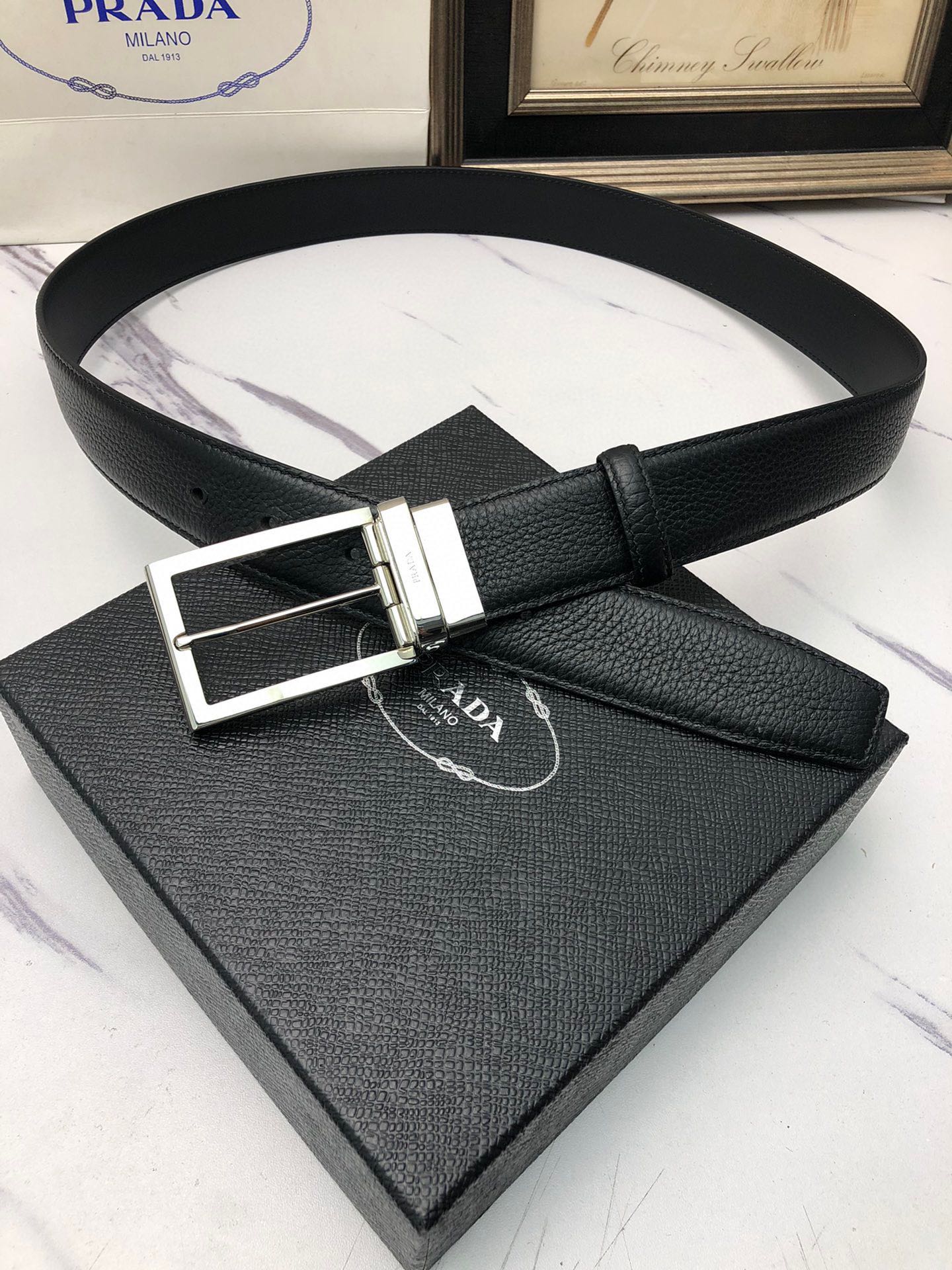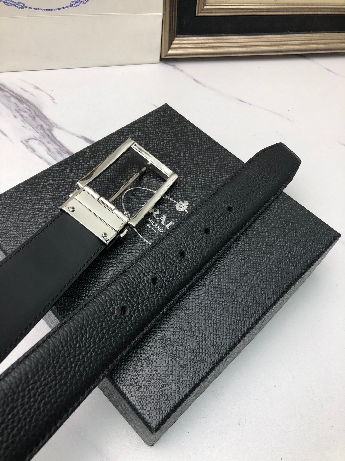 这款皮带是AAAAA 1:1 质量 (非常棒). 使用了和原版一模一样的材料. 商标部分也保持了和普拉达/Prada一样. 图片拍摄是实物皮带拍摄, 您所收到的实物保证和我们图片一模一样.