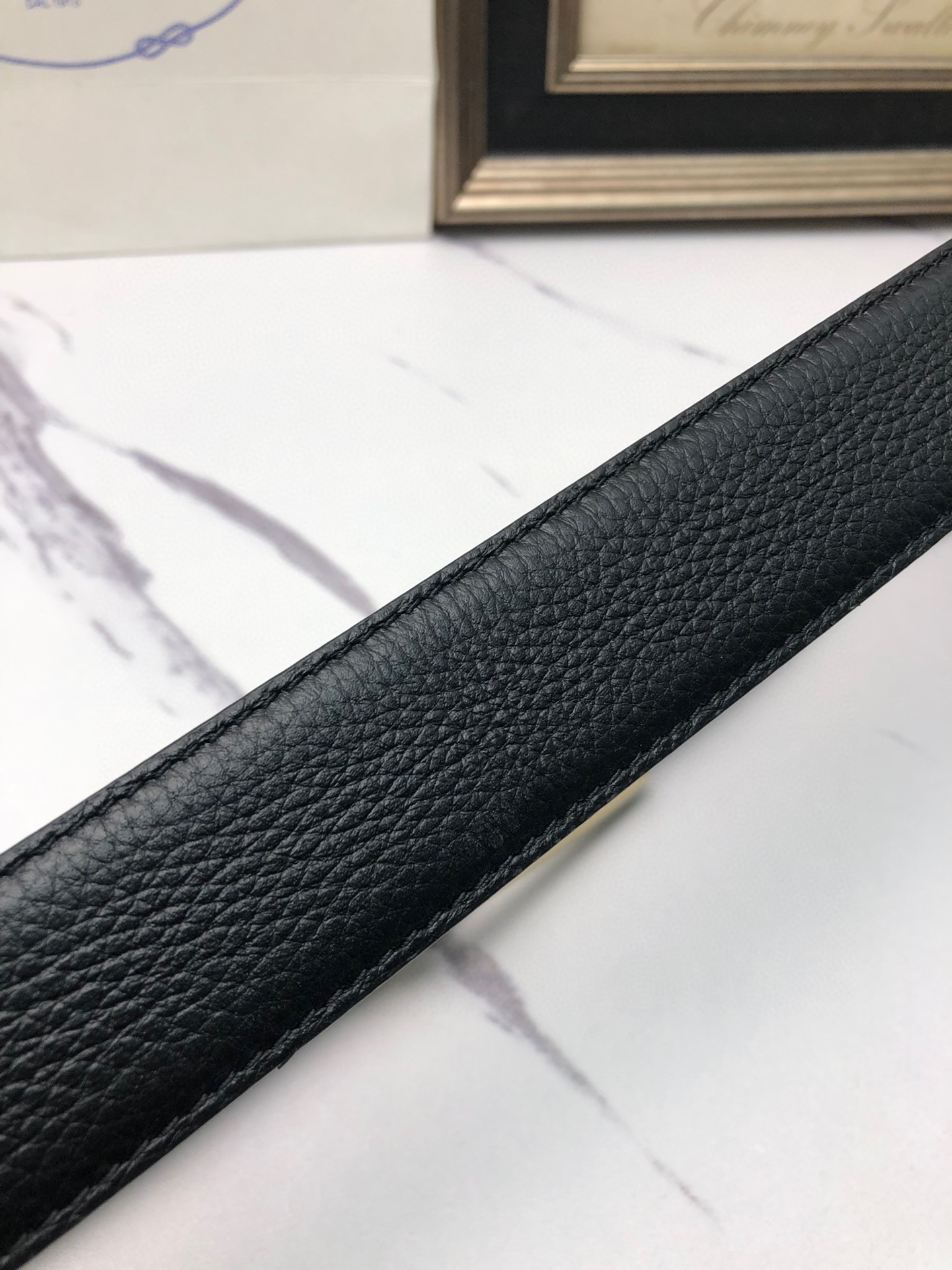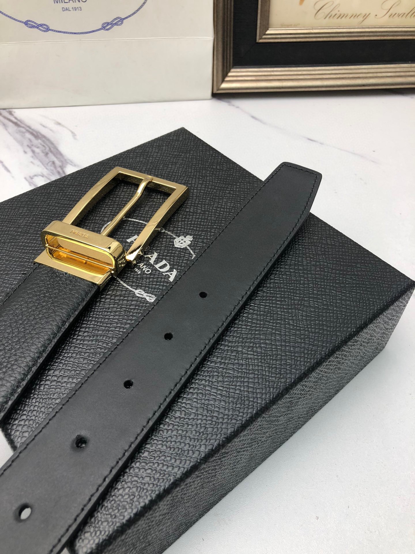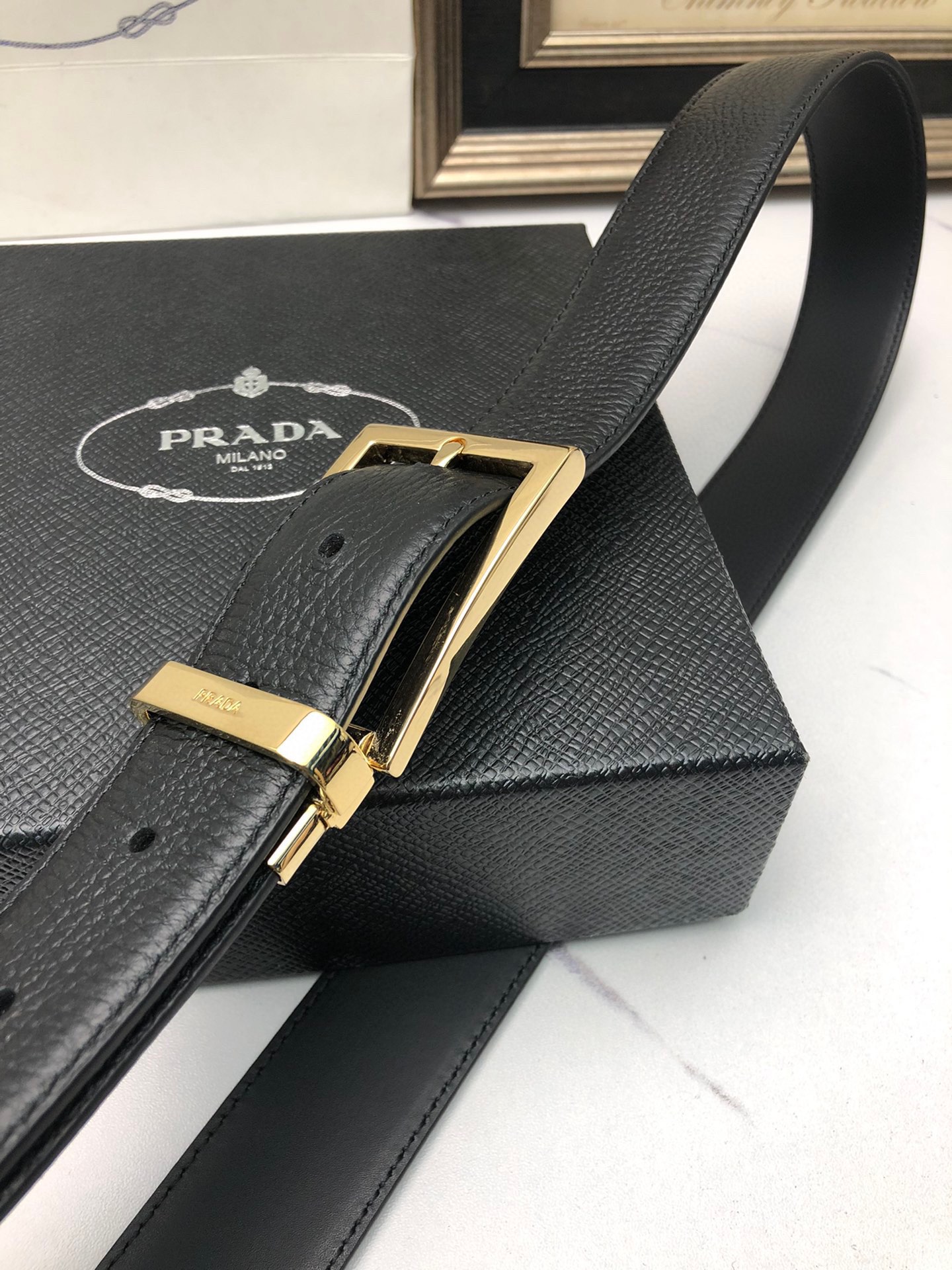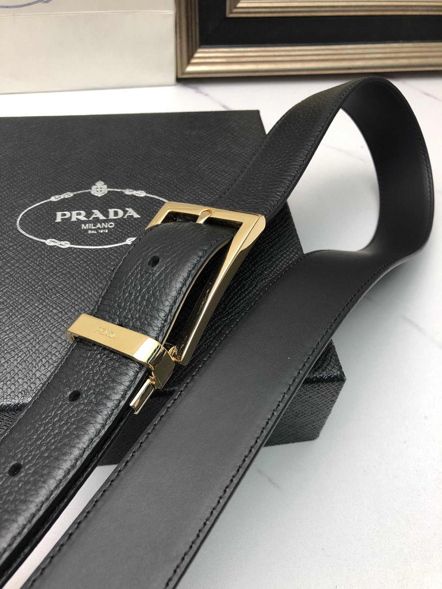 这款皮带是AAAAA 1:1 质量 (非常棒). 使用了和原版一模一样的材料. 商标部分也保持了和普拉达/Prada一样. 图片拍摄是实物皮带拍摄, 您所收到的实物保证和我们图片一模一样.