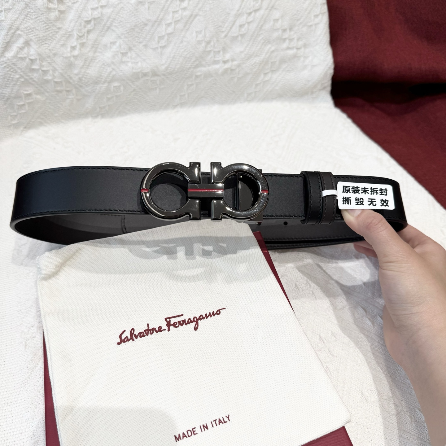 这款皮带是AAAAA 1:1 质量 (非常棒). 使用了和原版一模一样的材料. 商标部分也保持了和菲拉格慕/Salvatore Ferragamo一样. 图片拍摄是实物皮带拍摄, 您所收到的实物保证和我们图片一模一样.