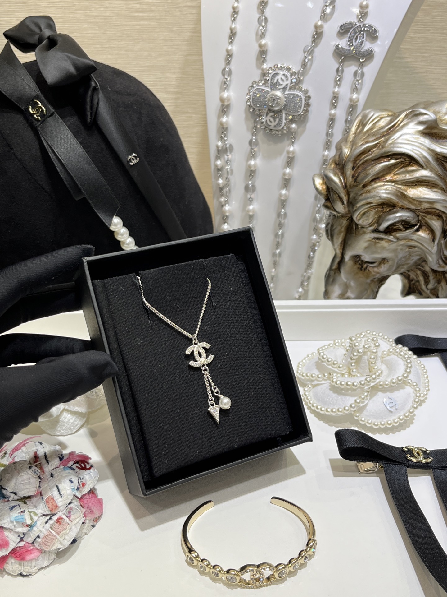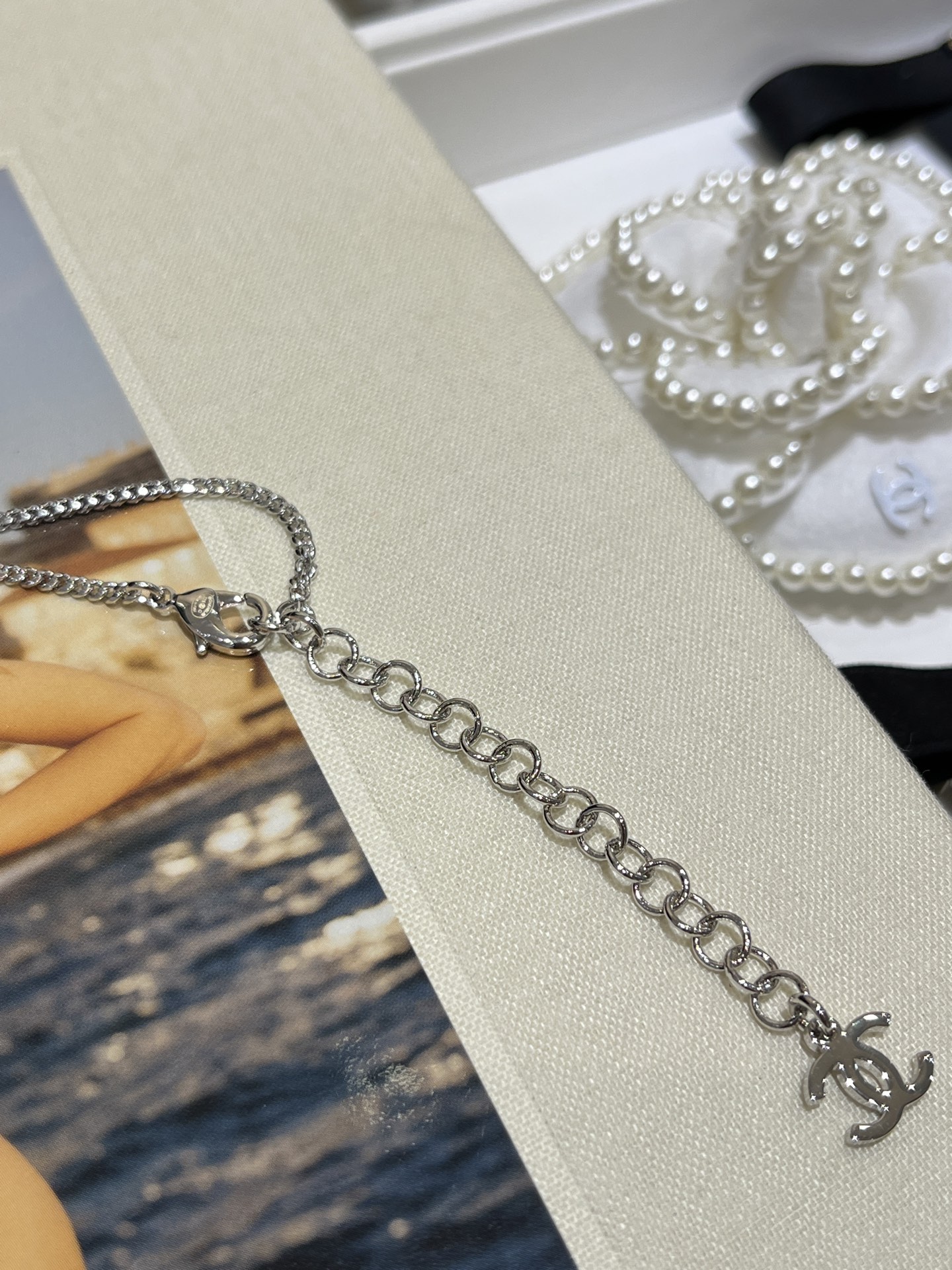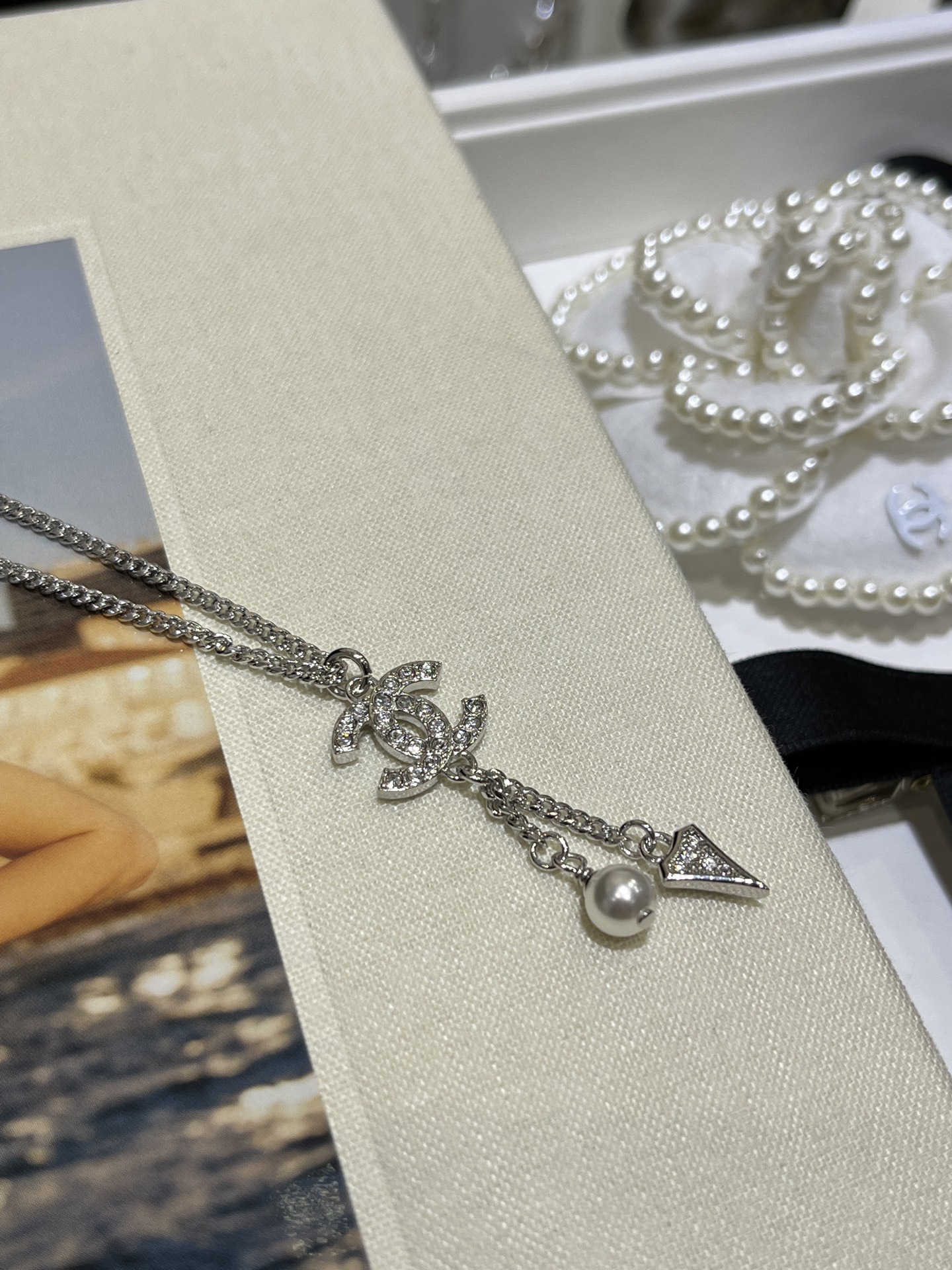 Chanel - diamond & pearl necklace, $ 27