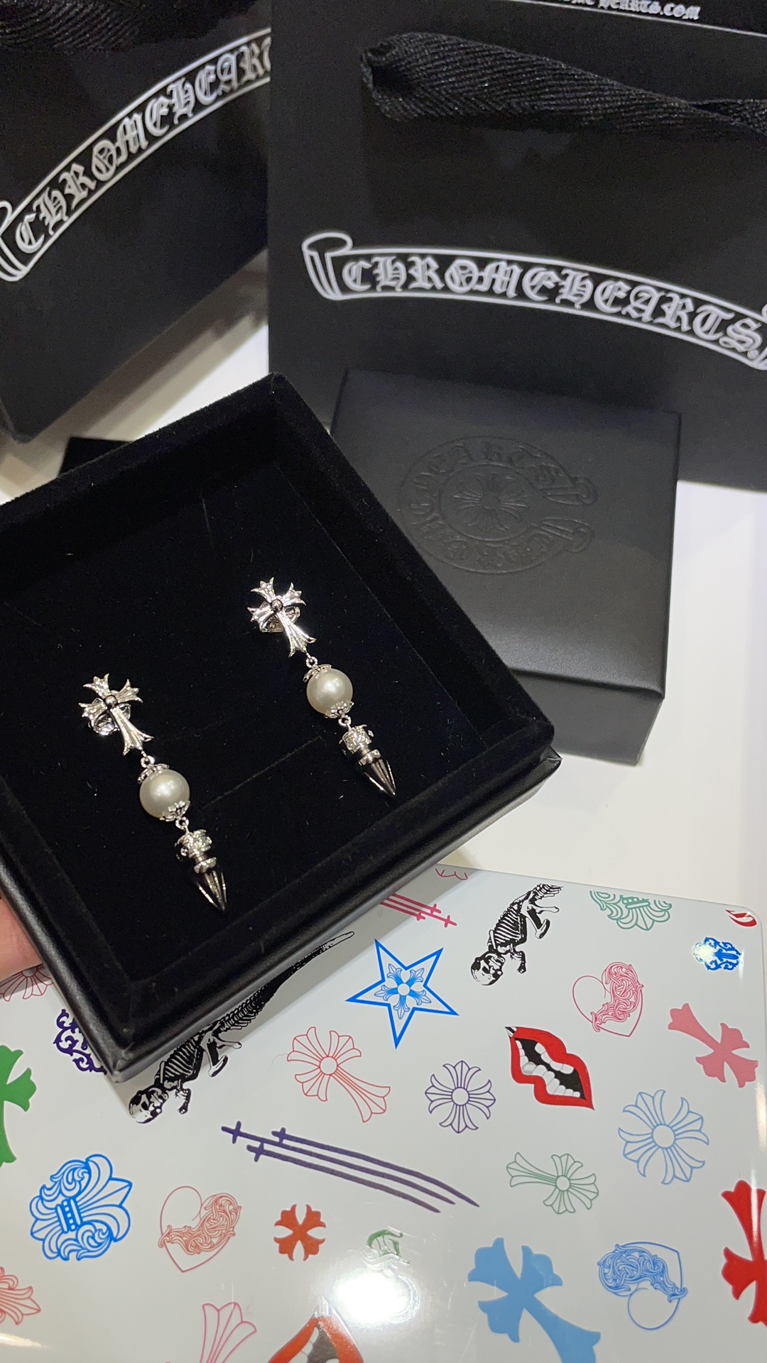这款首饰是AAAAA 1:1 质量 (非常棒). 使用了和原版一模一样的材料. 商标部分也保持了和克罗心/Chrome Hearts一样. 图片拍摄是实物首饰拍摄, 您所收到的实物保证和我们图片一模一样.