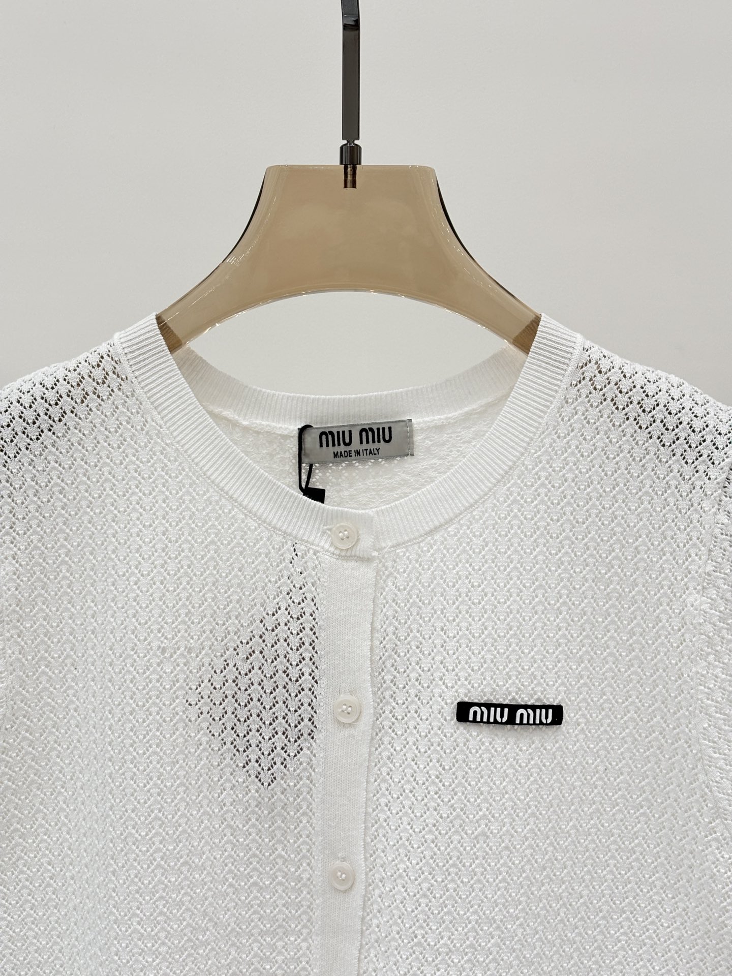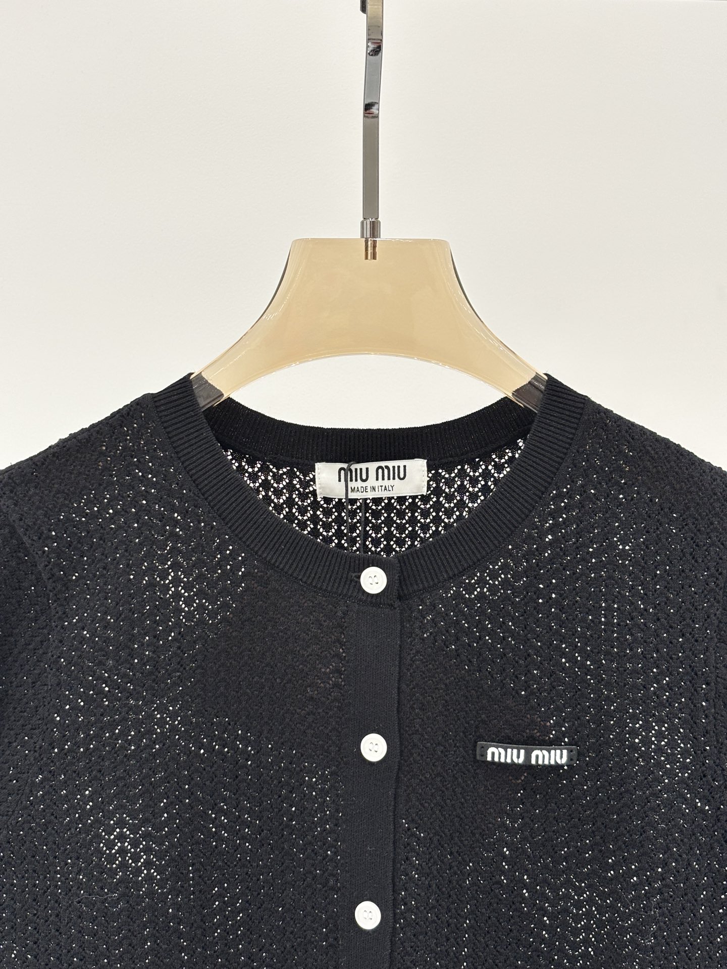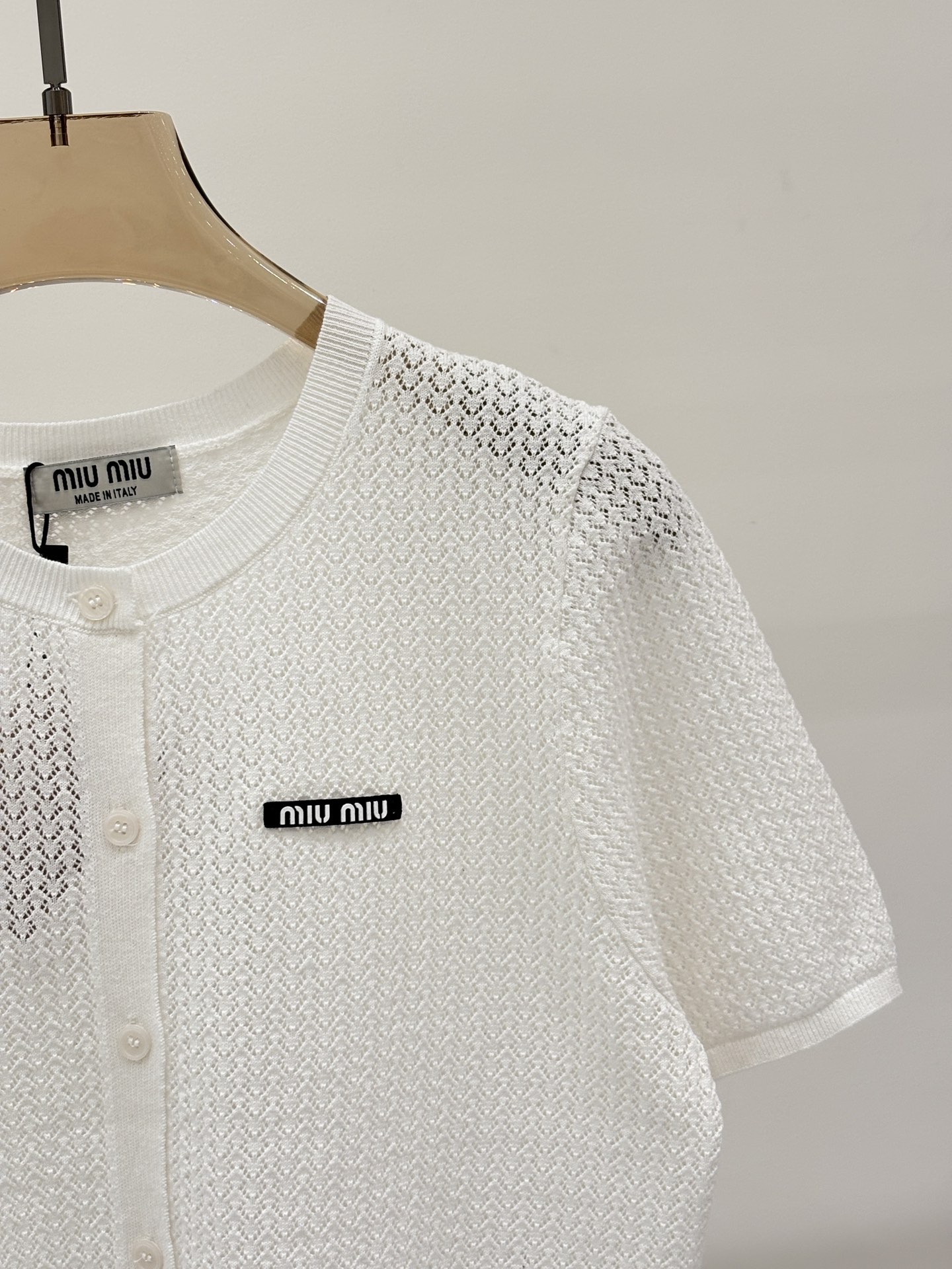 这款衣服是AAAAA 1:1 质量 (非常棒). 使用了和原版一模一样的材料. 商标部分也保持了和缪缪/Miu Miu一样. 图片拍摄是实物衣服拍摄, 您所收到的实物保证和我们图片一模一样.