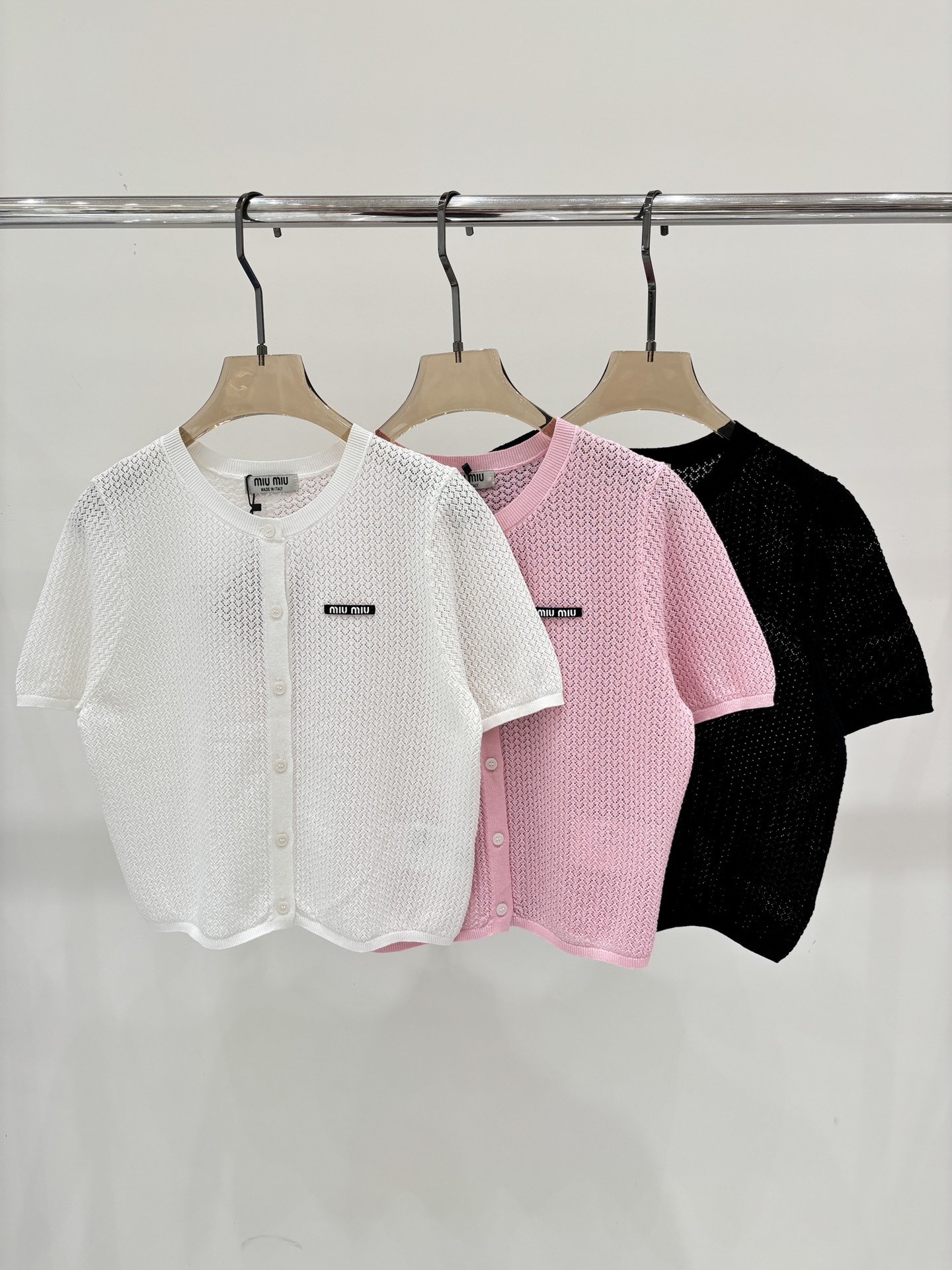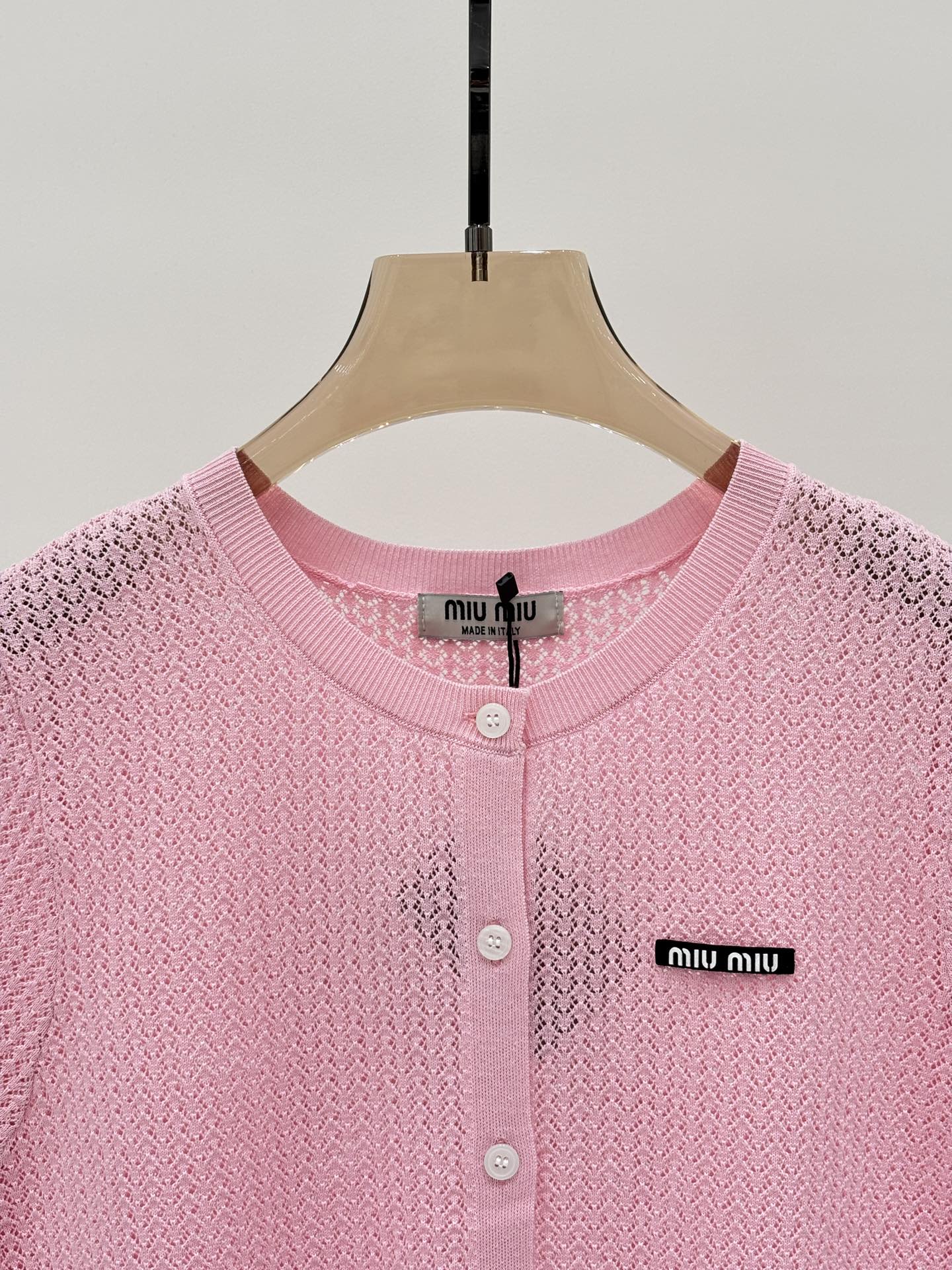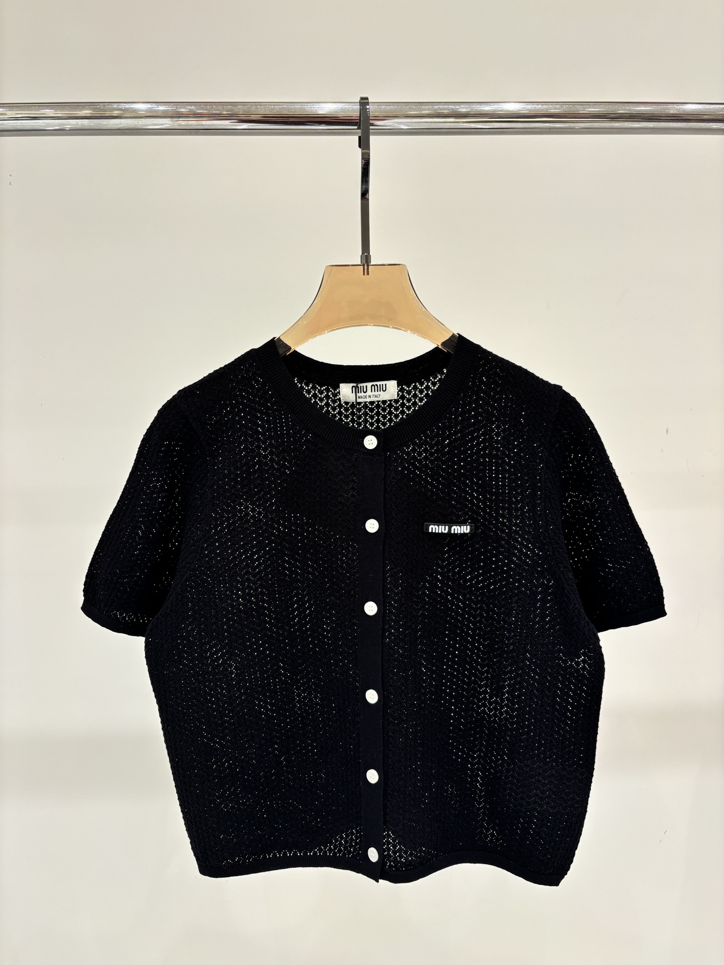 这款衣服是AAAAA 1:1 质量 (非常棒). 使用了和原版一模一样的材料. 商标部分也保持了和缪缪/Miu Miu一样. 图片拍摄是实物衣服拍摄, 您所收到的实物保证和我们图片一模一样.