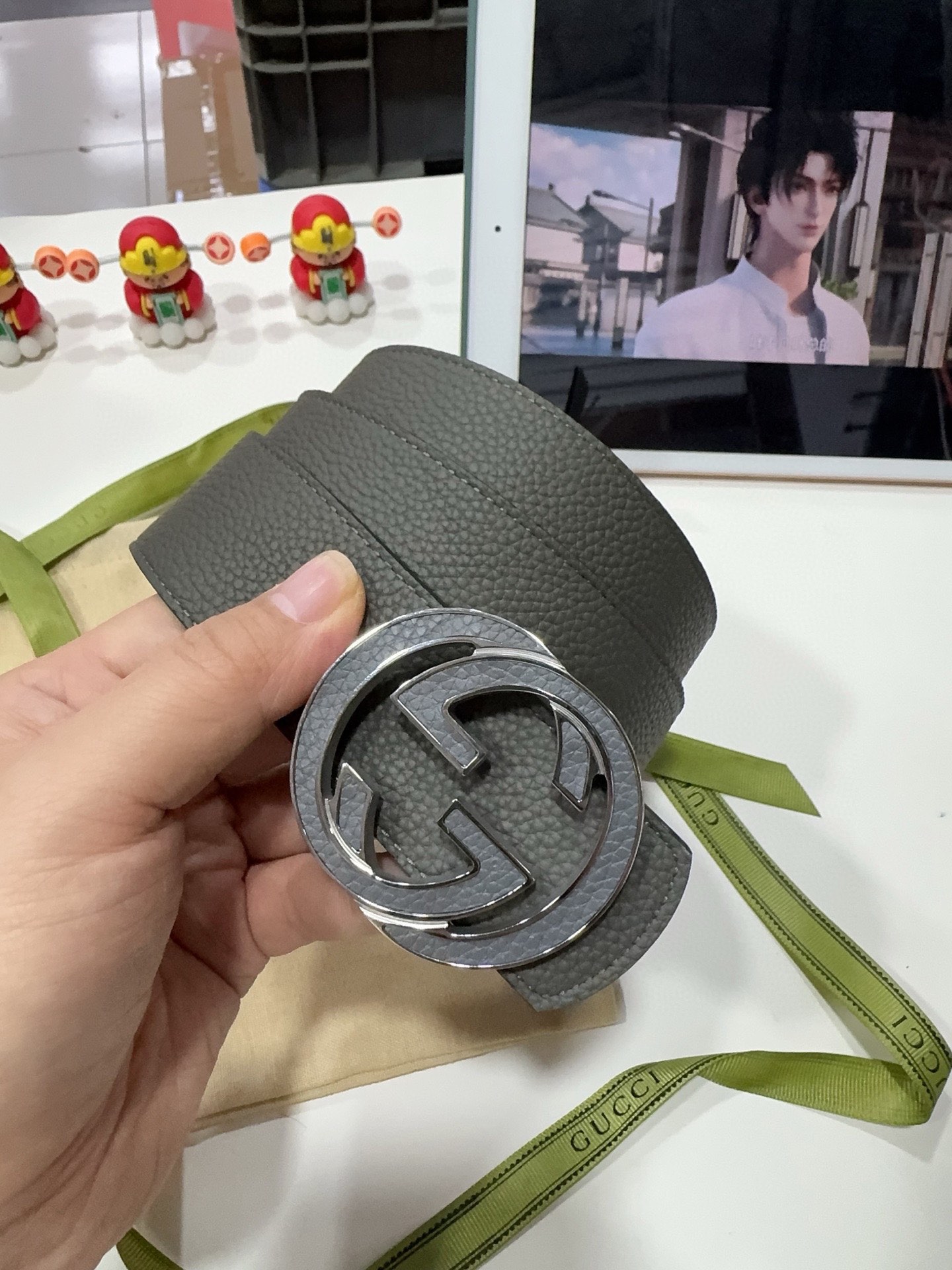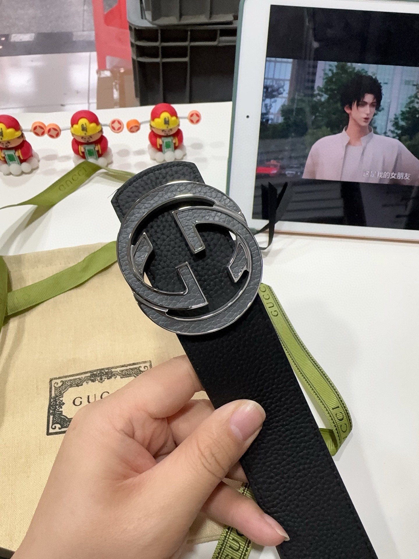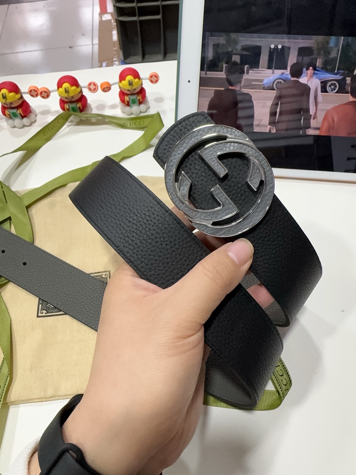 这款皮带是AAAAA 1:1 质量 (非常棒). 使用了和原版一模一样的材料. 商标部分也保持了和古奇/Gucci一样. 图片拍摄是实物皮带拍摄, 您所收到的实物保证和我们图片一模一样.