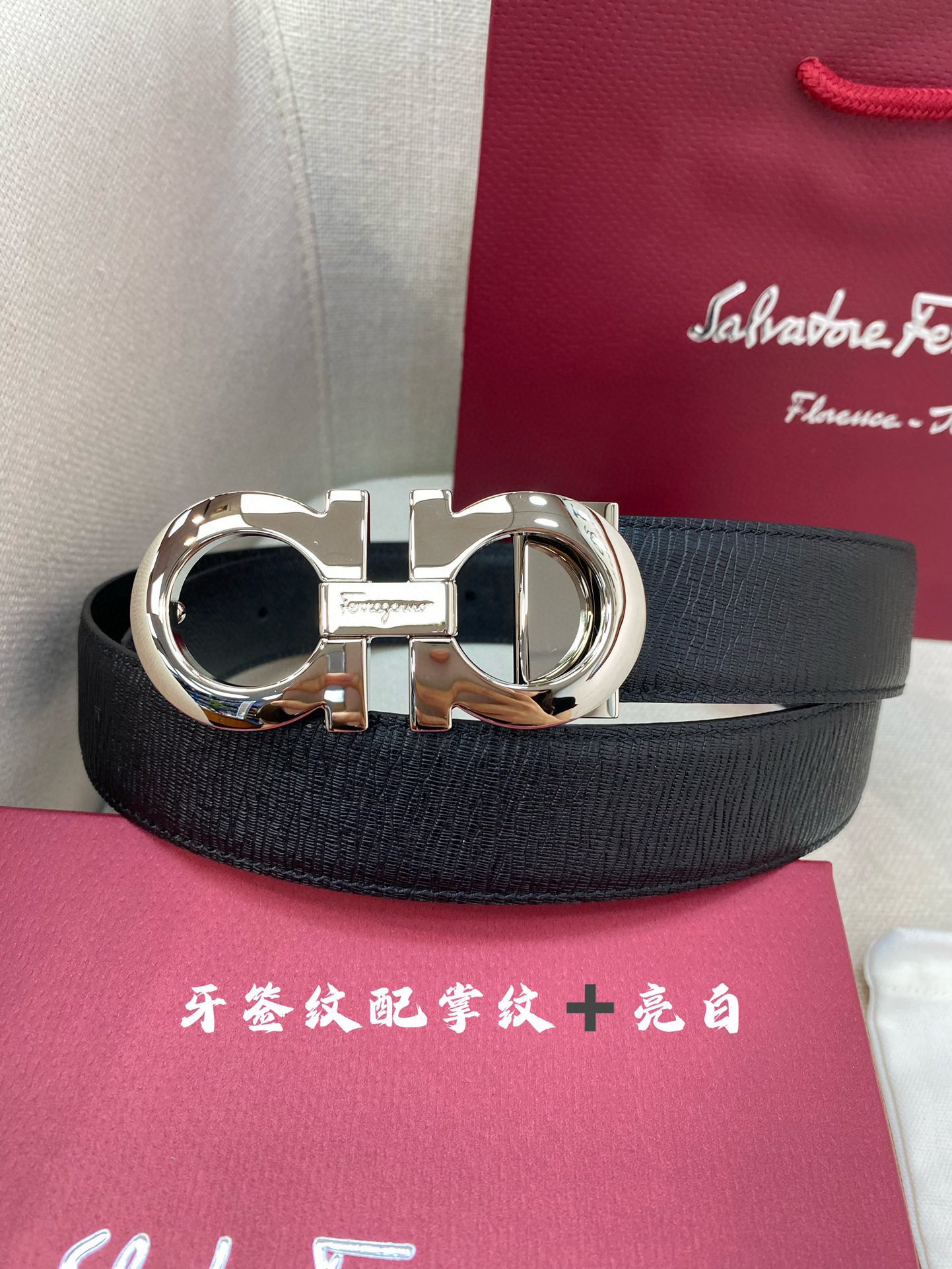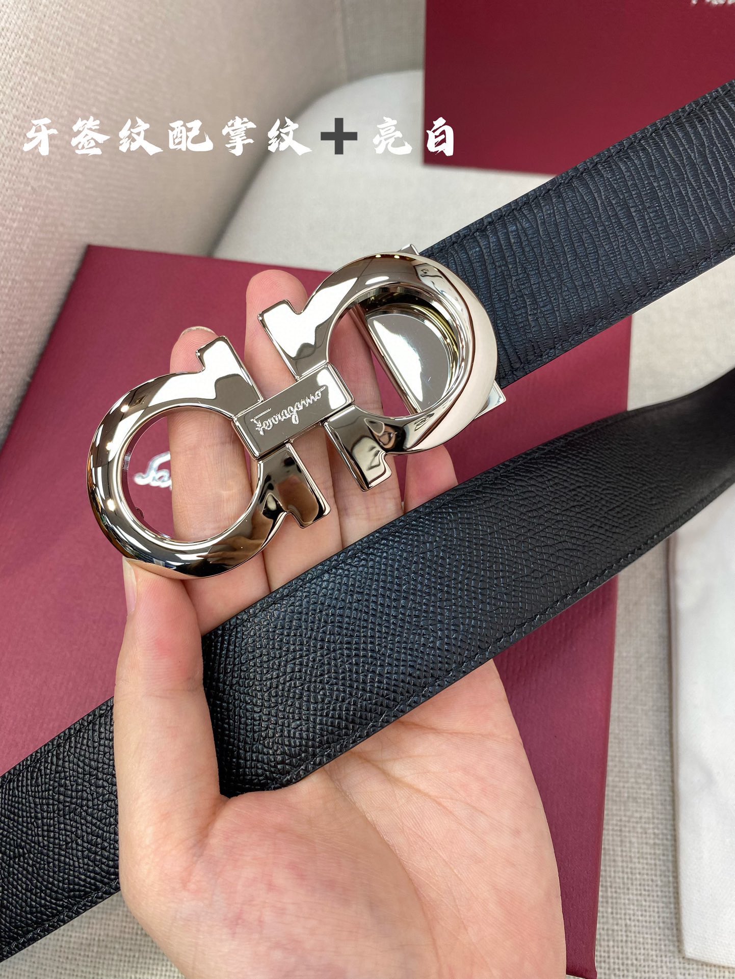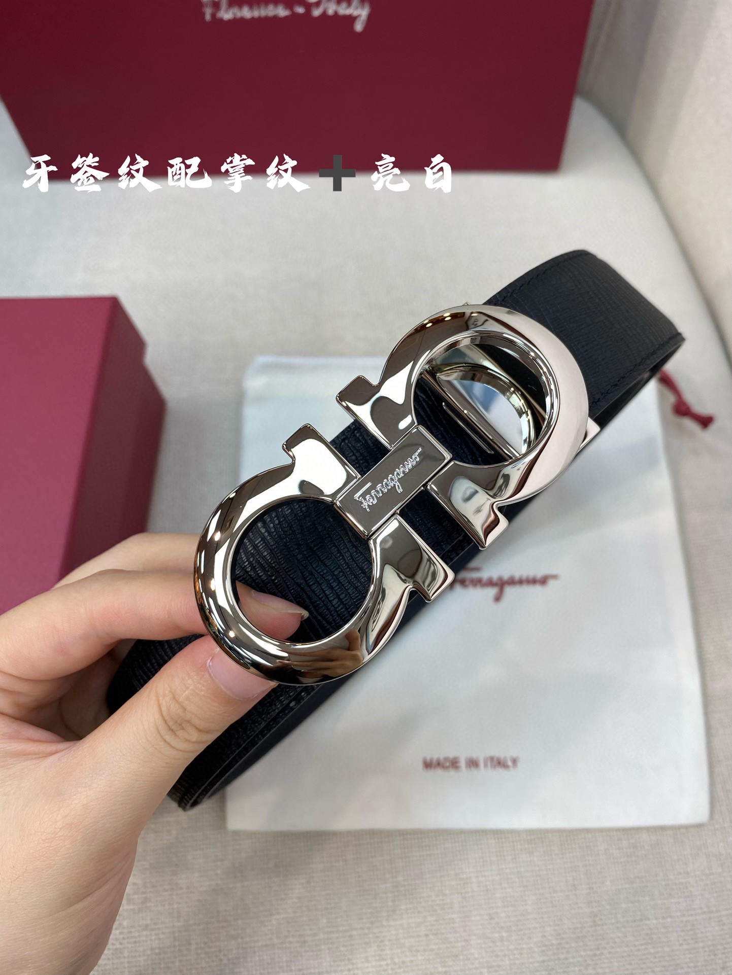 这款皮带是AAAAA 1:1 质量 (非常棒). 使用了和原版一模一样的材料. 商标部分也保持了和菲拉格慕/Salvatore Ferragamo一样. 图片拍摄是实物皮带拍摄, 您所收到的实物保证和我们图片一模一样.