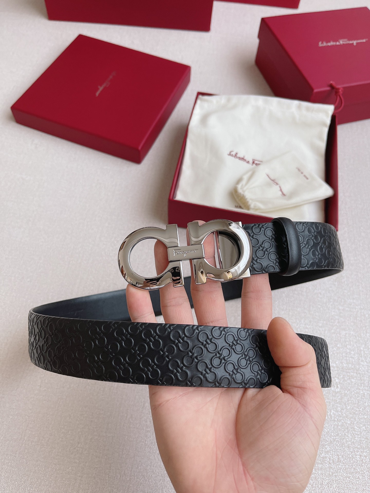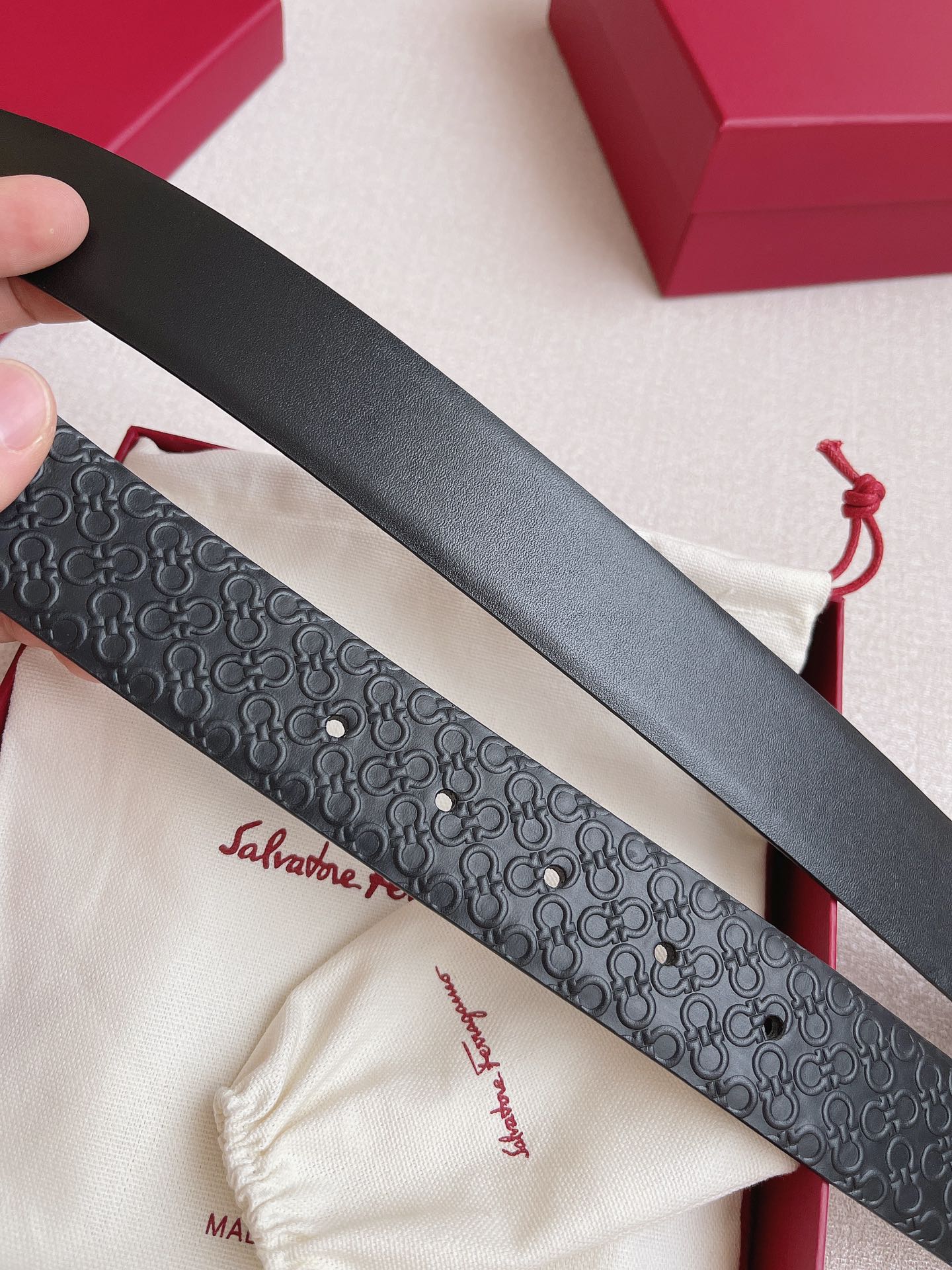 这款皮带是AAAAA 1:1 质量 (非常棒). 使用了和原版一模一样的材料. 商标部分也保持了和菲拉格慕/Salvatore Ferragamo一样. 图片拍摄是实物皮带拍摄, 您所收到的实物保证和我们图片一模一样.