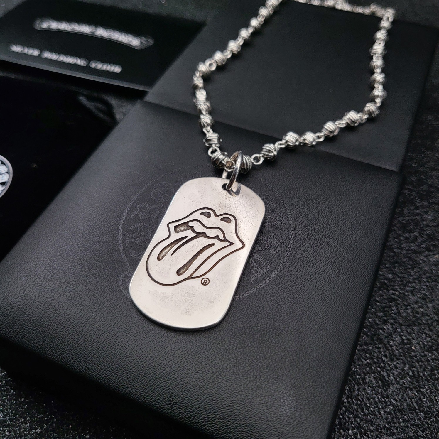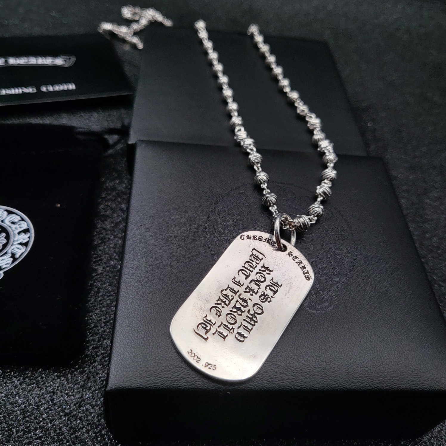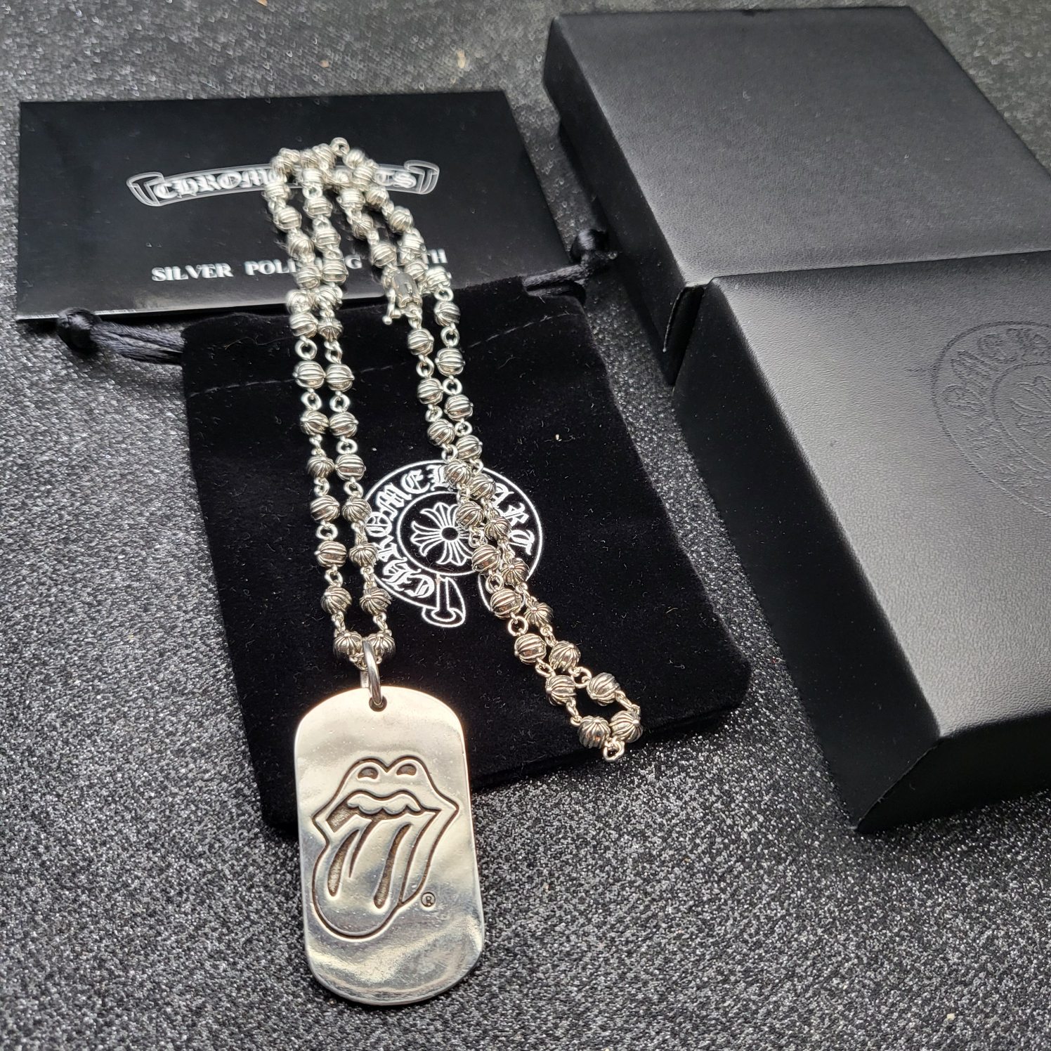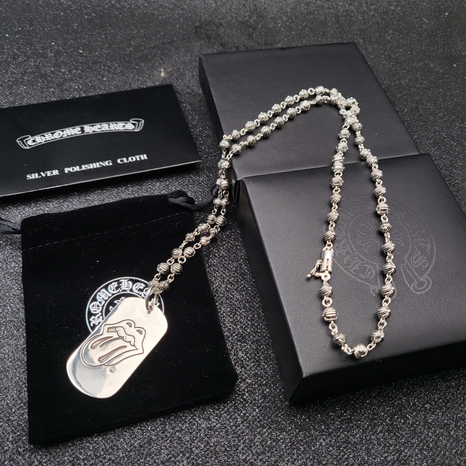 这款首饰是AAAAA 1:1 质量 (非常棒). 使用了和原版一模一样的材料. 商标部分也保持了和克罗心/Chrome Hearts一样. 图片拍摄是实物首饰拍摄, 您所收到的实物保证和我们图片一模一样.