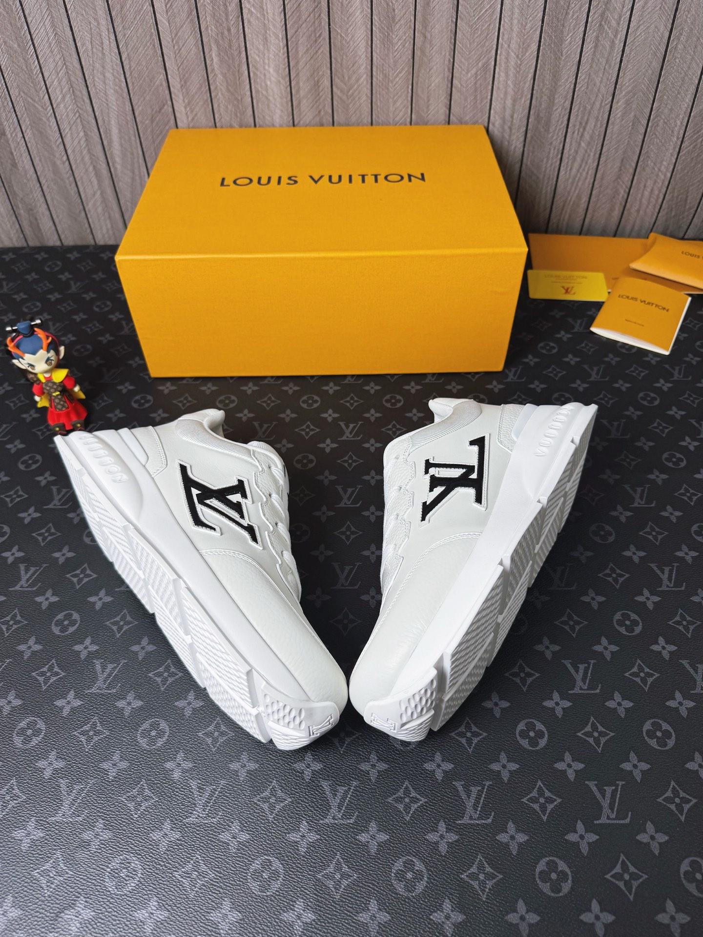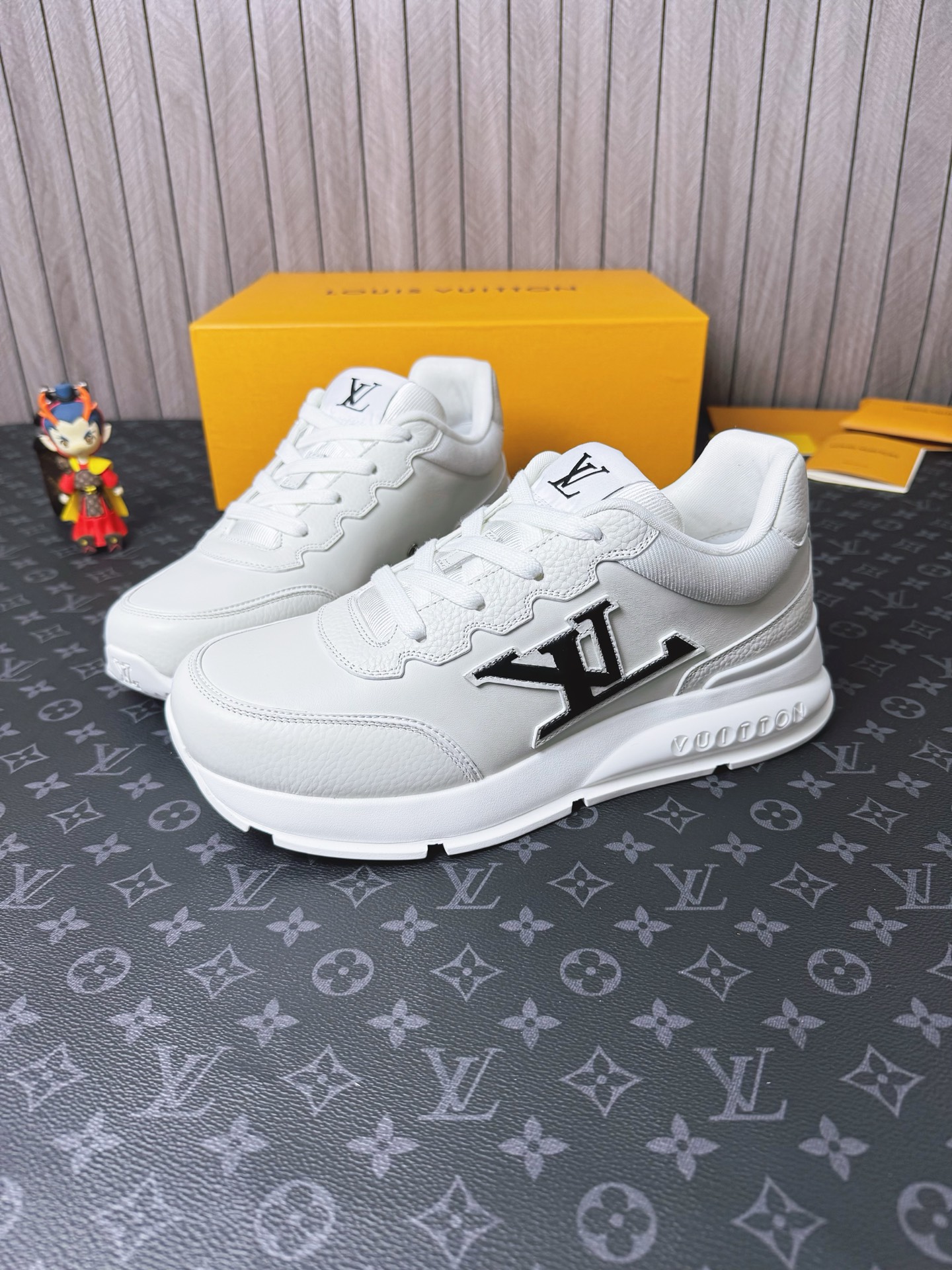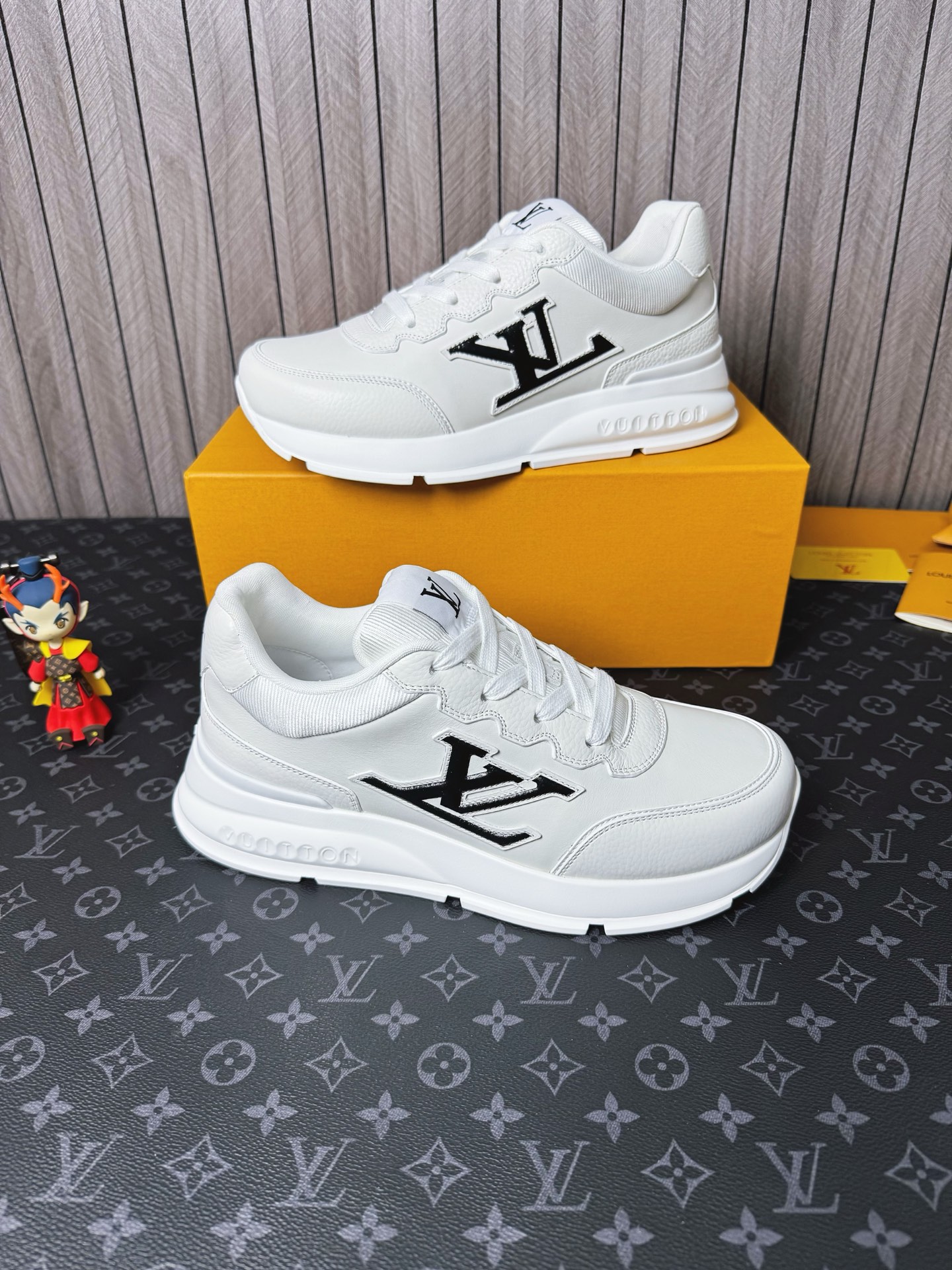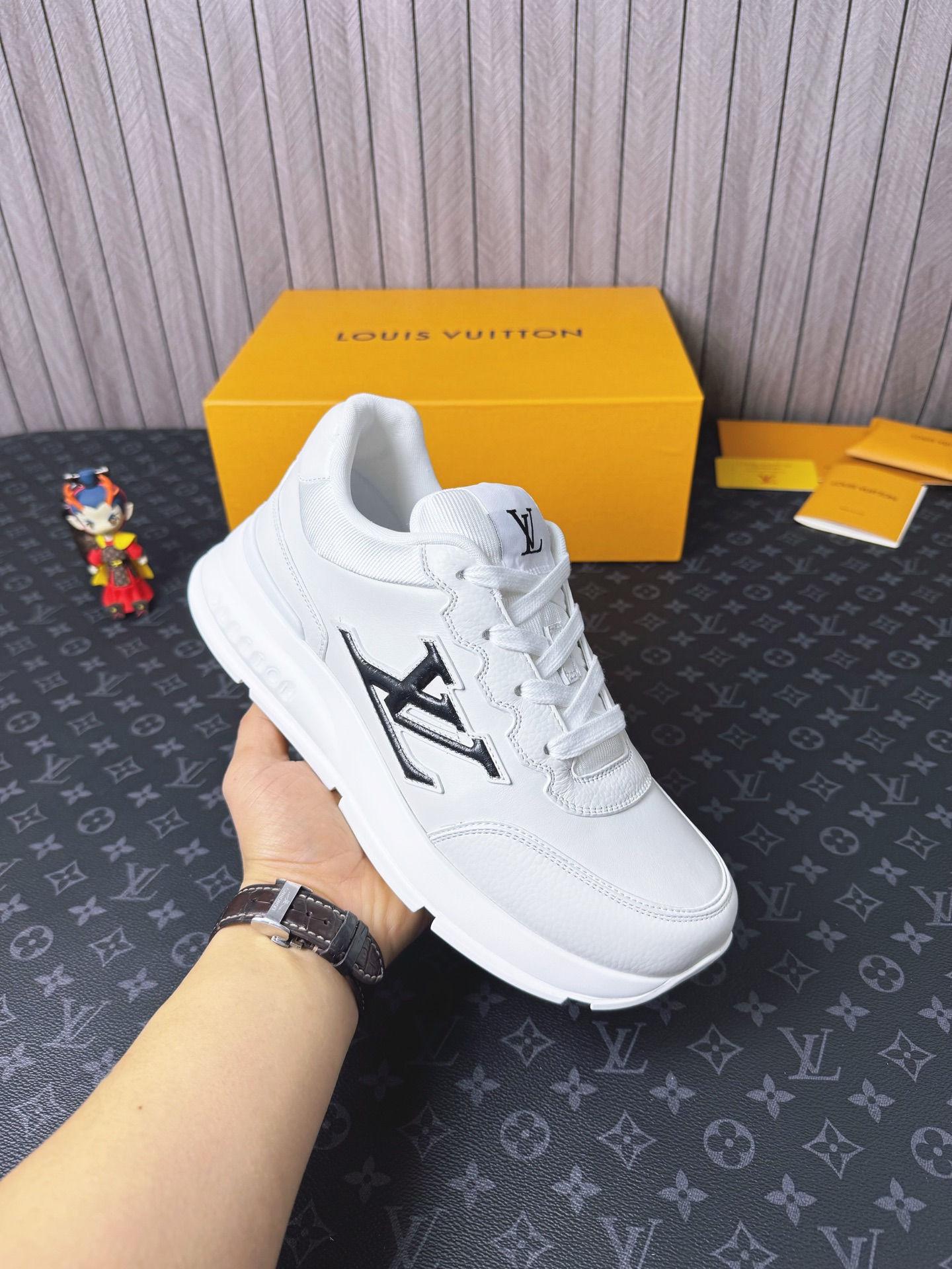 这款鞋子是AAAAA 1:1 质量 (非常棒). 使用了和原版一模一样的材料. 商标部分也保持了和路易威登/Louis Vuitton一样. 图片拍摄是实物鞋子拍摄, 您所收到的实物保证和我们图片一模一样.