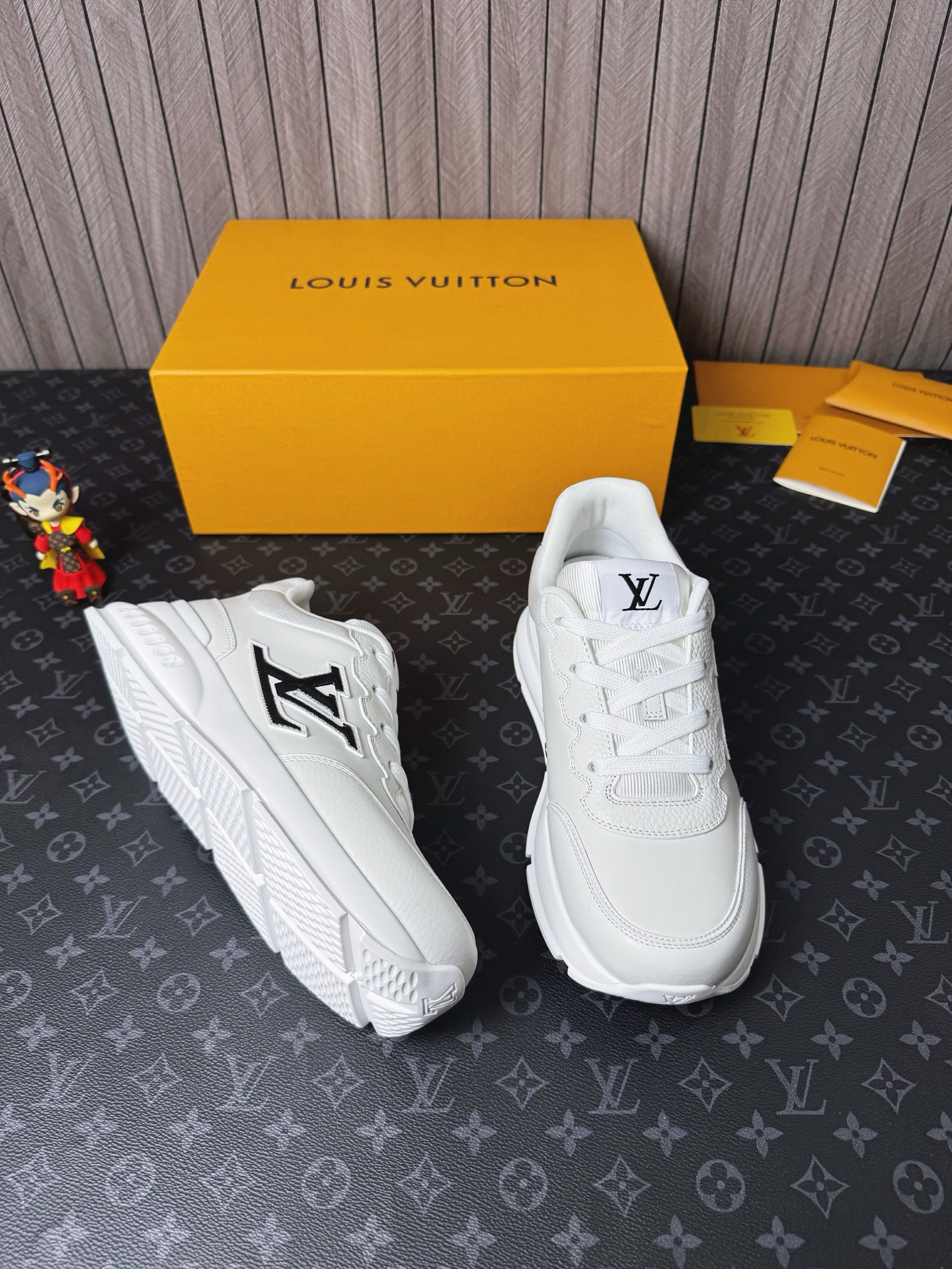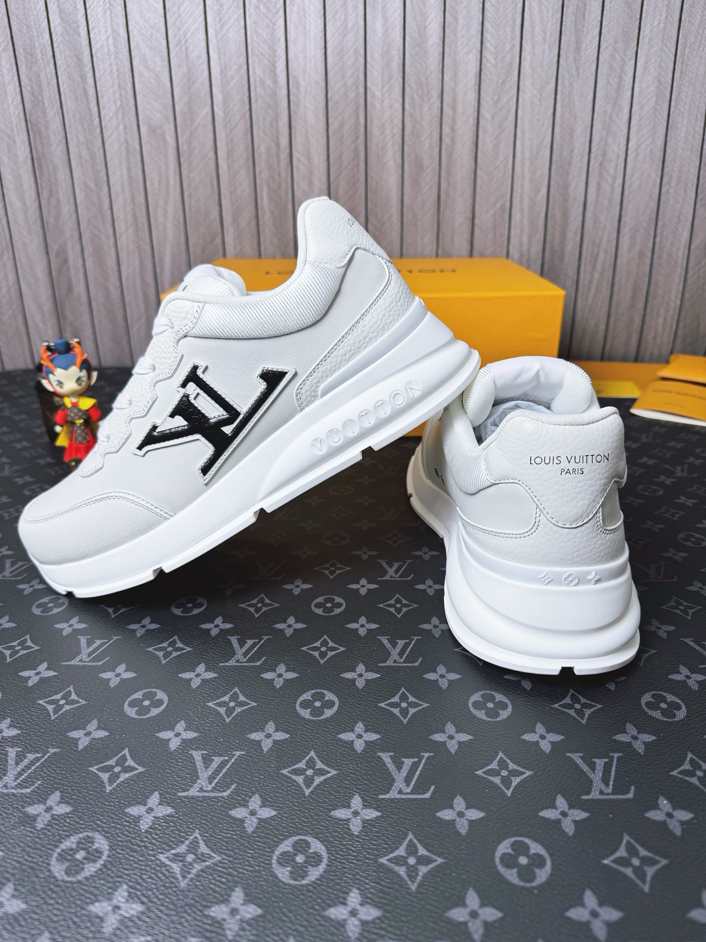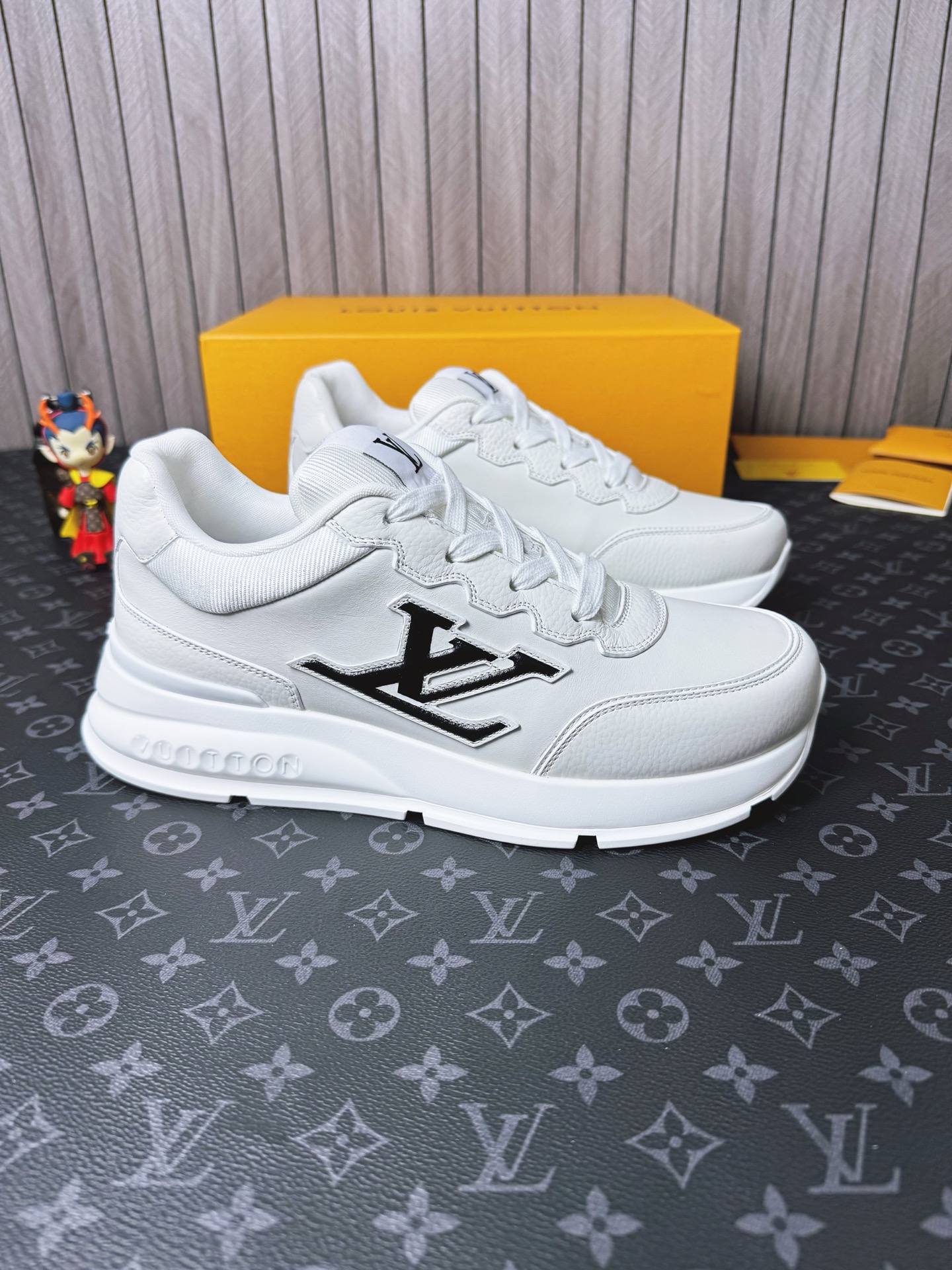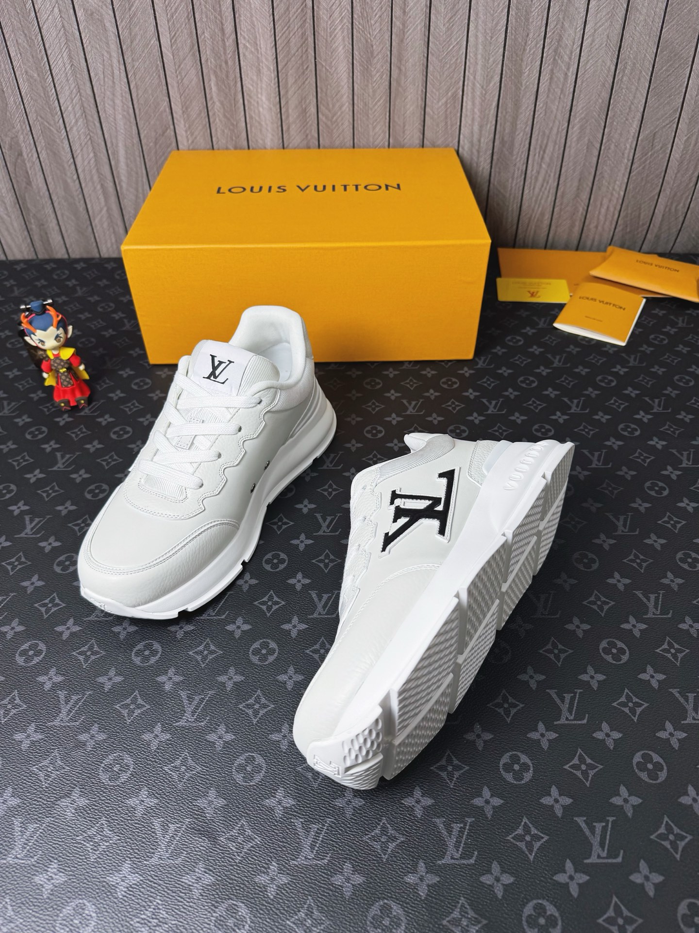 这款鞋子是AAAAA 1:1 质量 (非常棒). 使用了和原版一模一样的材料. 商标部分也保持了和路易威登/Louis Vuitton一样. 图片拍摄是实物鞋子拍摄, 您所收到的实物保证和我们图片一模一样.