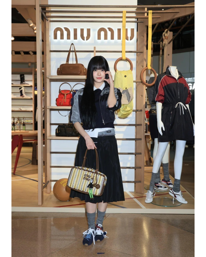 这款衣服是AAAAA 1:1 质量 (非常棒). 使用了和原版一模一样的材料. 商标部分也保持了和缪缪/Miu Miu一样. 图片拍摄是实物衣服拍摄, 您所收到的实物保证和我们图片一模一样.