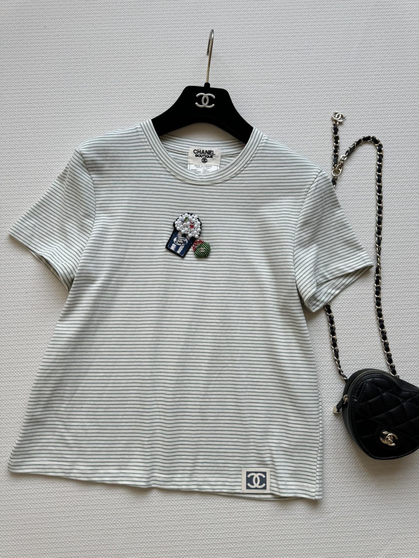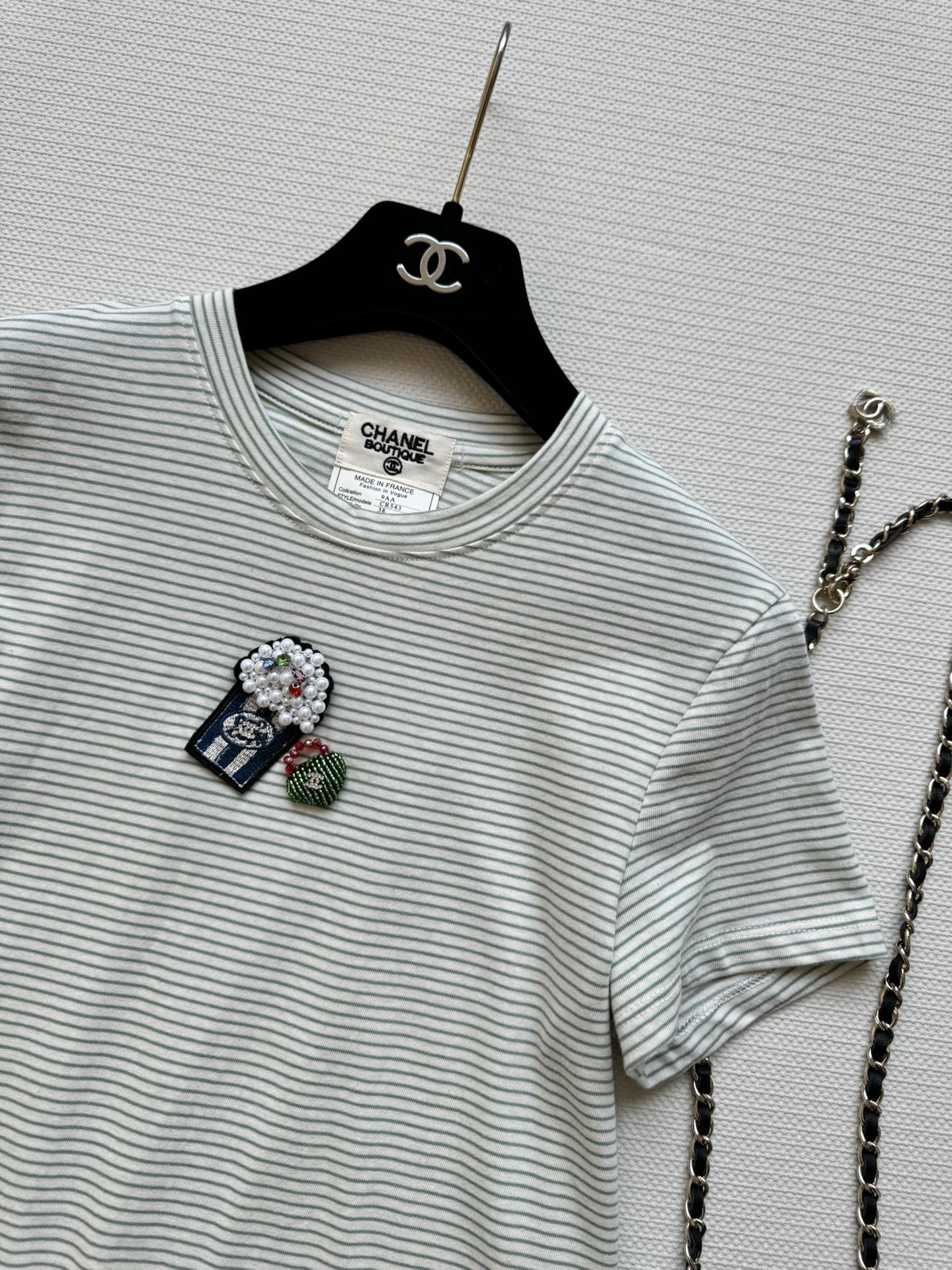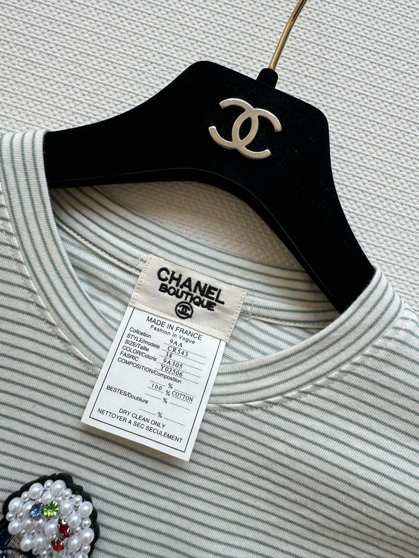 这款衣服是AAAAA 1:1 质量 (非常棒). 使用了和原版一模一样的材料. 商标部分也保持了和香奈儿/Chanel一样. 图片拍摄是实物衣服拍摄, 您所收到的实物保证和我们图片一模一样.