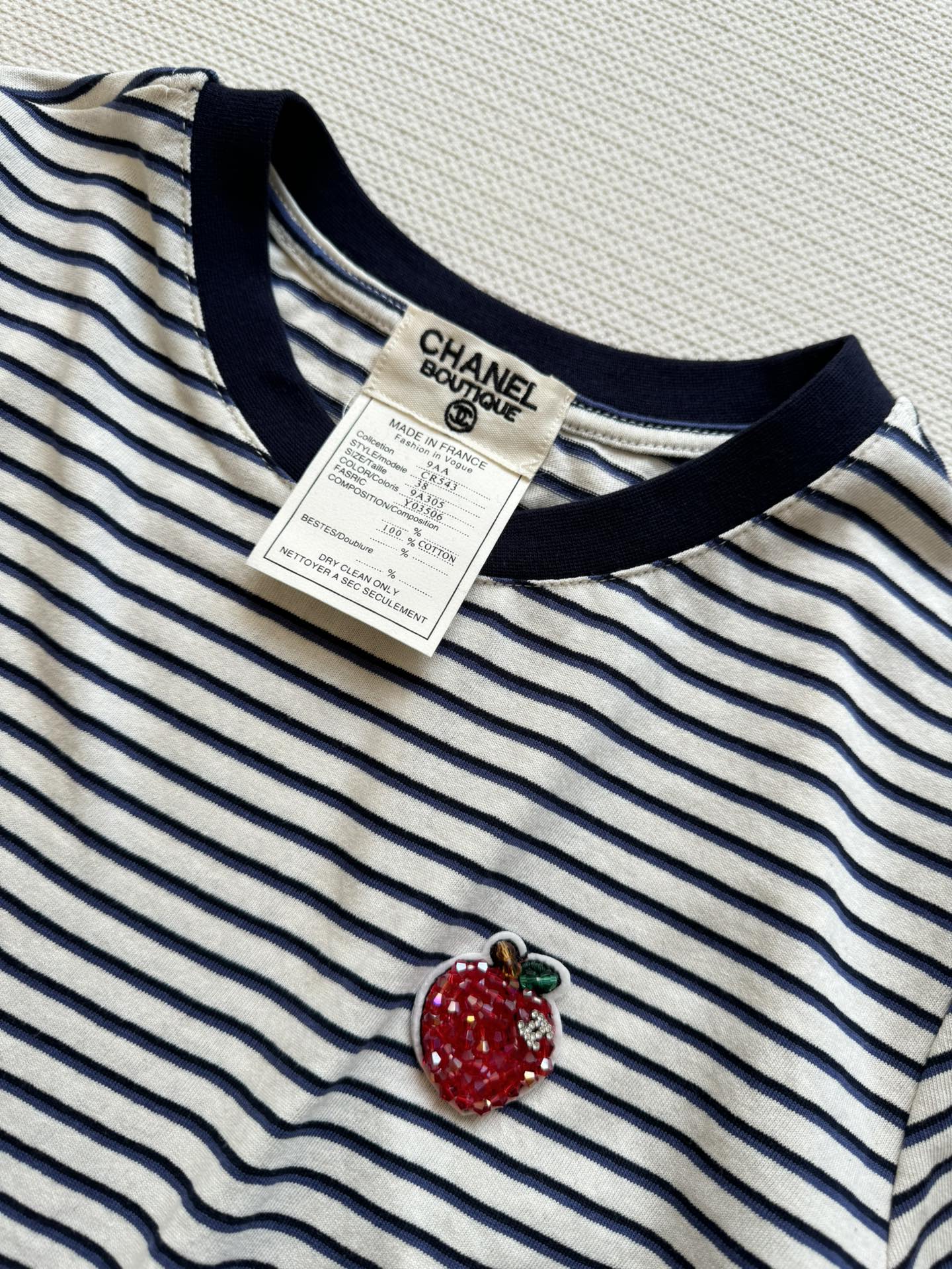 这款衣服是AAAAA 1:1 质量 (非常棒). 使用了和原版一模一样的材料. 商标部分也保持了和香奈儿/Chanel一样. 图片拍摄是实物衣服拍摄, 您所收到的实物保证和我们图片一模一样.