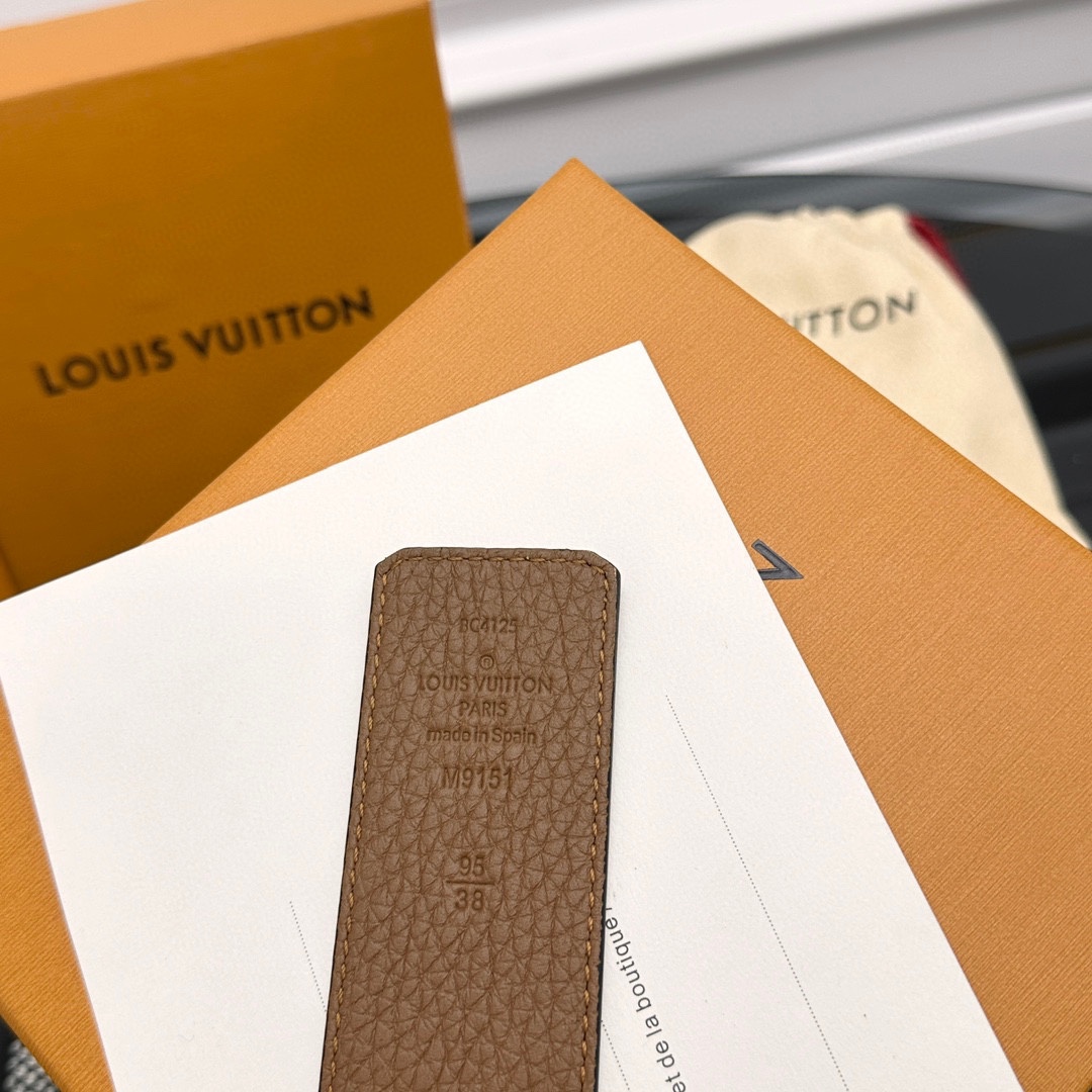 这款皮带是AAAAA 1:1 质量 (非常棒). 使用了和原版一模一样的材料. 商标部分也保持了和路易威登/Louis Vuitton一样. 图片拍摄是实物皮带拍摄, 您所收到的实物保证和我们图片一模一样.