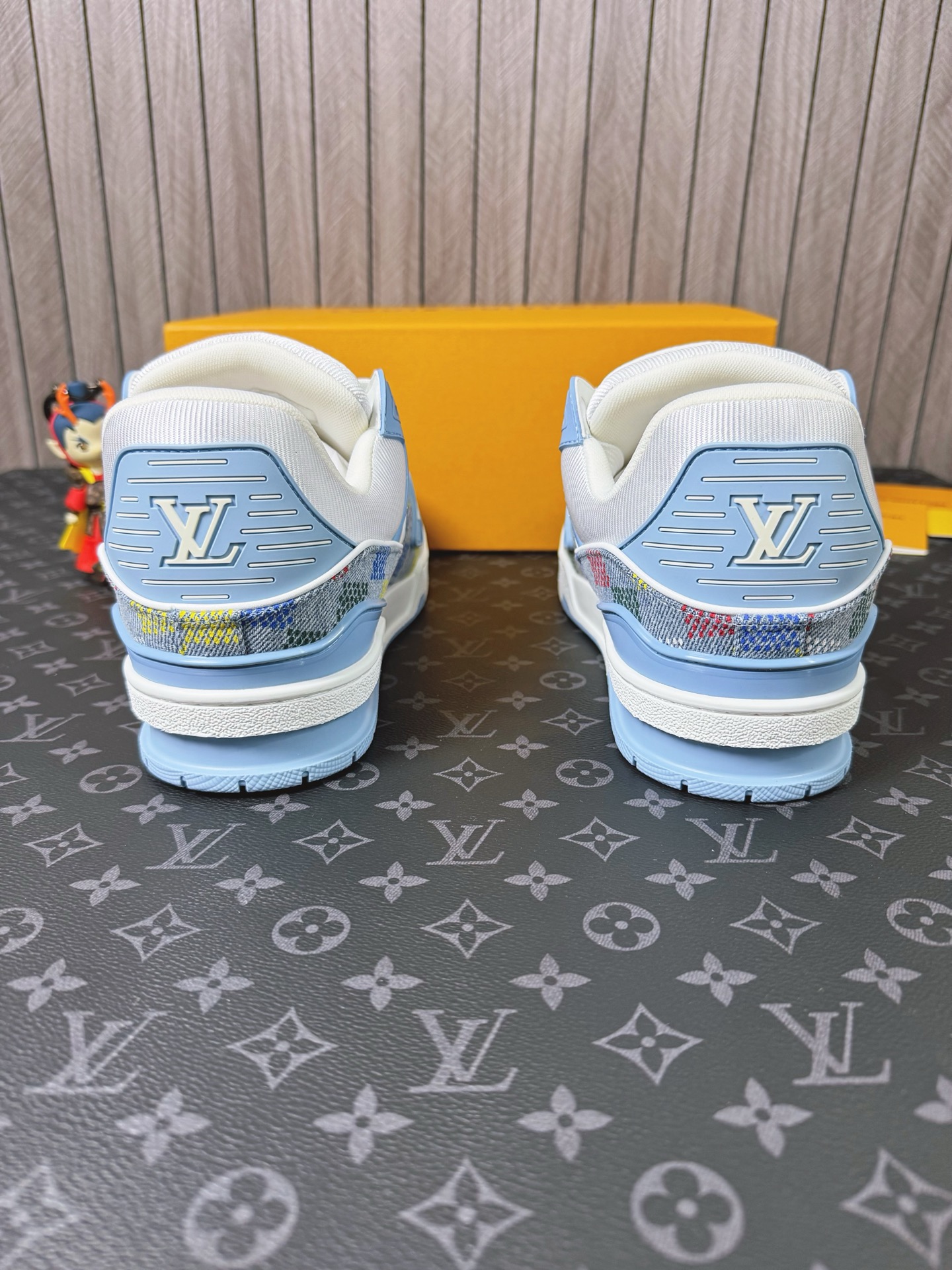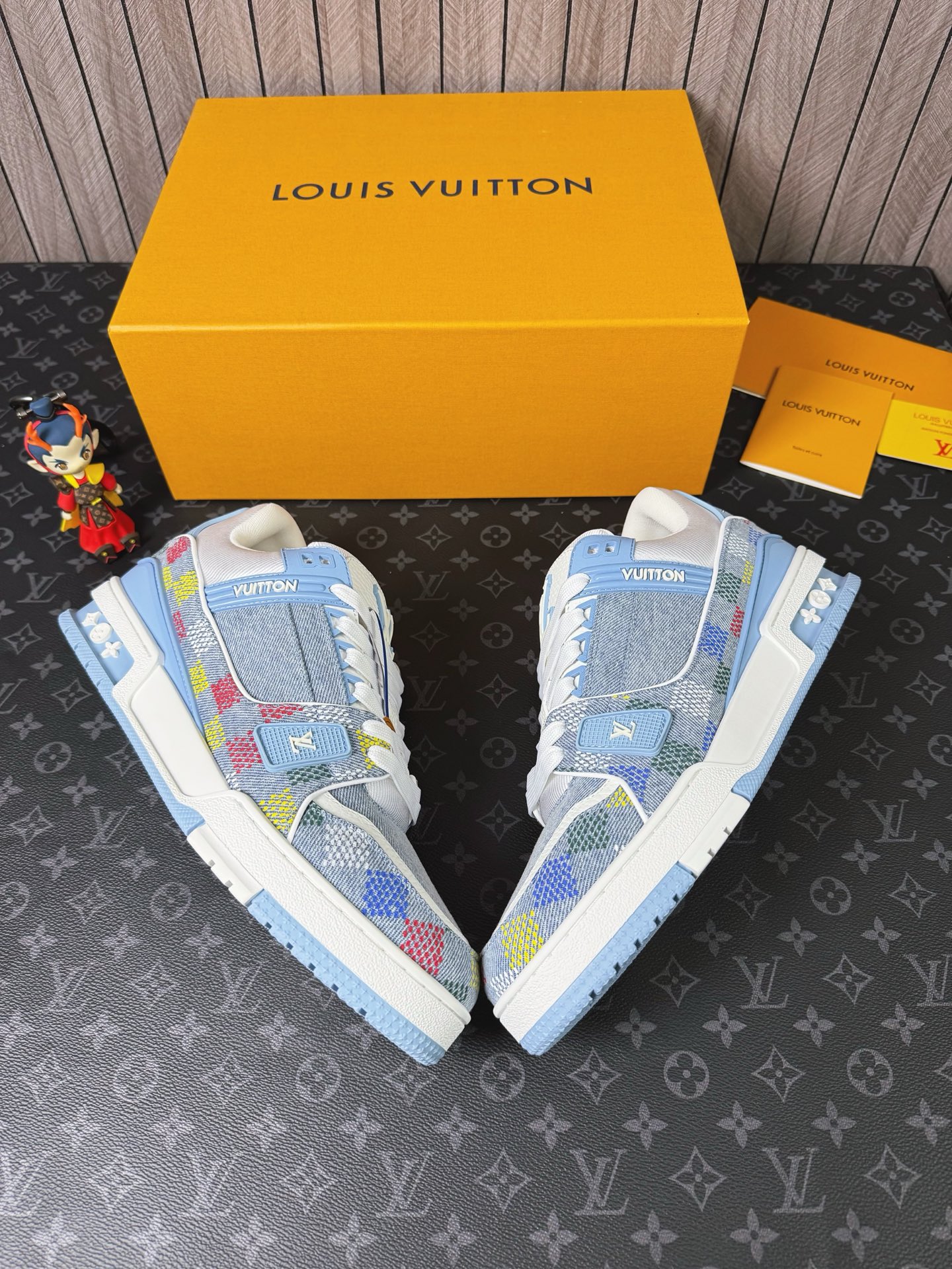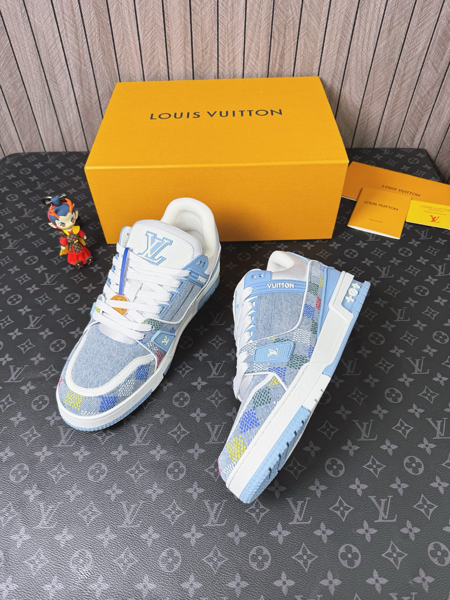 这款鞋子是AAAAA 1:1 质量 (非常棒). 使用了和原版一模一样的材料. 商标部分也保持了和路易威登/Louis Vuitton一样. 图片拍摄是实物鞋子拍摄, 您所收到的实物保证和我们图片一模一样.