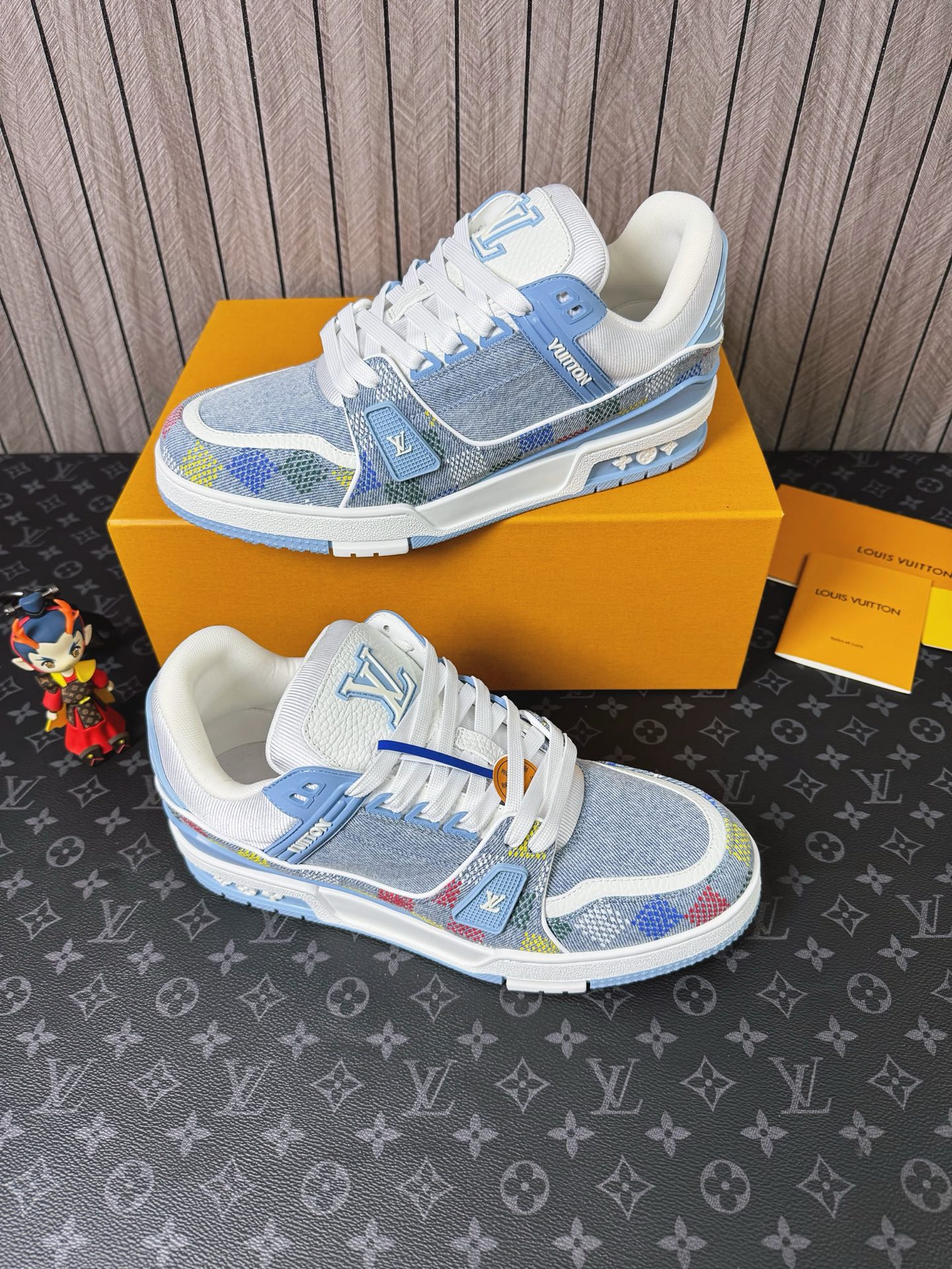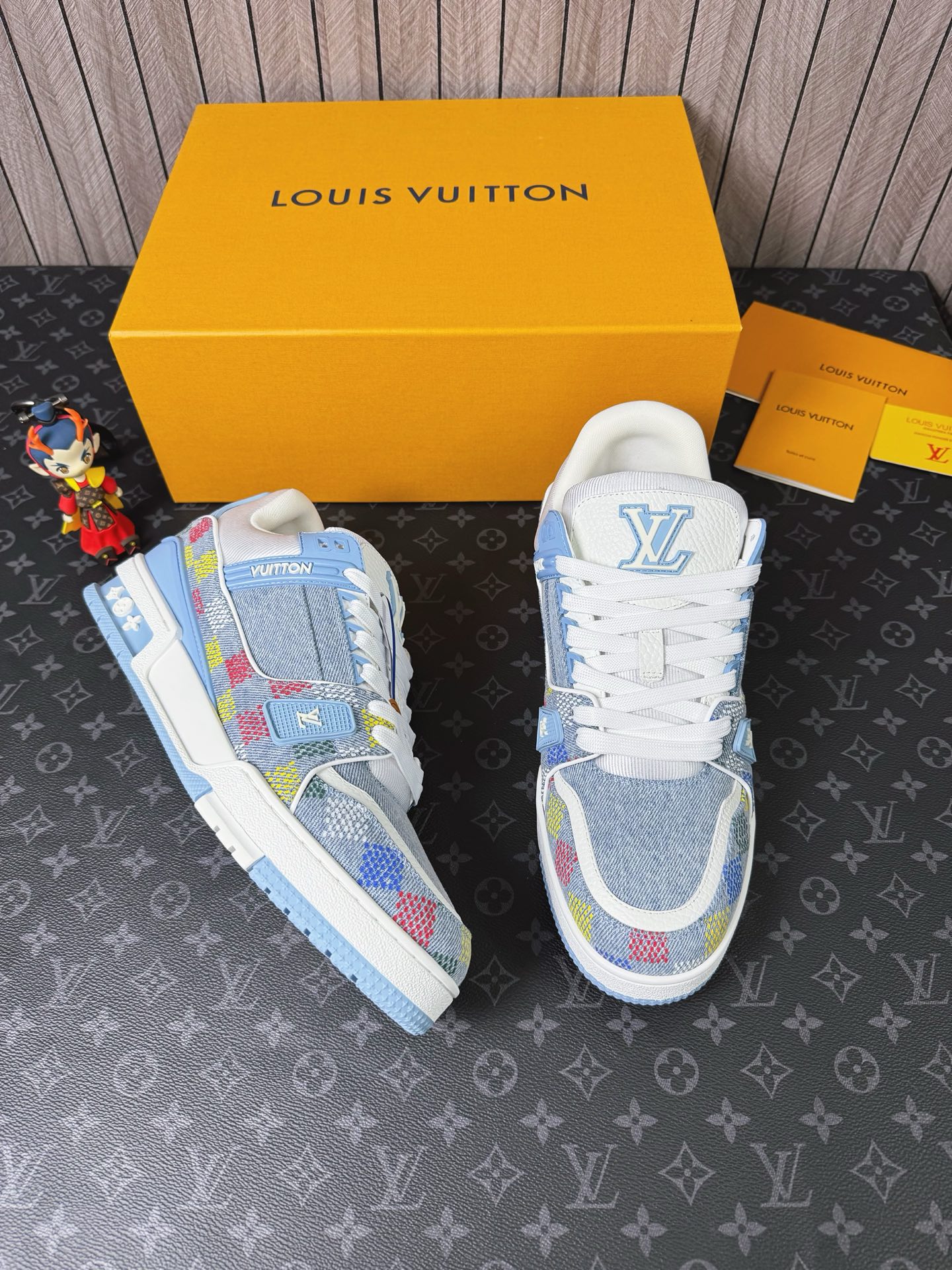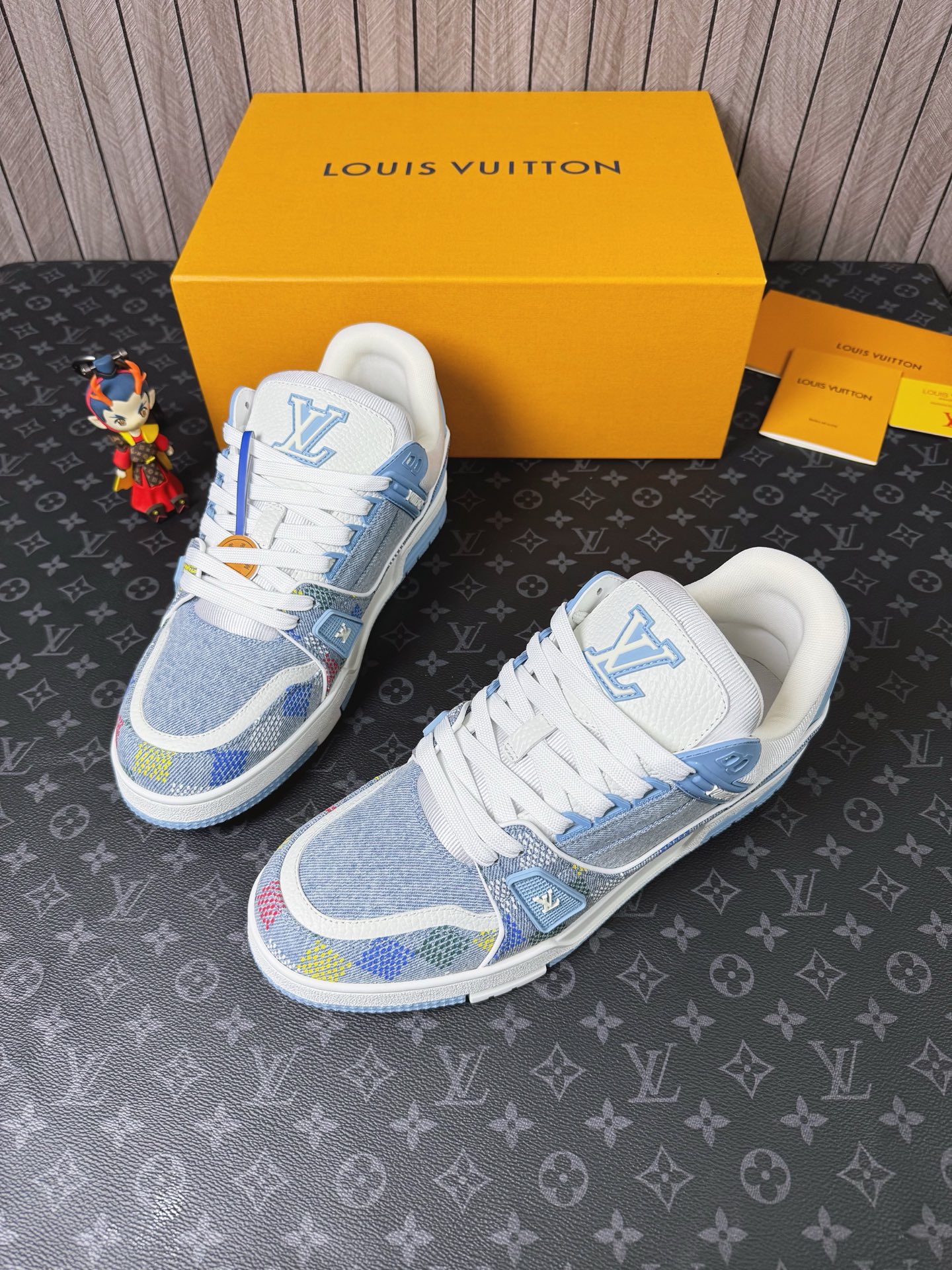 这款鞋子是AAAAA 1:1 质量 (非常棒). 使用了和原版一模一样的材料. 商标部分也保持了和路易威登/Louis Vuitton一样. 图片拍摄是实物鞋子拍摄, 您所收到的实物保证和我们图片一模一样.