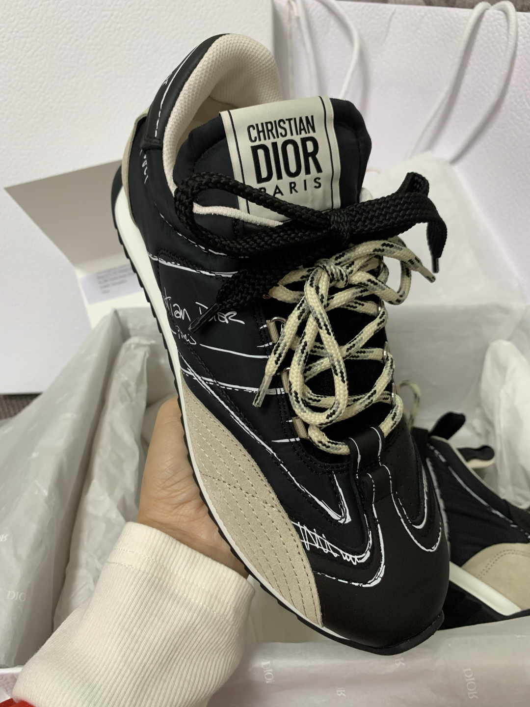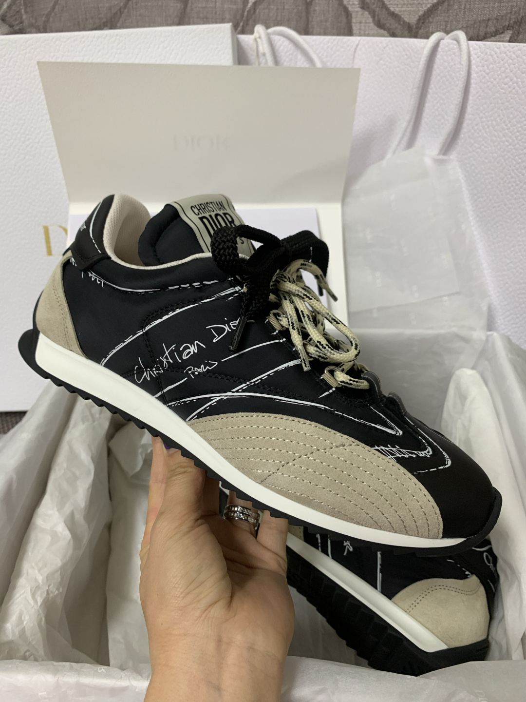 这款鞋子是AAAAA 1:1 质量 (非常棒). 使用了和原版一模一样的材料. 商标部分也保持了和迪奥/Dior一样. 图片拍摄是实物鞋子拍摄, 您所收到的实物保证和我们图片一模一样.