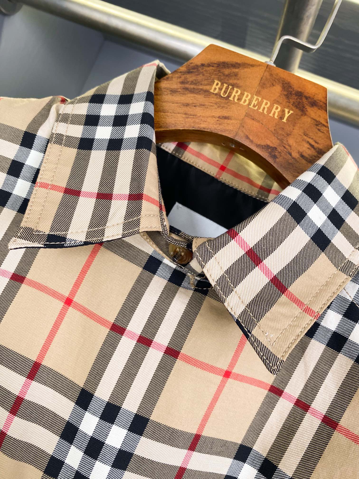 这款衣服是AAAAA 1:1 质量 (非常棒). 使用了和原版一模一样的材料. 商标部分也保持了和巴宝莉/Burberry一样. 图片拍摄是实物衣服拍摄, 您所收到的实物保证和我们图片一模一样.