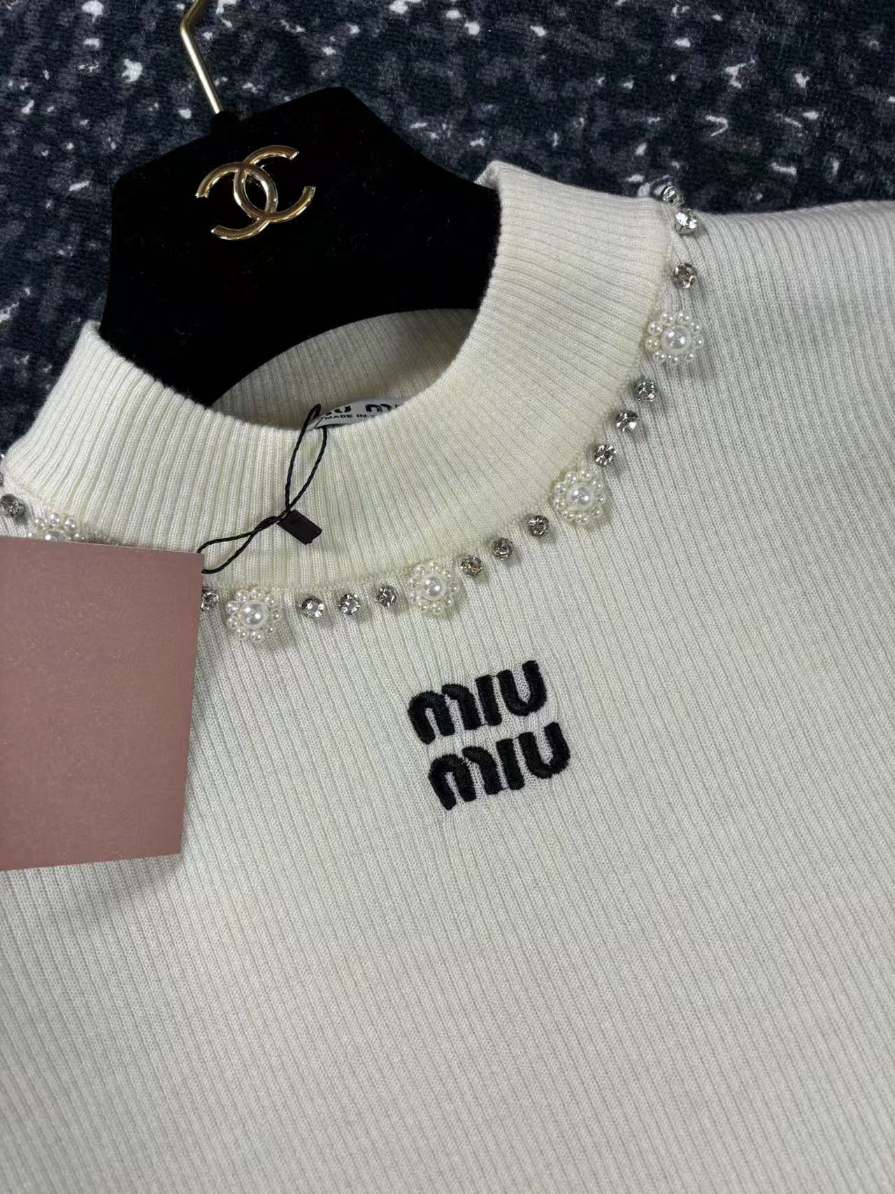 这款衣服是AAAAA 1:1 质量 (非常棒). 使用了和原版一模一样的材料. 商标部分也保持了和缪缪/Miu Miu一样. 图片拍摄是实物衣服拍摄, 您所收到的实物保证和我们图片一模一样.