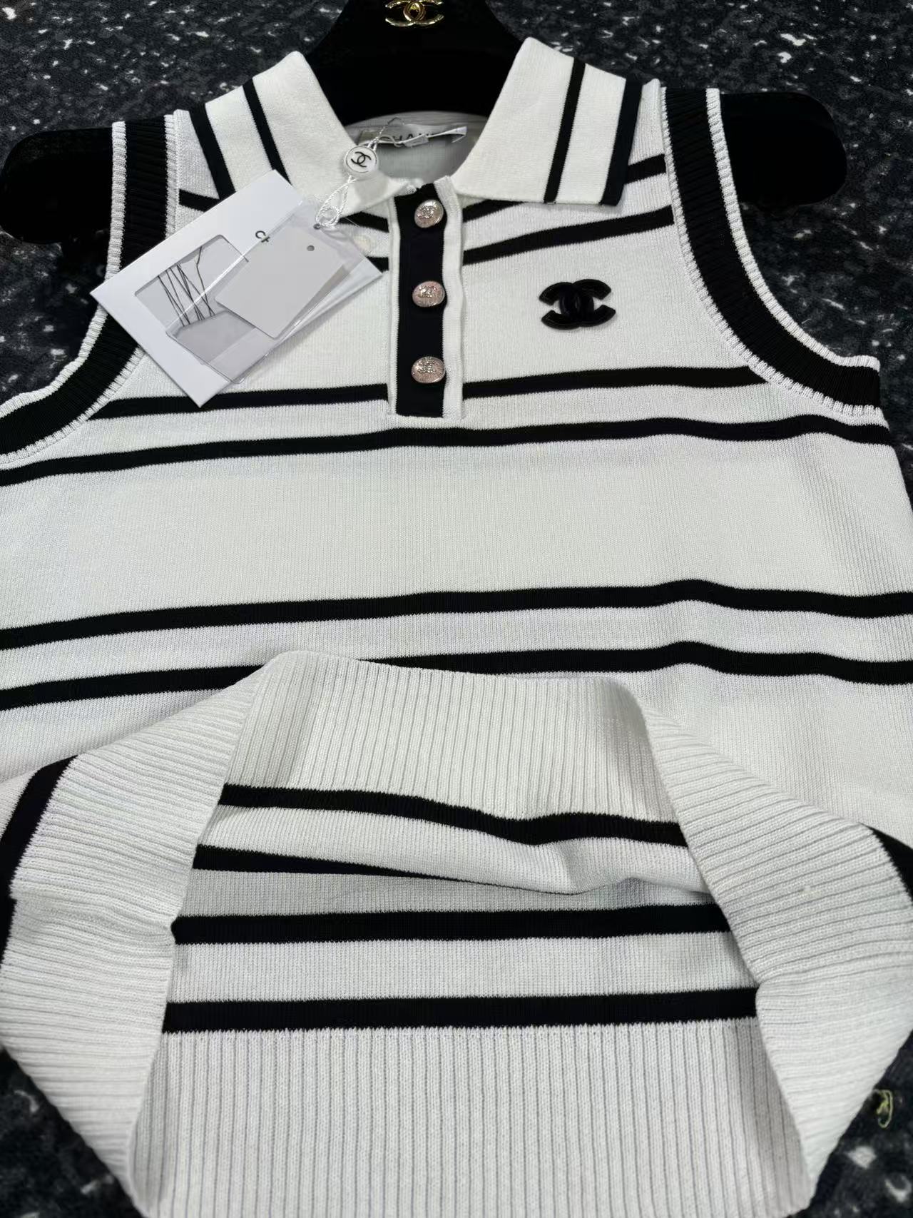 这款衣服是AAAAA 1:1 质量 (非常棒). 使用了和原版一模一样的材料. 商标部分也保持了和香奈儿/Chanel一样. 图片拍摄是实物衣服拍摄, 您所收到的实物保证和我们图片一模一样.