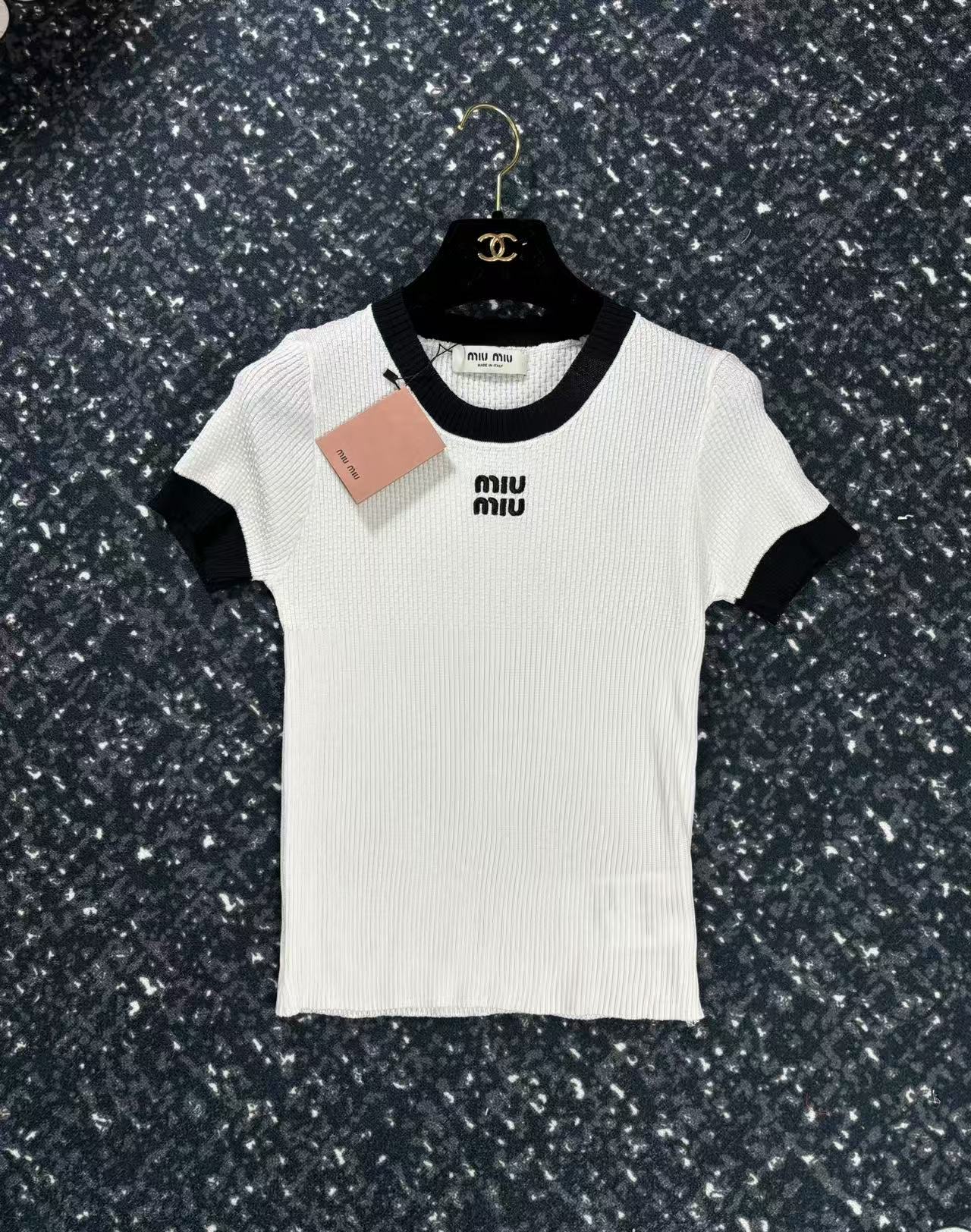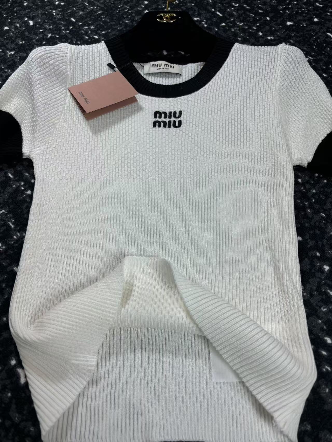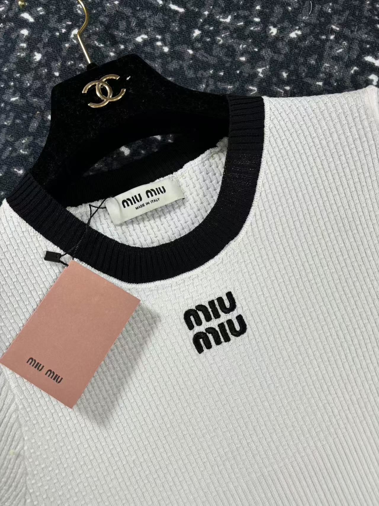 这款衣服是AAAAA 1:1 质量 (非常棒). 使用了和原版一模一样的材料. 商标部分也保持了和缪缪/Miu Miu一样. 图片拍摄是实物衣服拍摄, 您所收到的实物保证和我们图片一模一样.