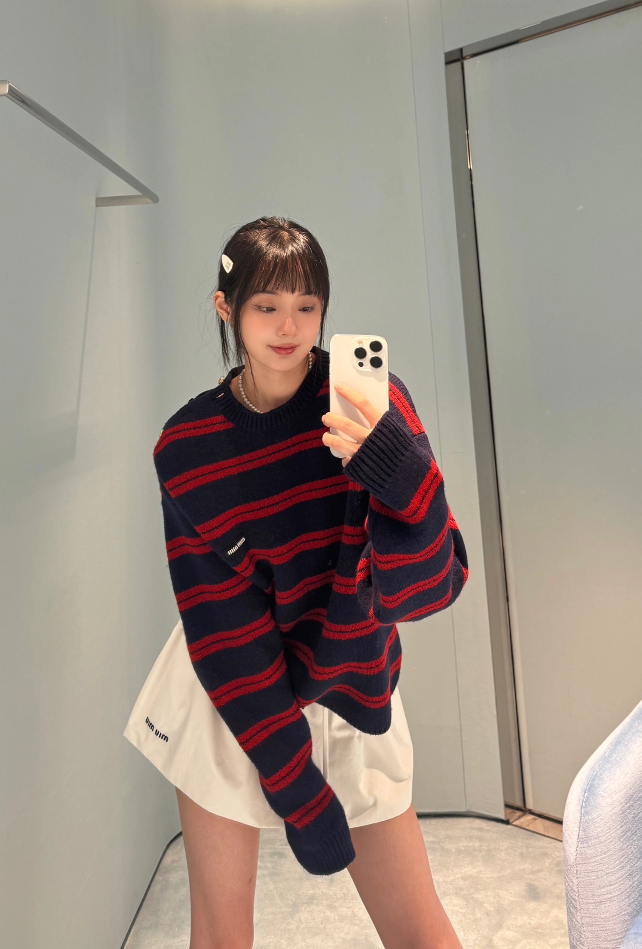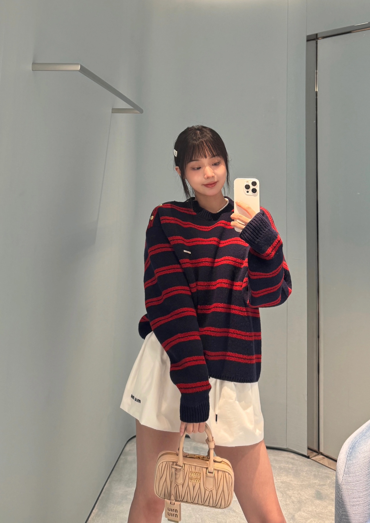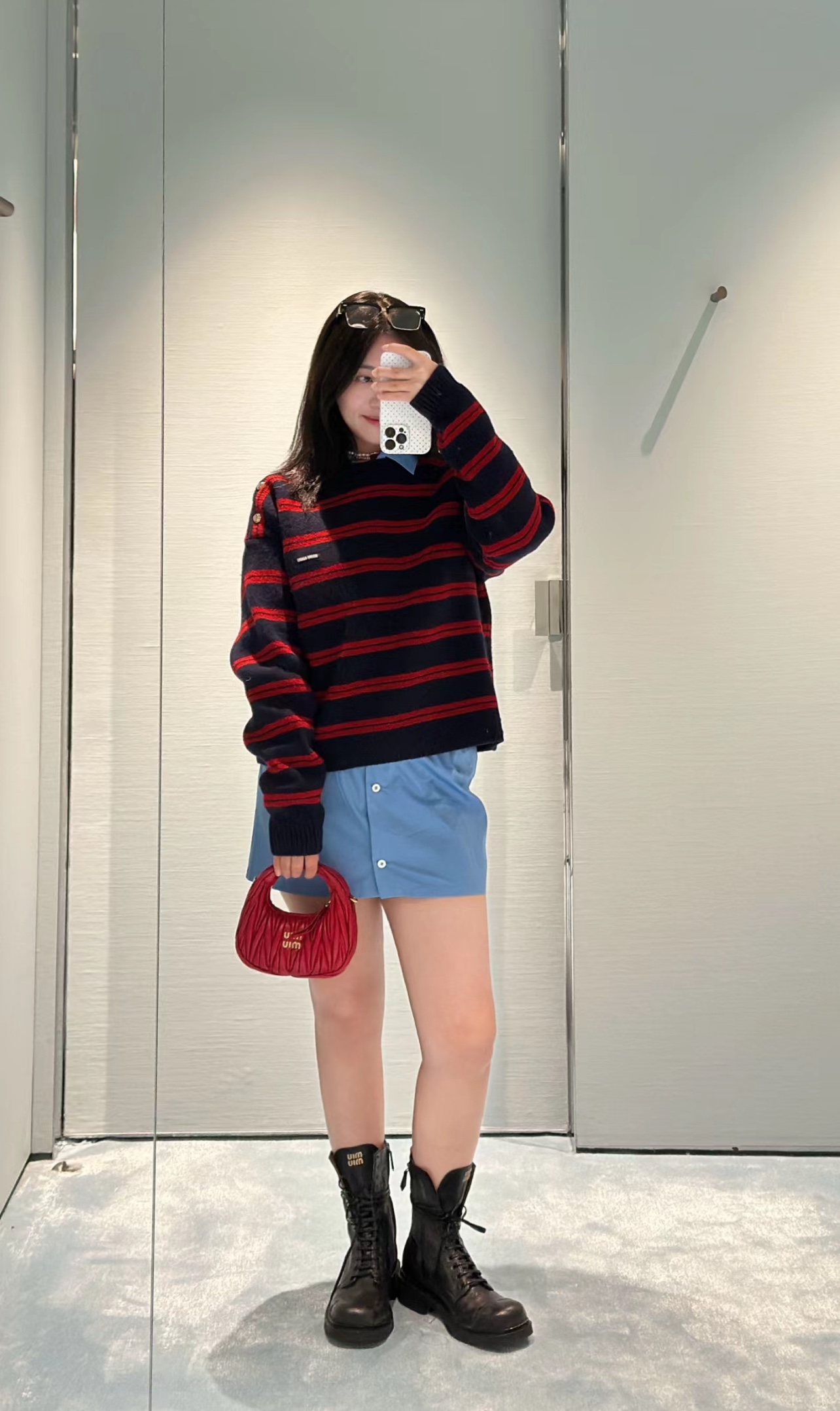这款衣服是AAAAA 1:1 质量 (非常棒). 使用了和原版一模一样的材料. 商标部分也保持了和缪缪/Miu Miu一样. 图片拍摄是实物衣服拍摄, 您所收到的实物保证和我们图片一模一样.