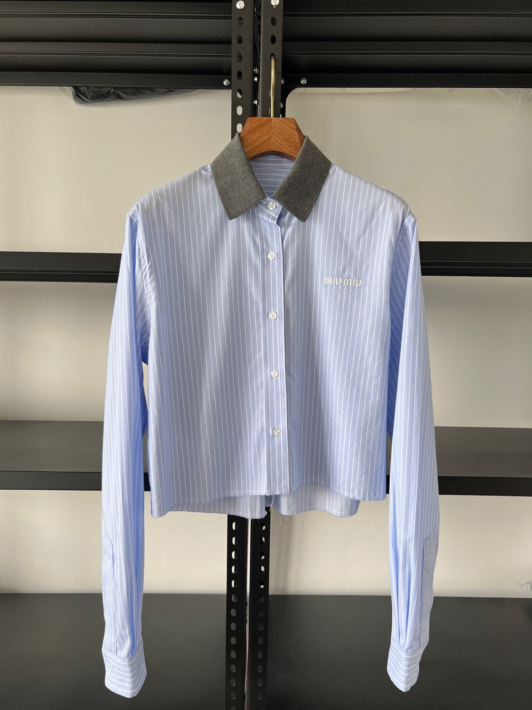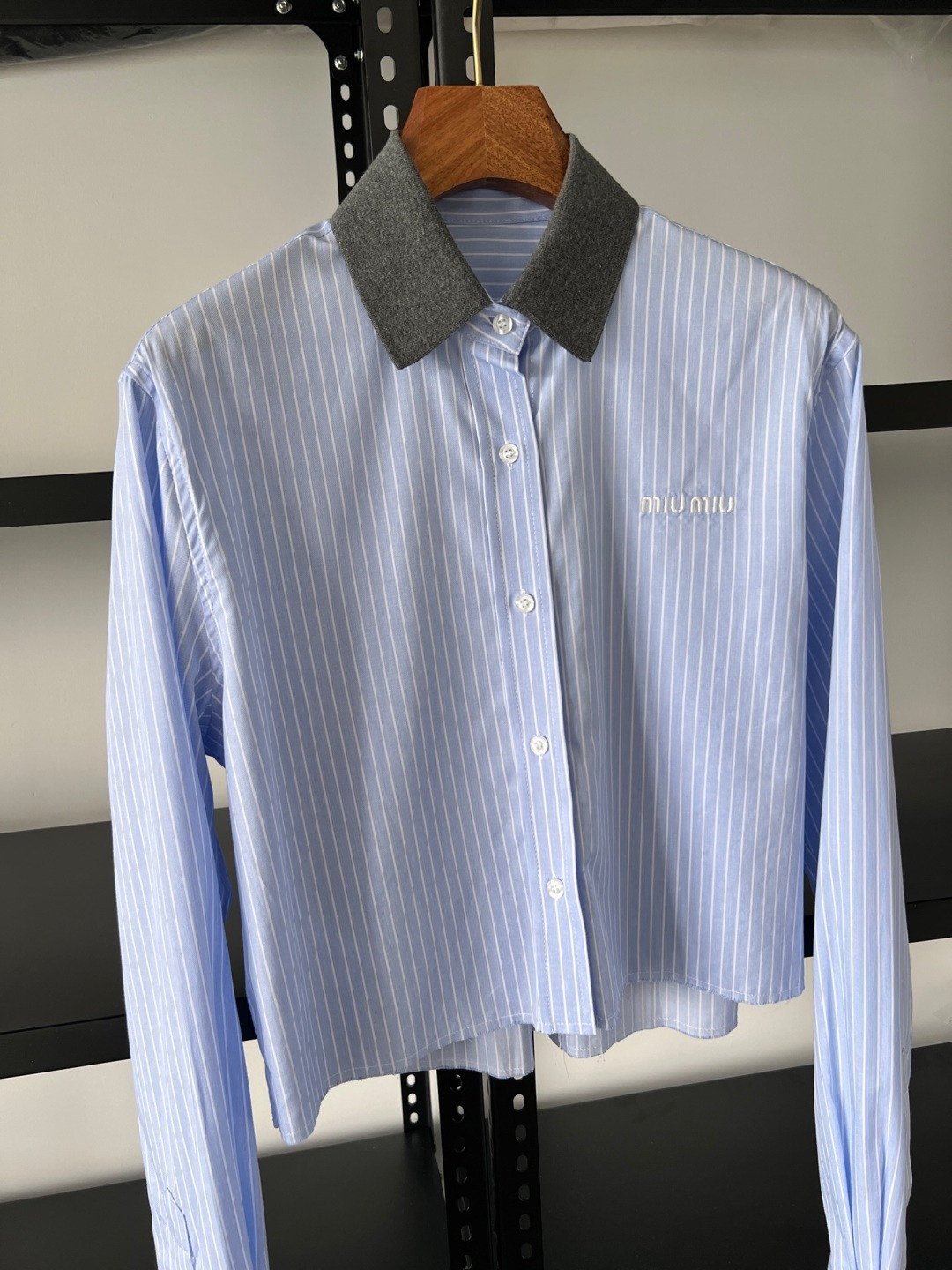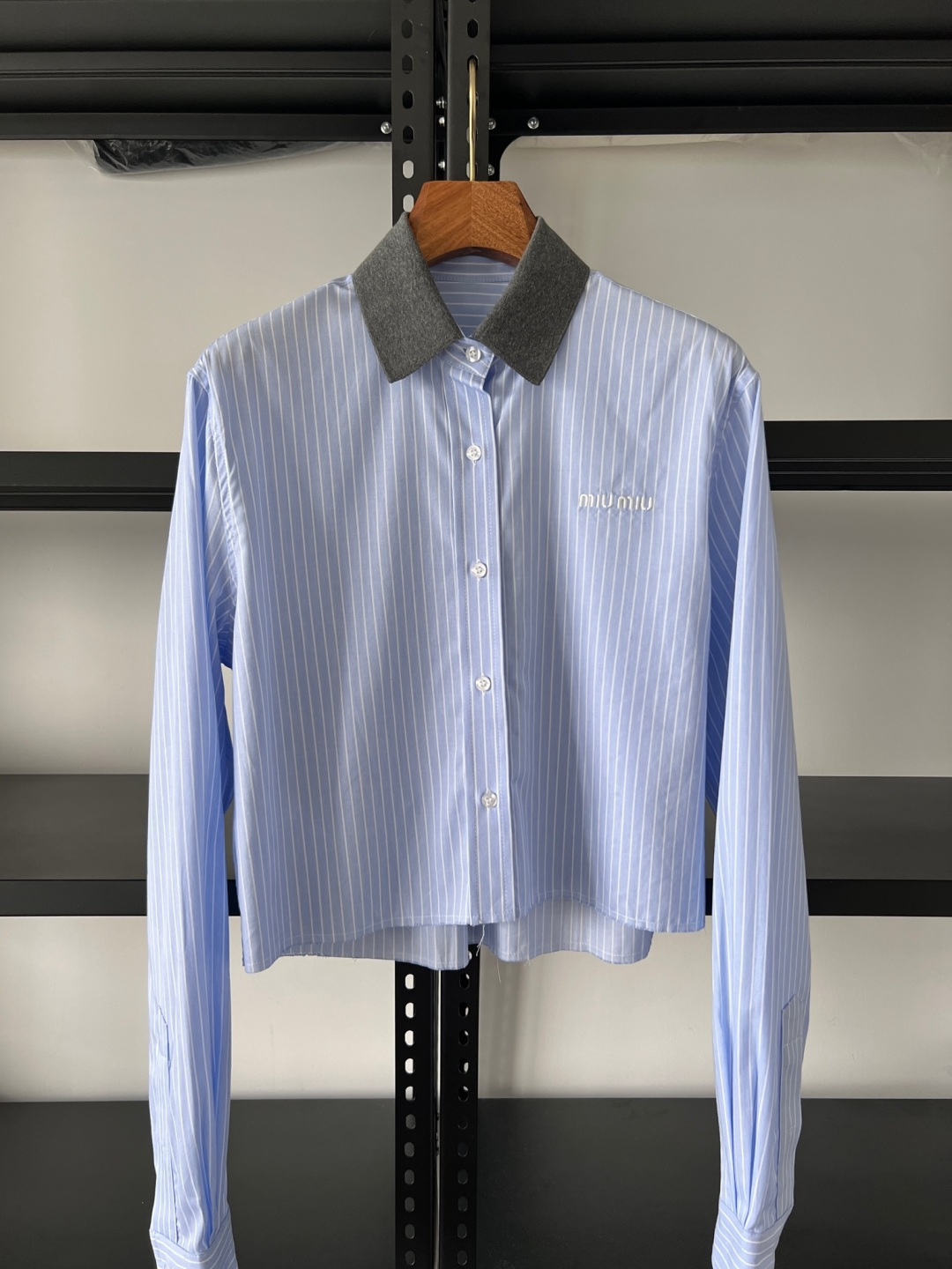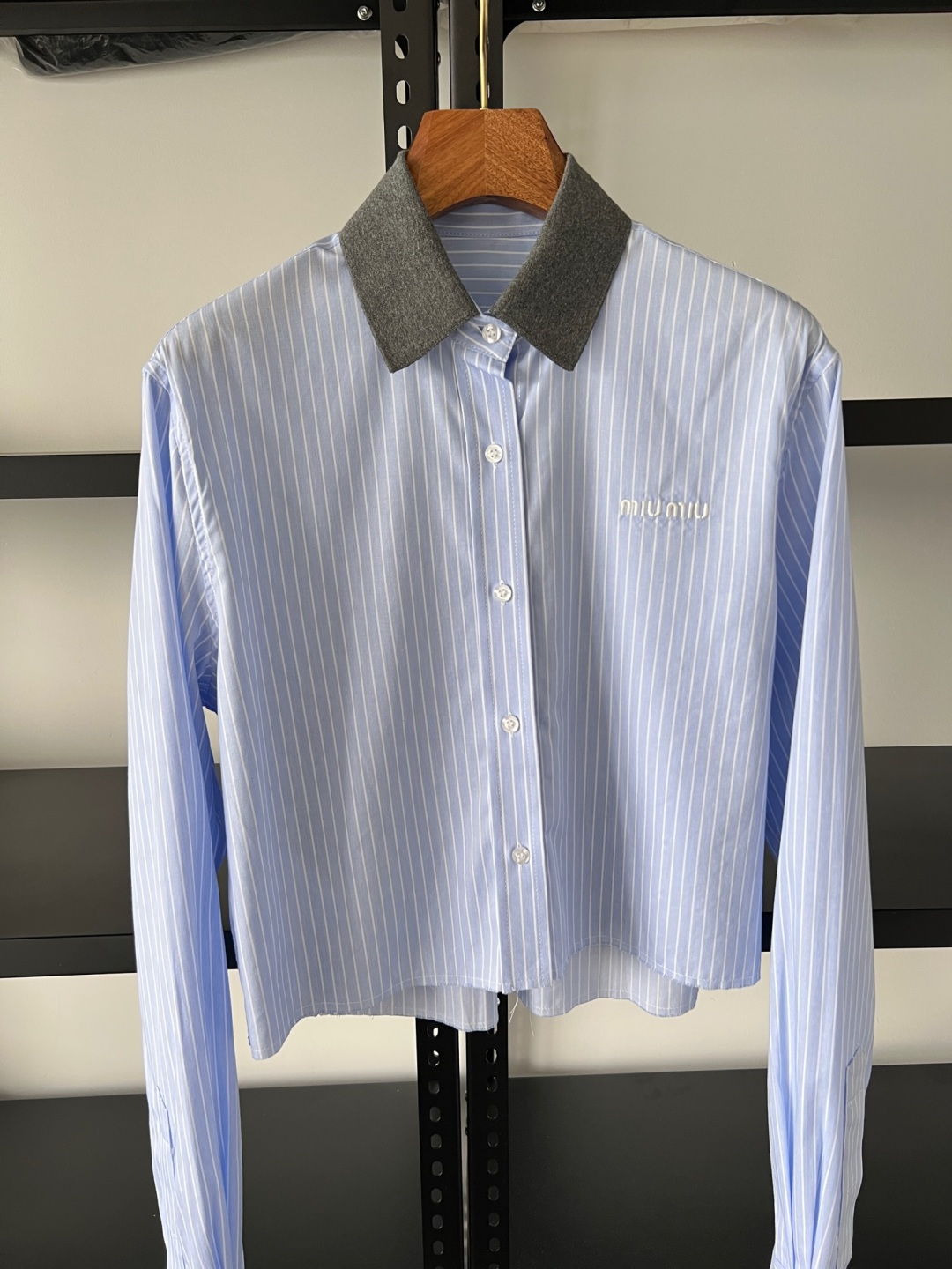 这款衣服是AAAAA 1:1 质量 (非常棒). 使用了和原版一模一样的材料. 商标部分也保持了和缪缪/Miu Miu一样. 图片拍摄是实物衣服拍摄, 您所收到的实物保证和我们图片一模一样.