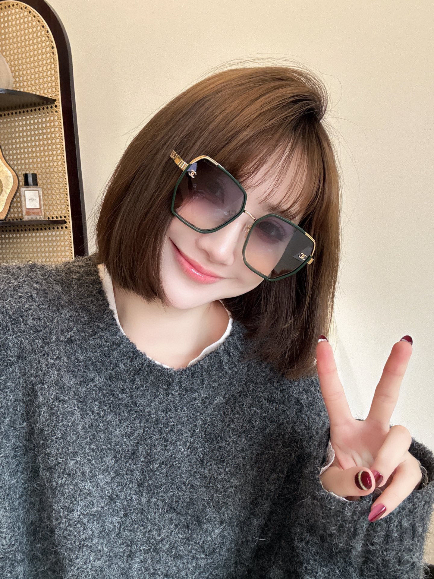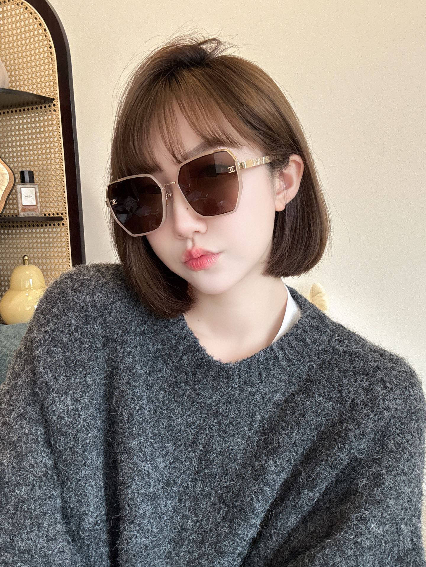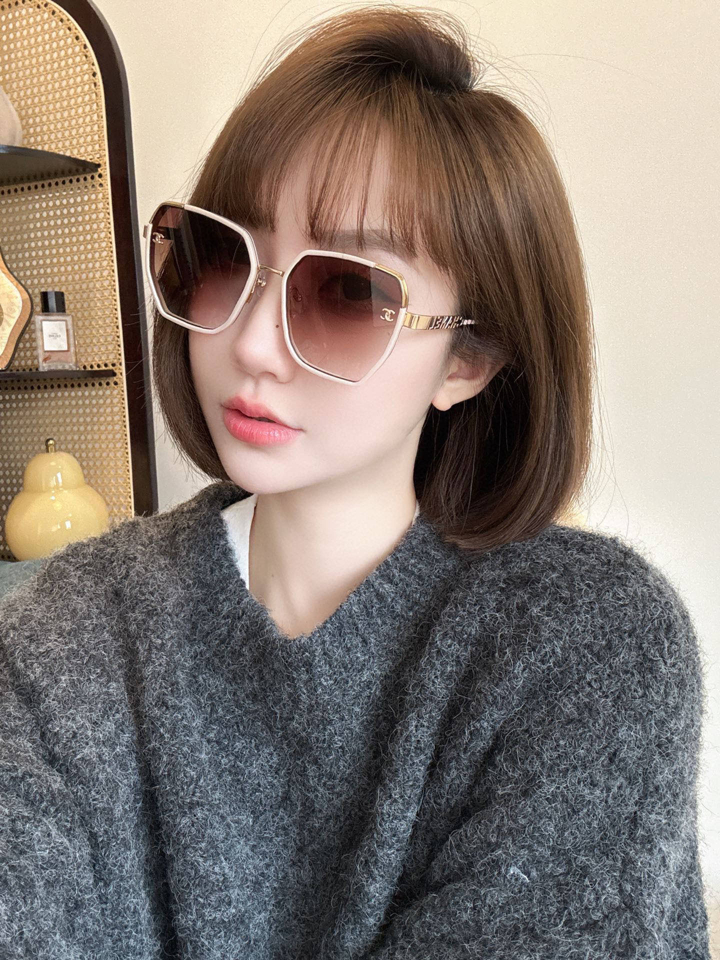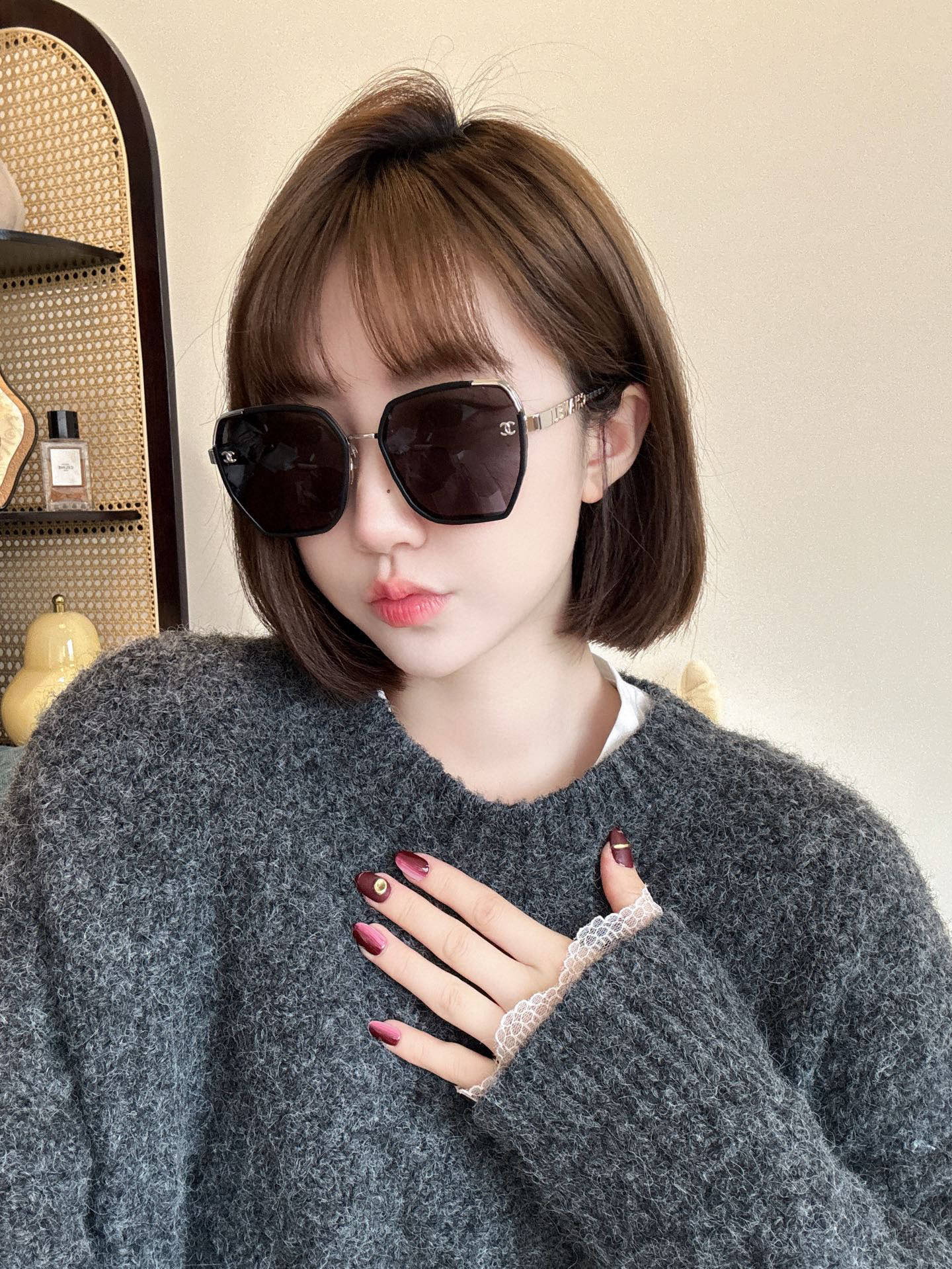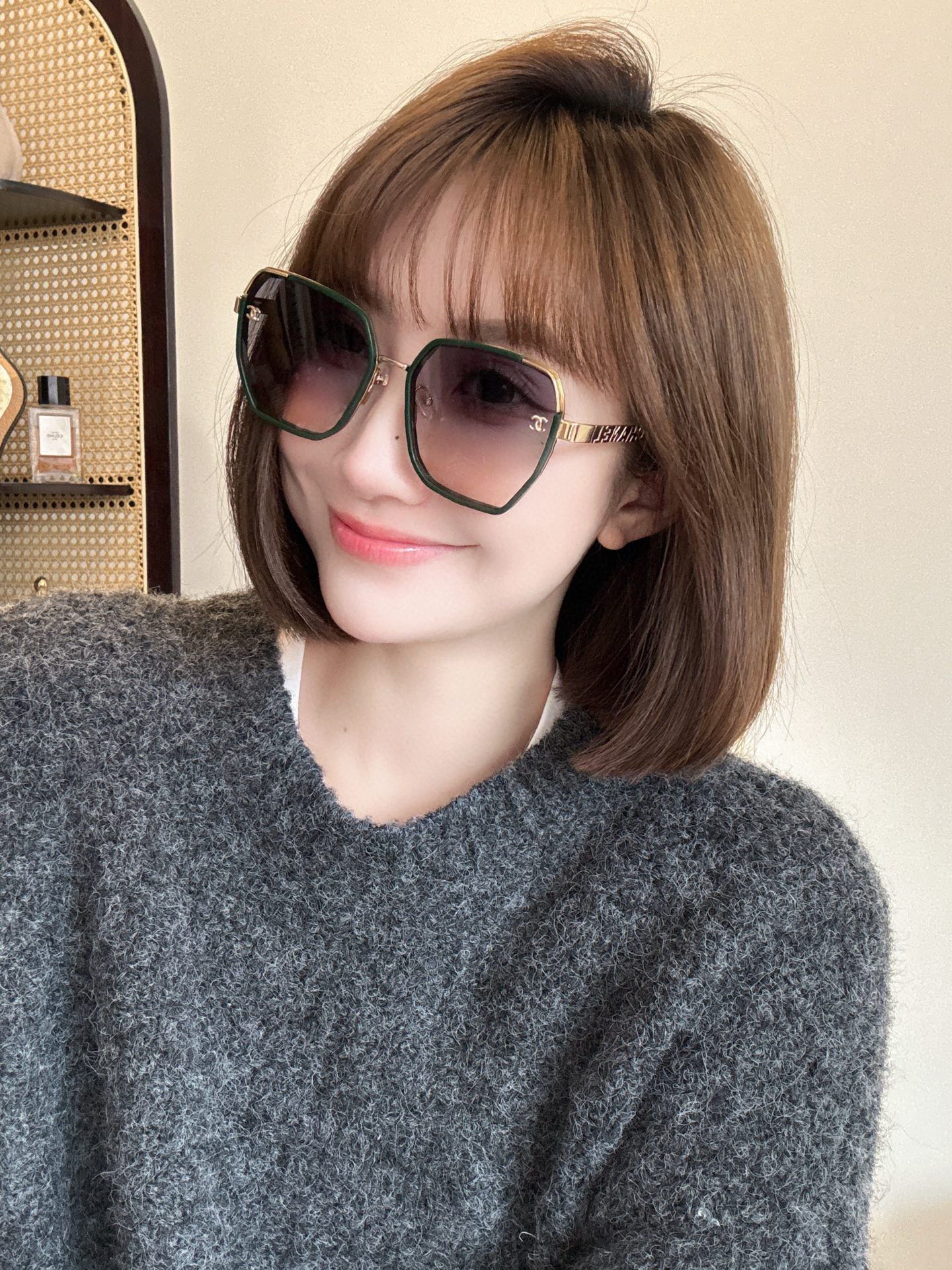 这款太阳眼镜是AAAAA 1:1 质量 (非常棒). 使用了和原版一模一样的材料. 商标部分也保持了和香奈儿/Chanel一样. 图片拍摄是实物太阳眼镜拍摄, 您所收到的实物保证和我们图片一模一样.