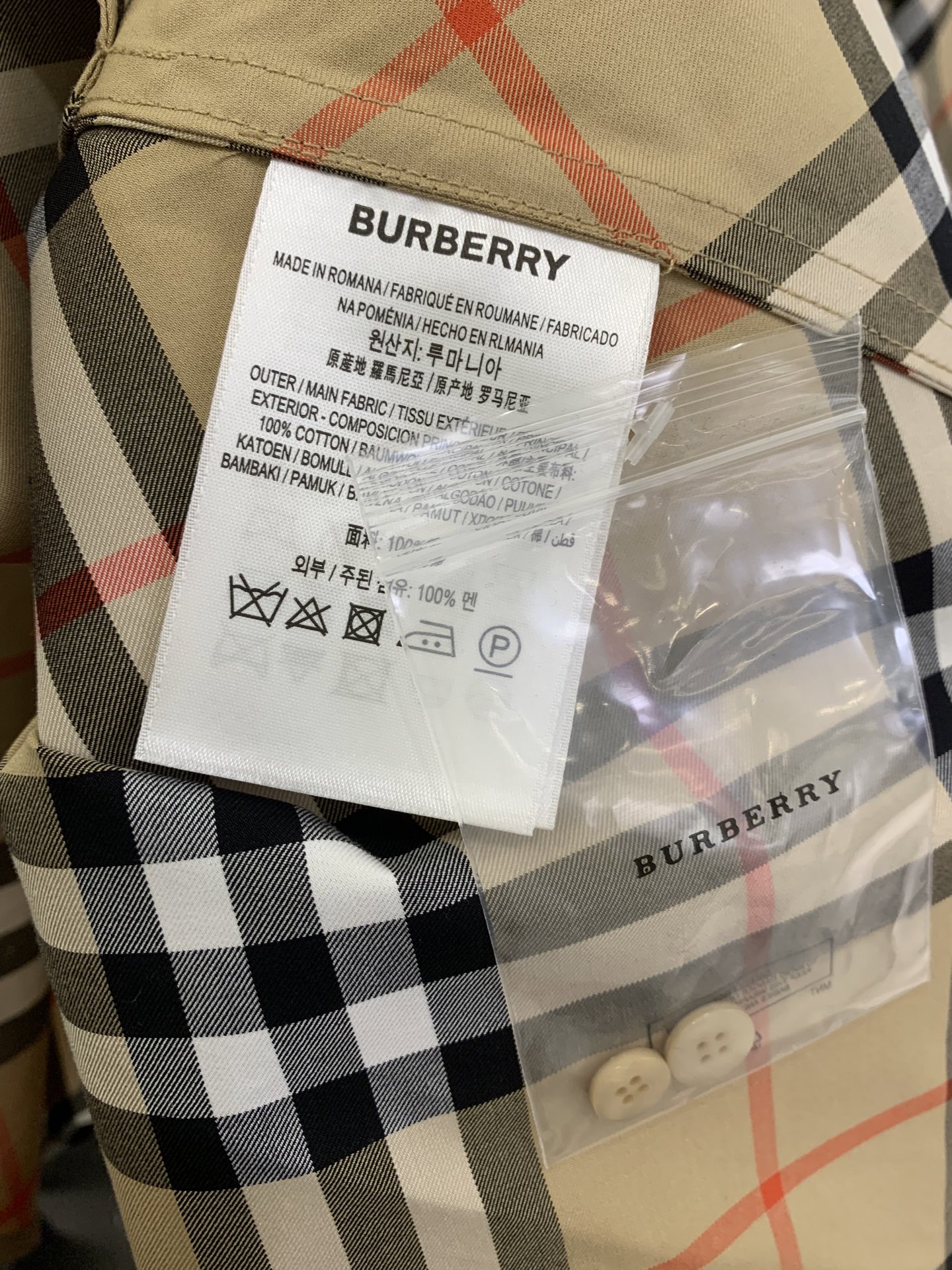 这款衣服是AAAAA 1:1 质量 (非常棒). 使用了和原版一模一样的材料. 商标部分也保持了和巴宝莉/Burberry一样. 图片拍摄是实物衣服拍摄, 您所收到的实物保证和我们图片一模一样.
