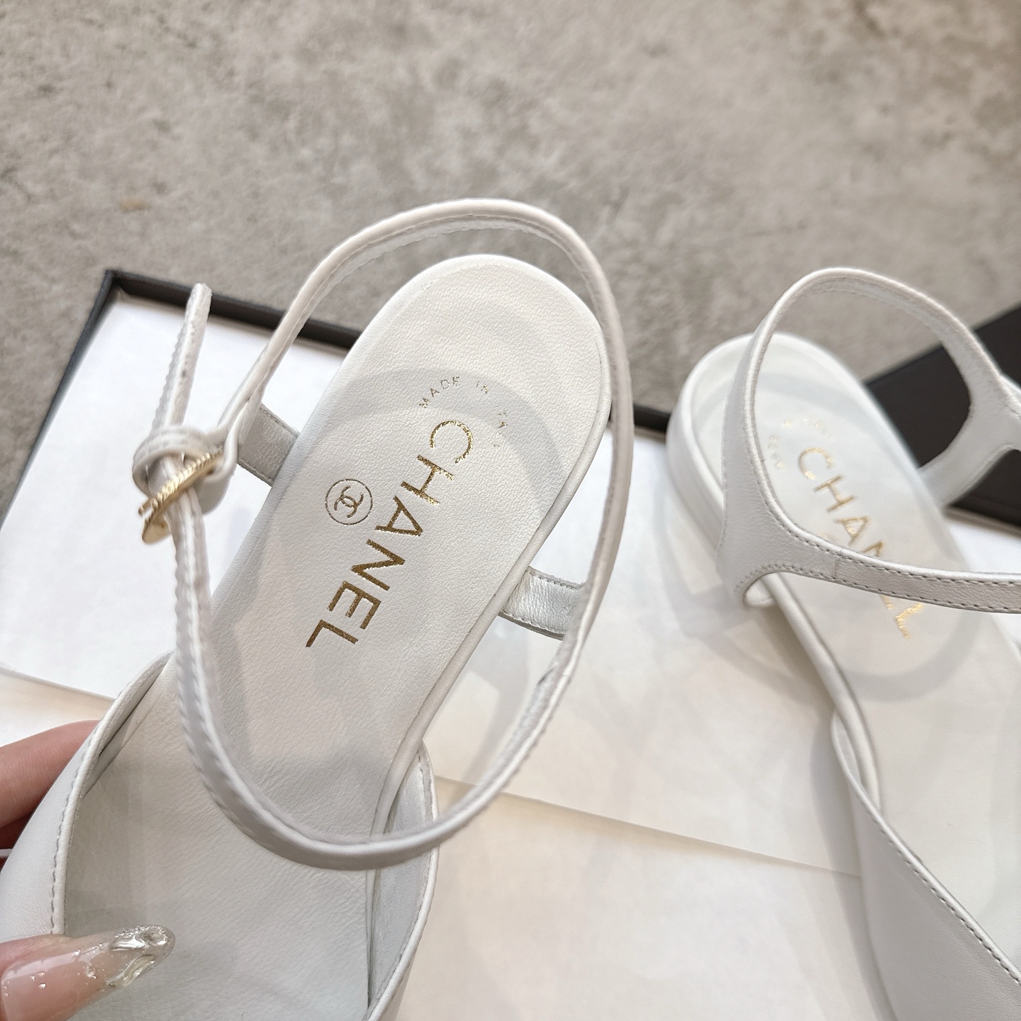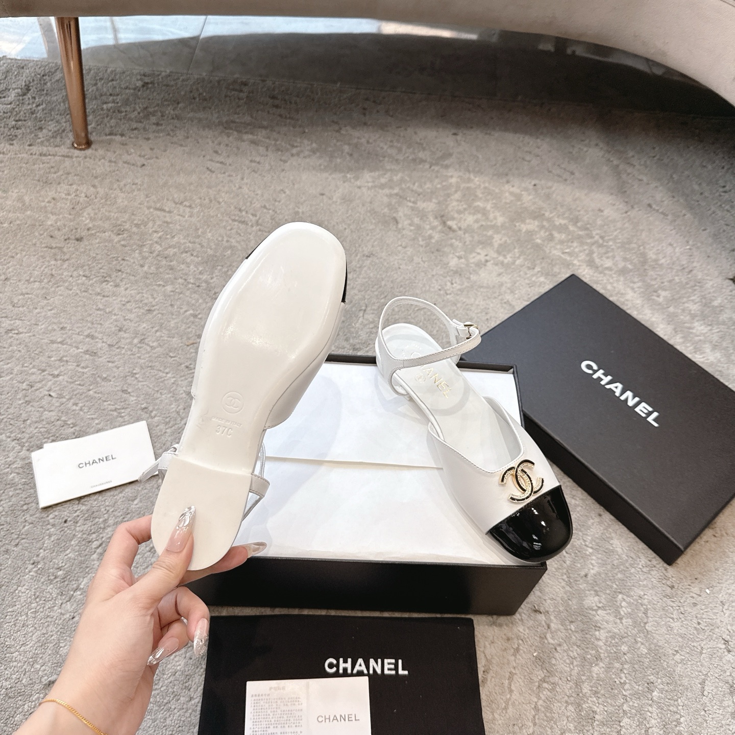 这款鞋子是AAAAA 1:1 质量 (非常棒). 使用了和原版一模一样的材料. 商标部分也保持了和香奈儿/Chanel一样. 图片拍摄是实物鞋子拍摄, 您所收到的实物保证和我们图片一模一样.
