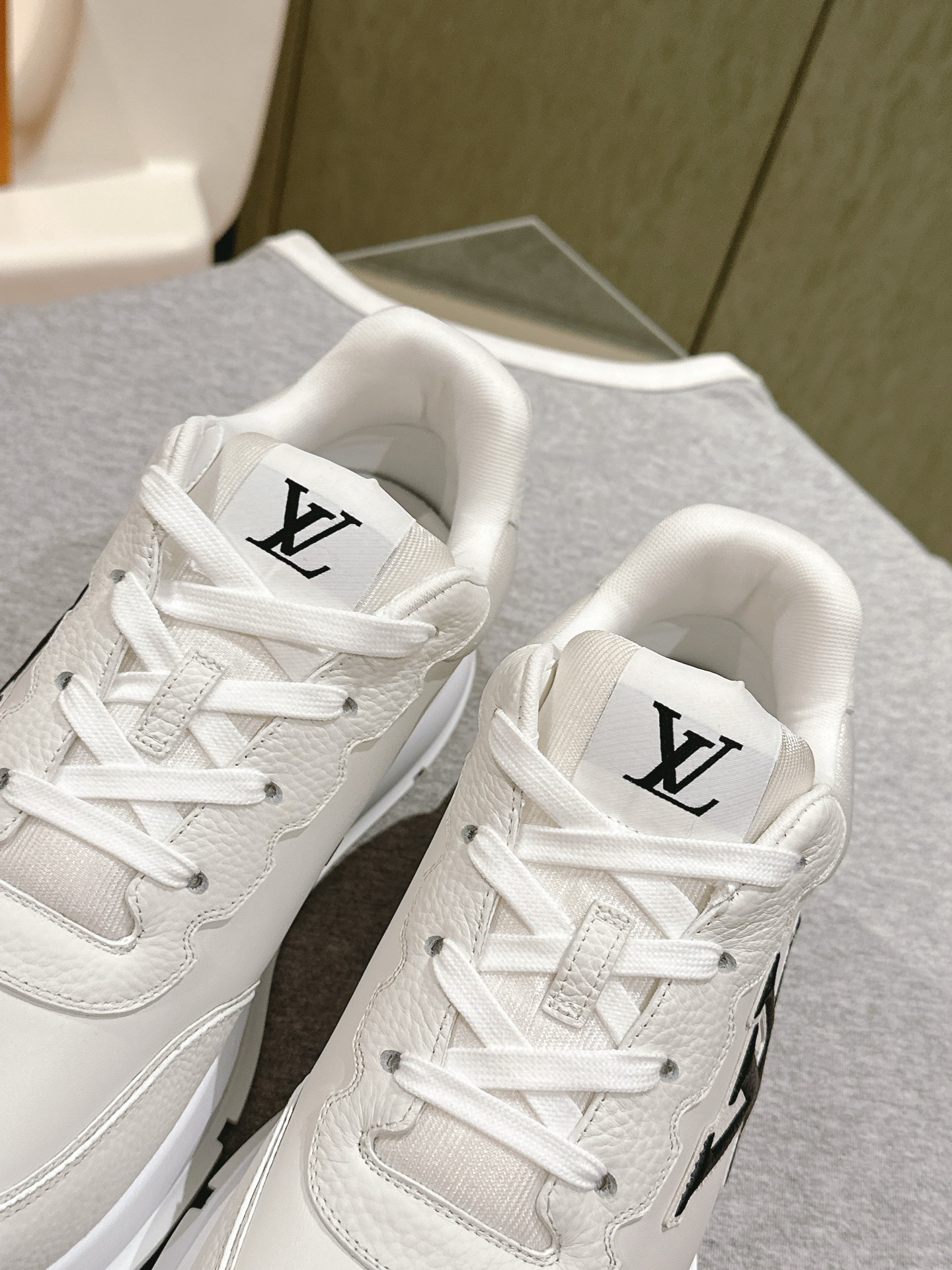 这款鞋子是AAAAA 1:1 质量 (非常棒). 使用了和原版一模一样的材料. 商标部分也保持了和路易威登/Louis Vuitton一样. 图片拍摄是实物鞋子拍摄, 您所收到的实物保证和我们图片一模一样.