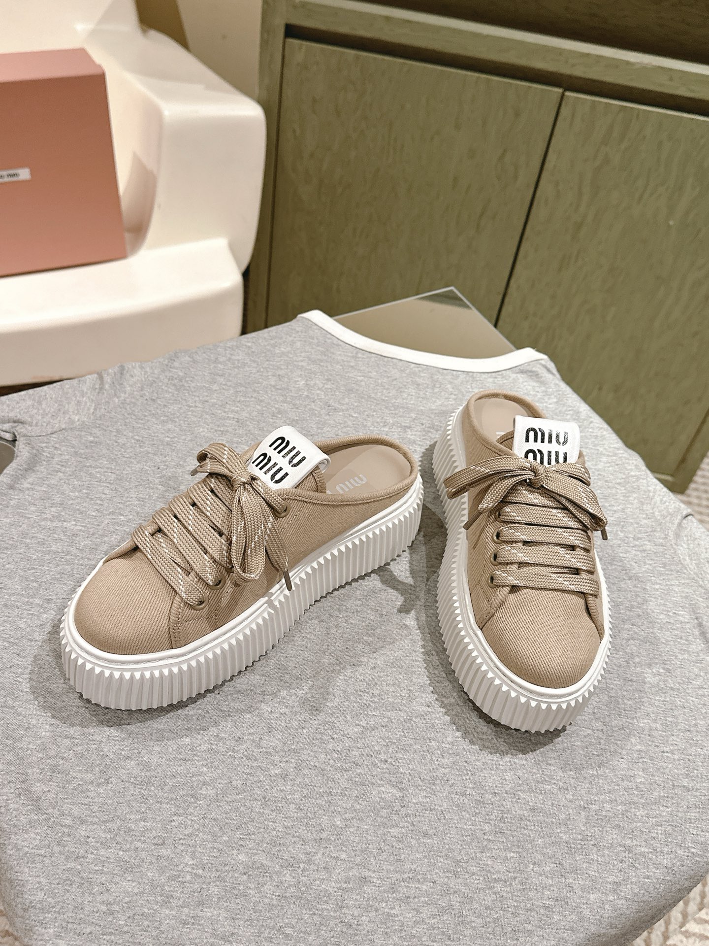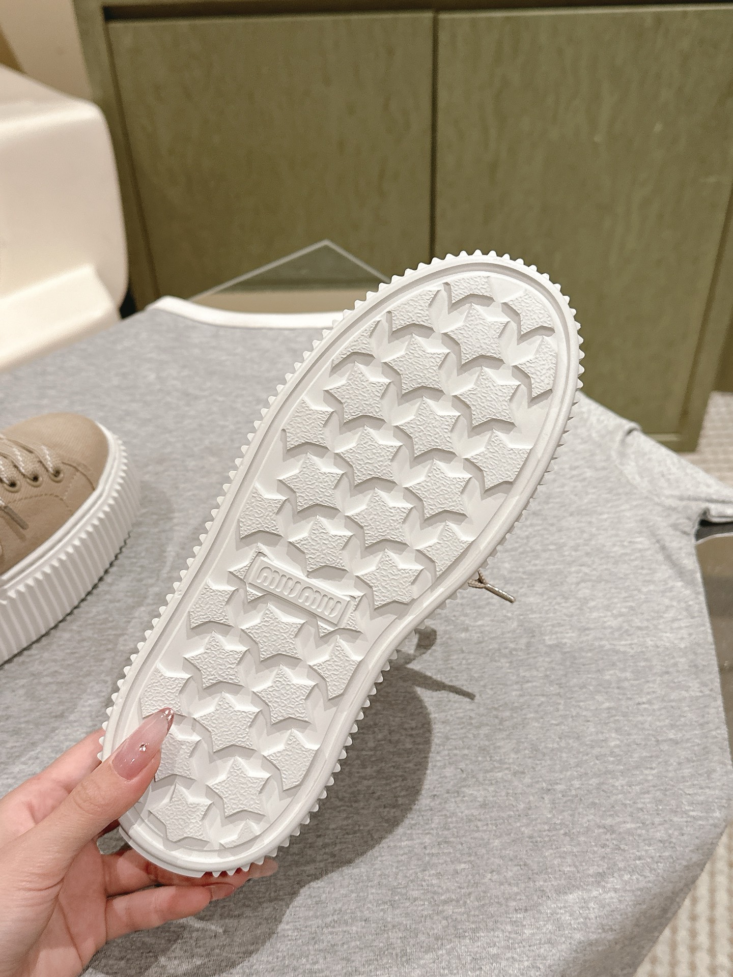 这款鞋子是AAAAA 1:1 质量 (非常棒). 使用了和原版一模一样的材料. 商标部分也保持了和缪缪/Miu Miu一样. 图片拍摄是实物鞋子拍摄, 您所收到的实物保证和我们图片一模一样.