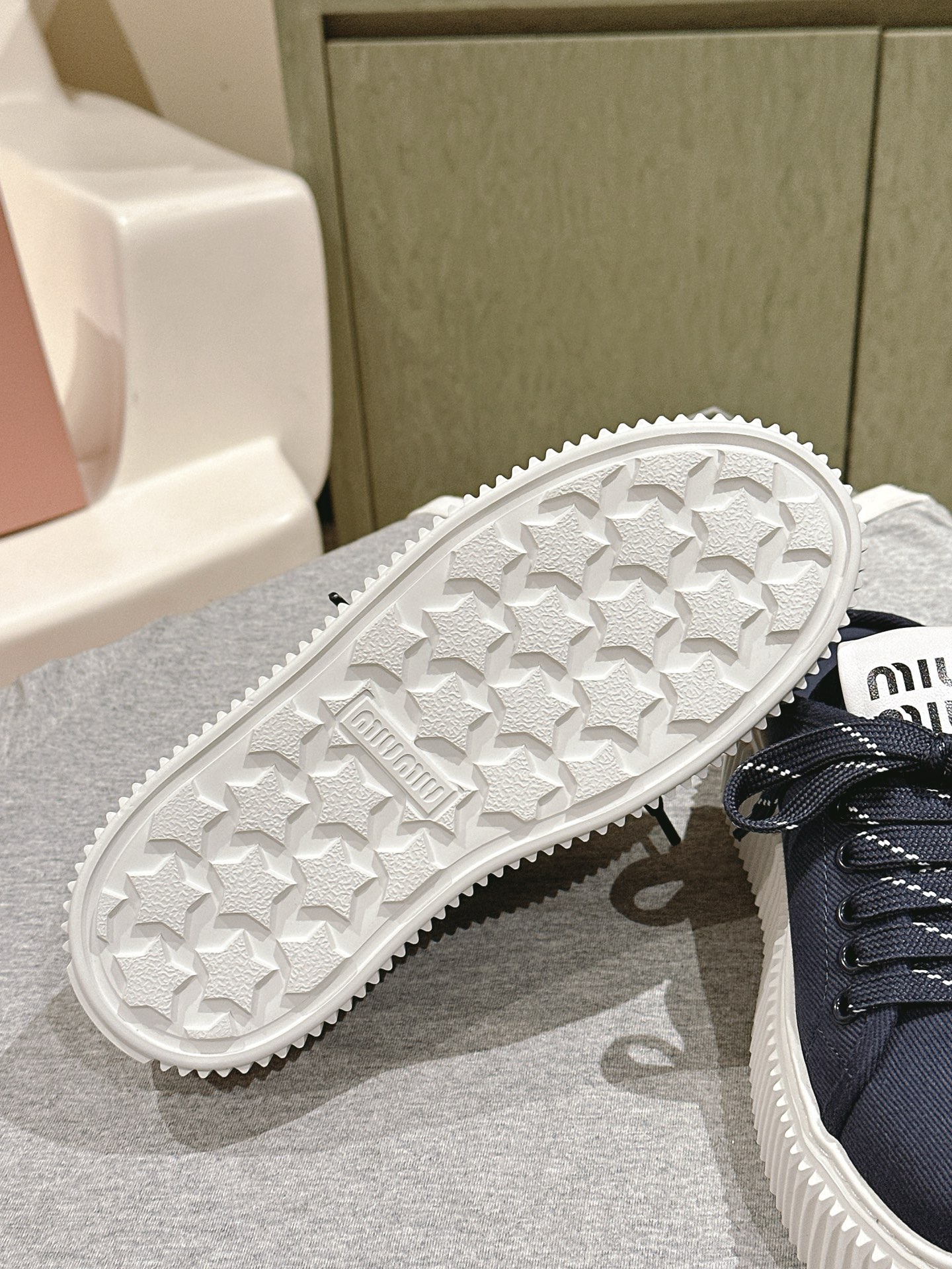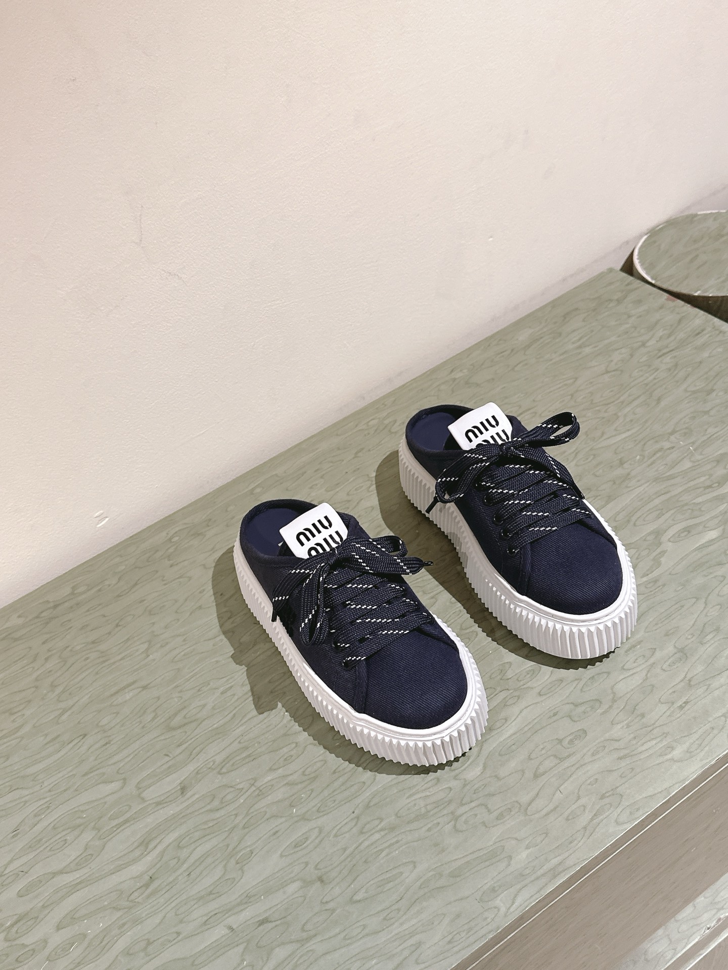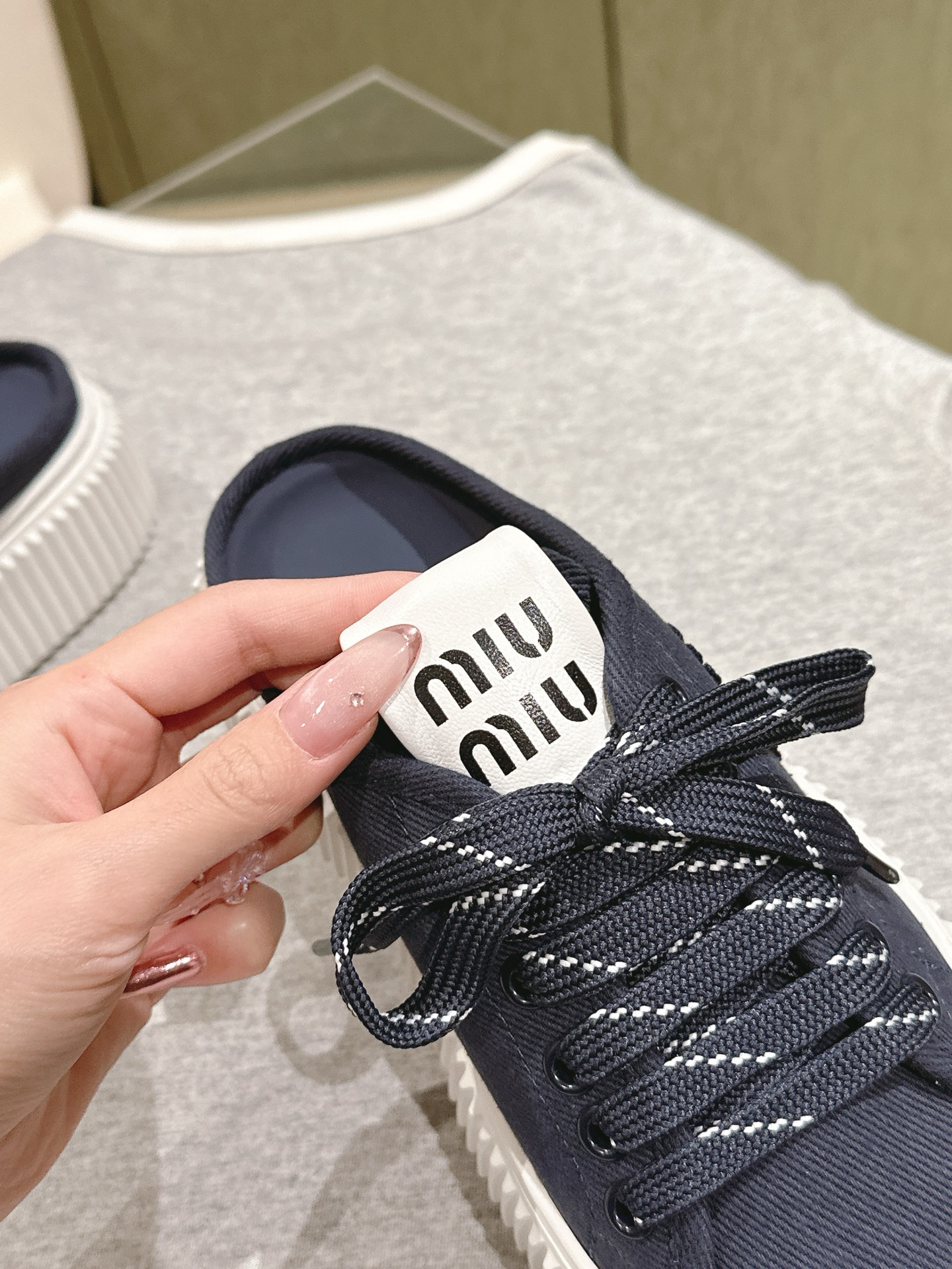 这款鞋子是AAAAA 1:1 质量 (非常棒). 使用了和原版一模一样的材料. 商标部分也保持了和缪缪/Miu Miu一样. 图片拍摄是实物鞋子拍摄, 您所收到的实物保证和我们图片一模一样.