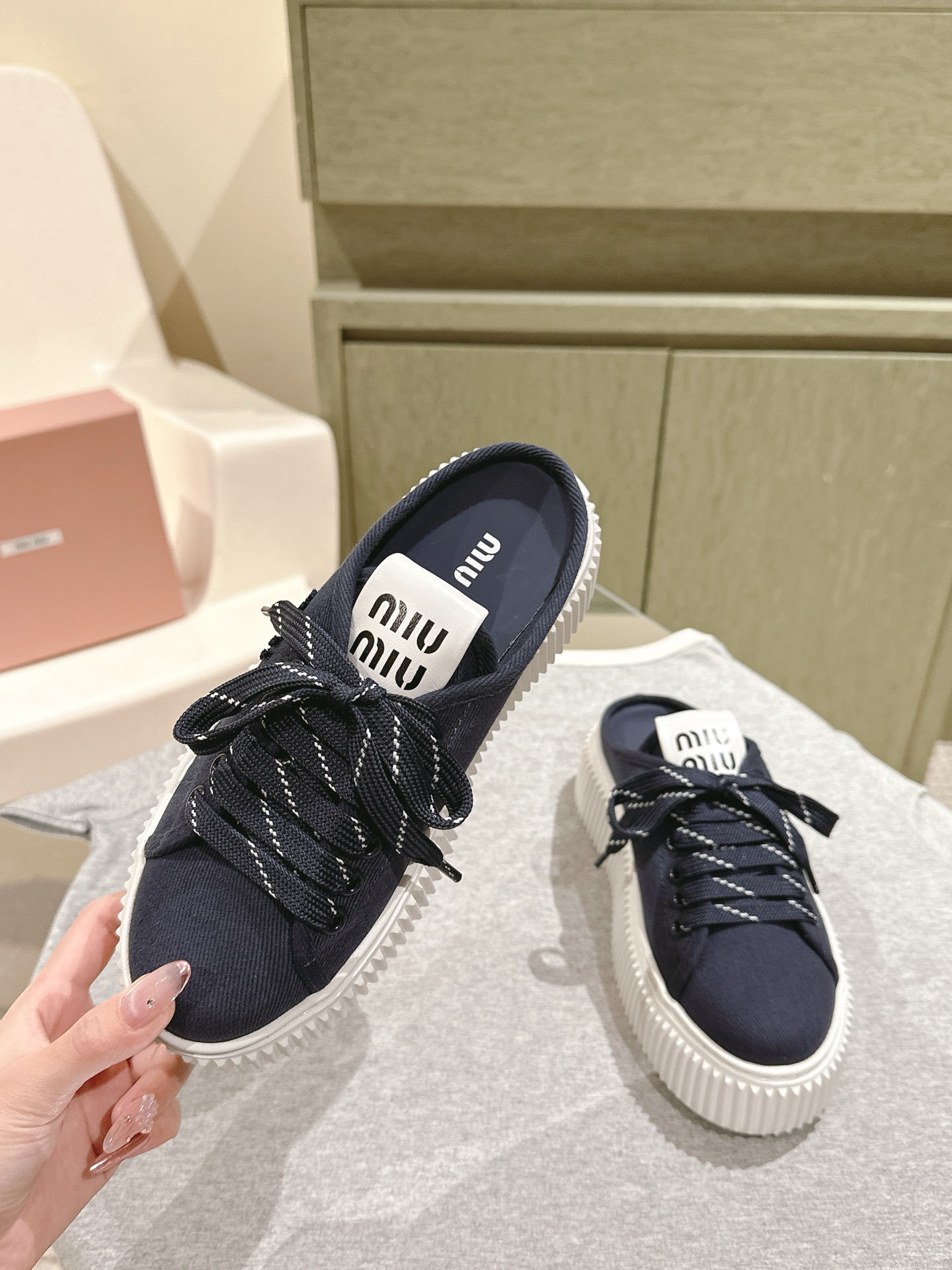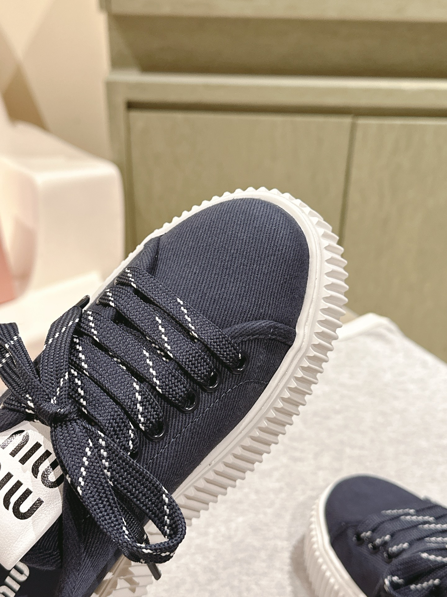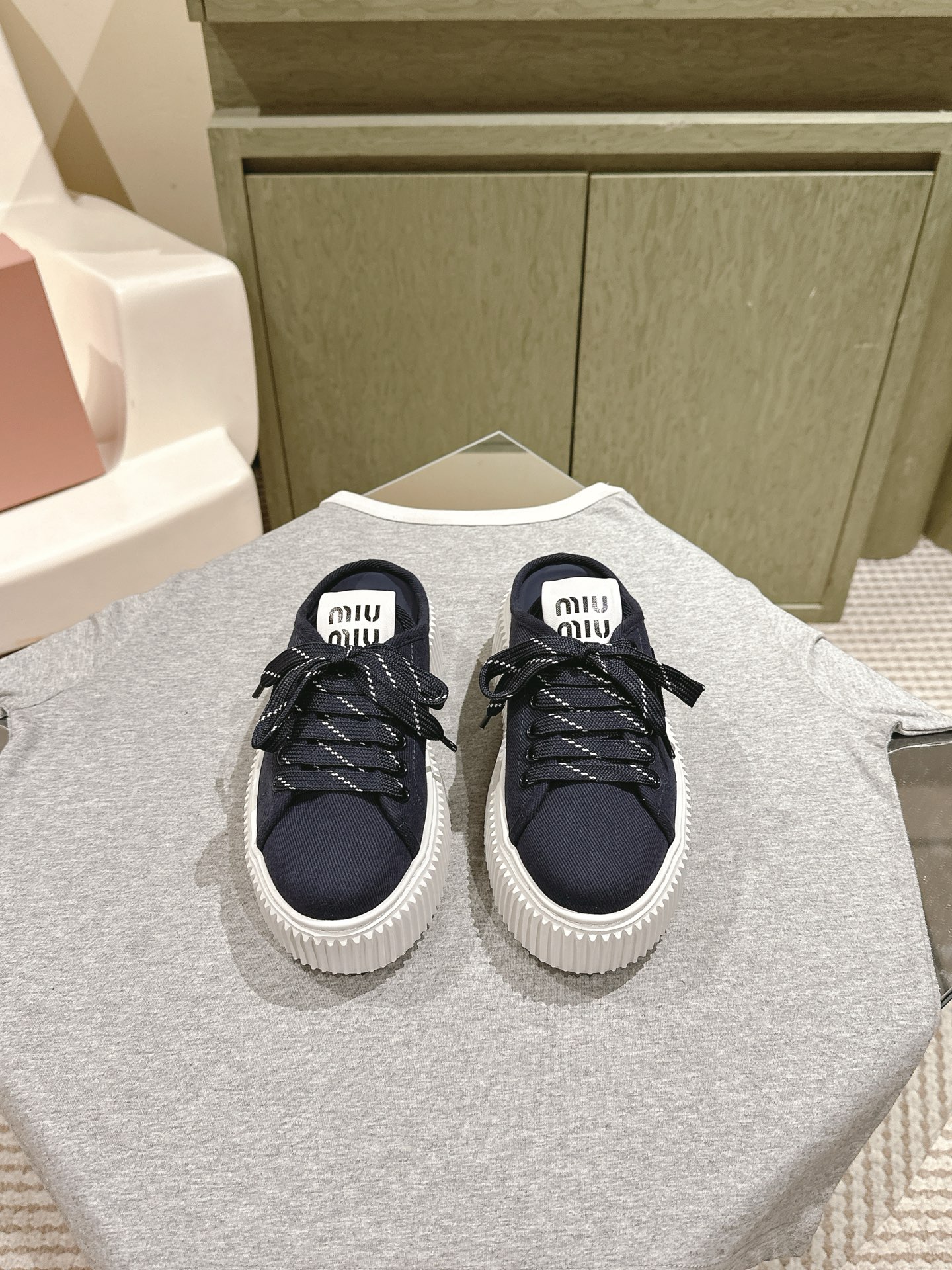 这款鞋子是AAAAA 1:1 质量 (非常棒). 使用了和原版一模一样的材料. 商标部分也保持了和缪缪/Miu Miu一样. 图片拍摄是实物鞋子拍摄, 您所收到的实物保证和我们图片一模一样.