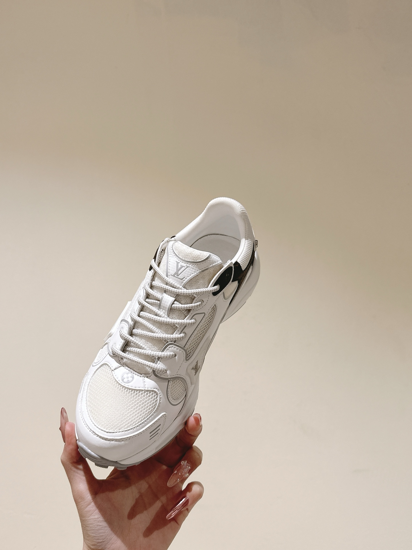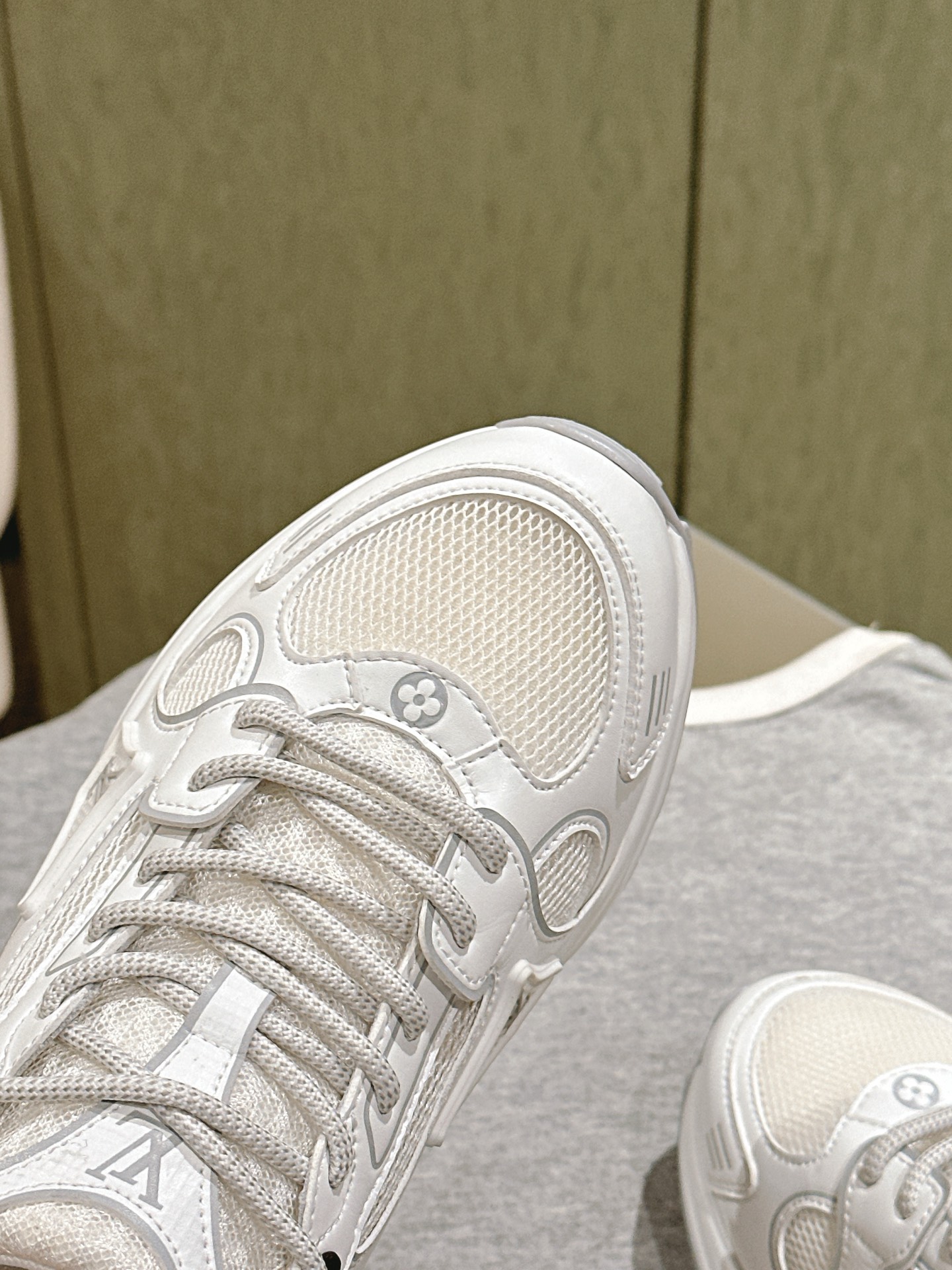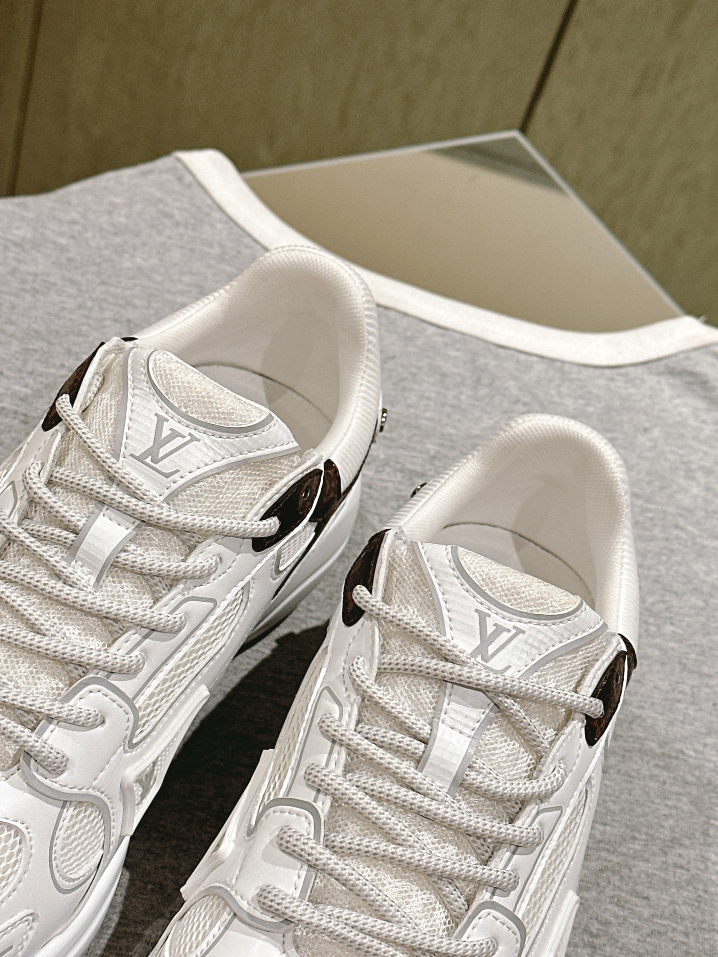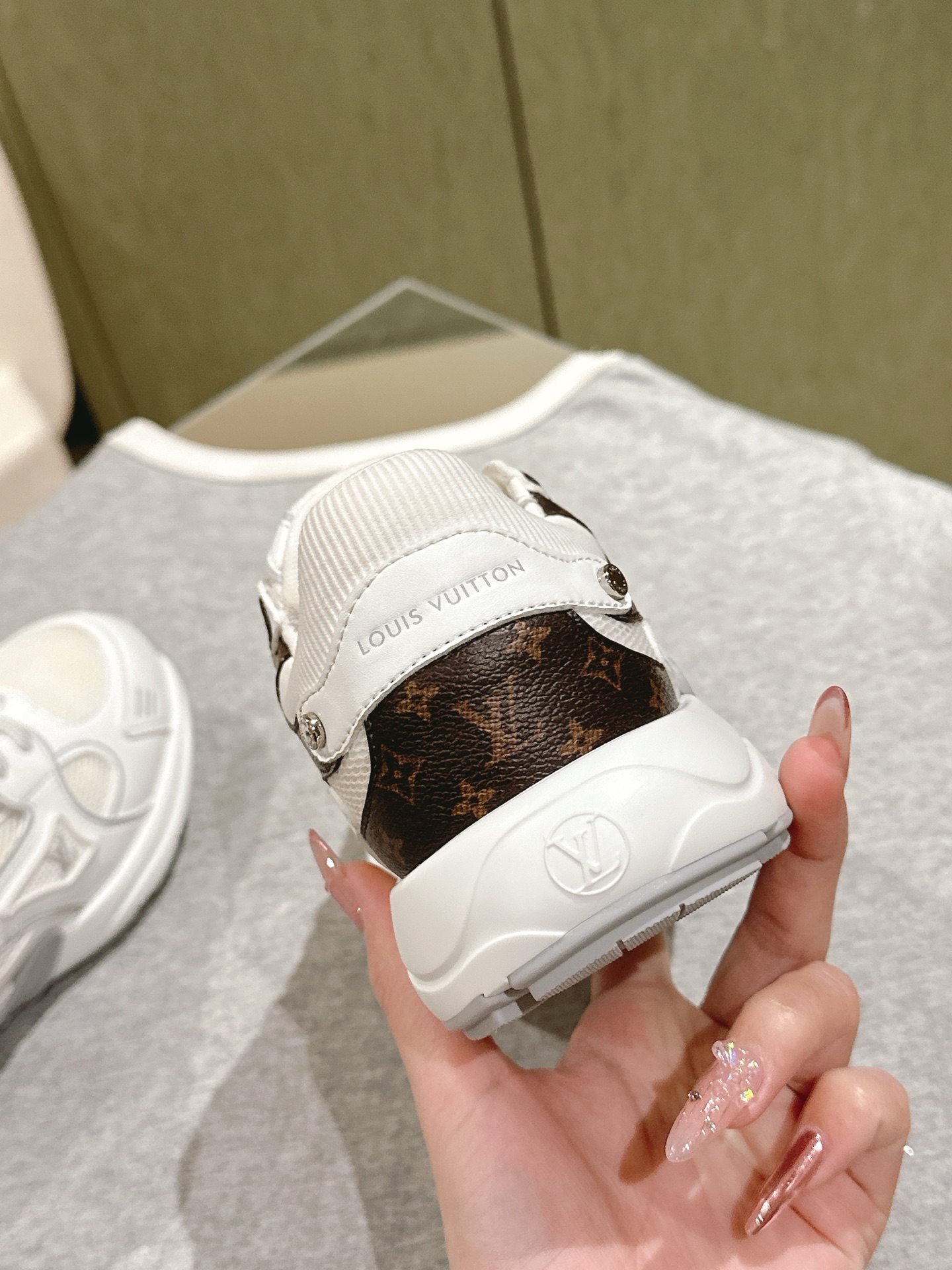 这款鞋子是AAAAA 1:1 质量 (非常棒). 使用了和原版一模一样的材料. 商标部分也保持了和路易威登/Louis Vuitton一样. 图片拍摄是实物鞋子拍摄, 您所收到的实物保证和我们图片一模一样.