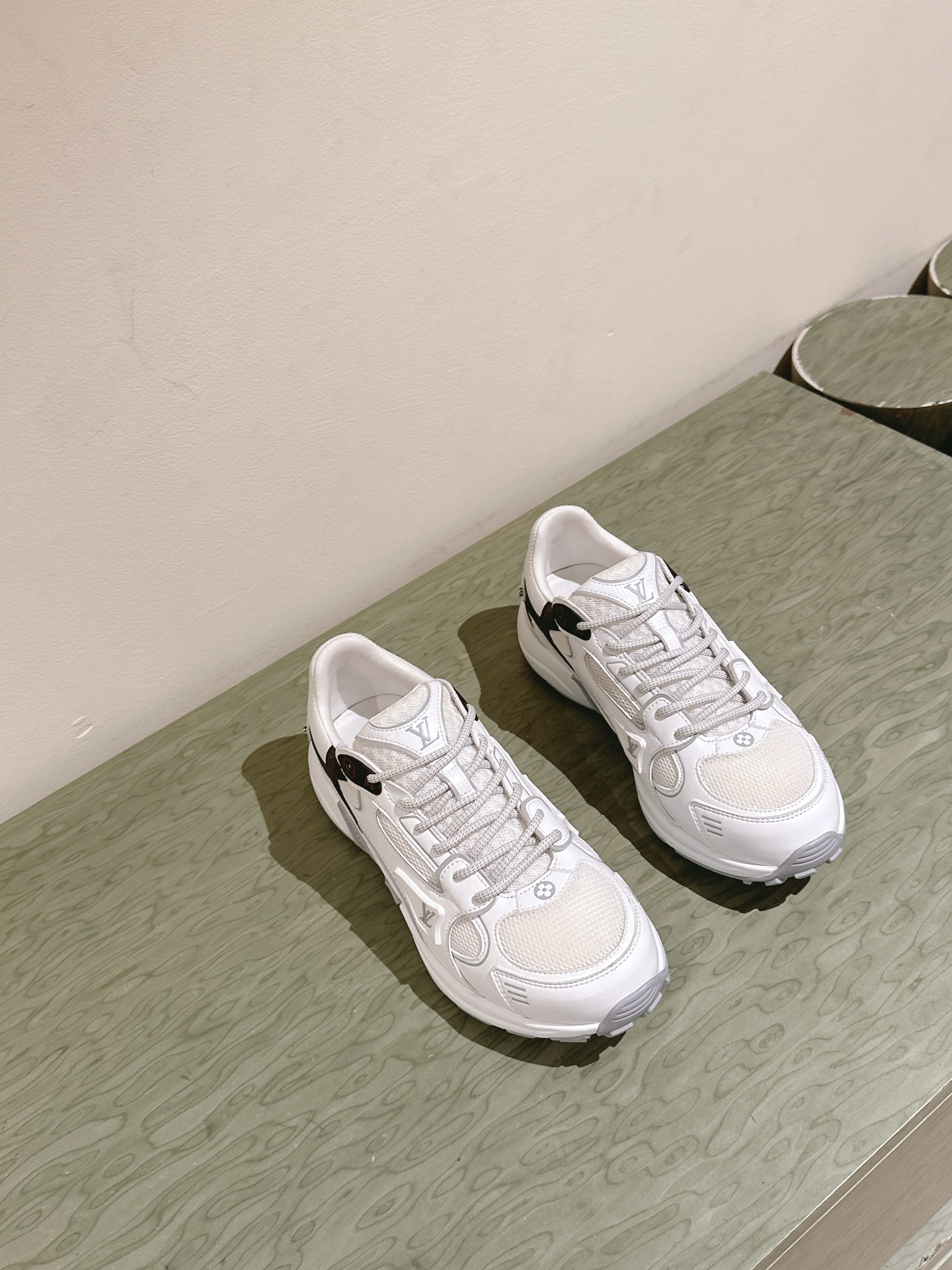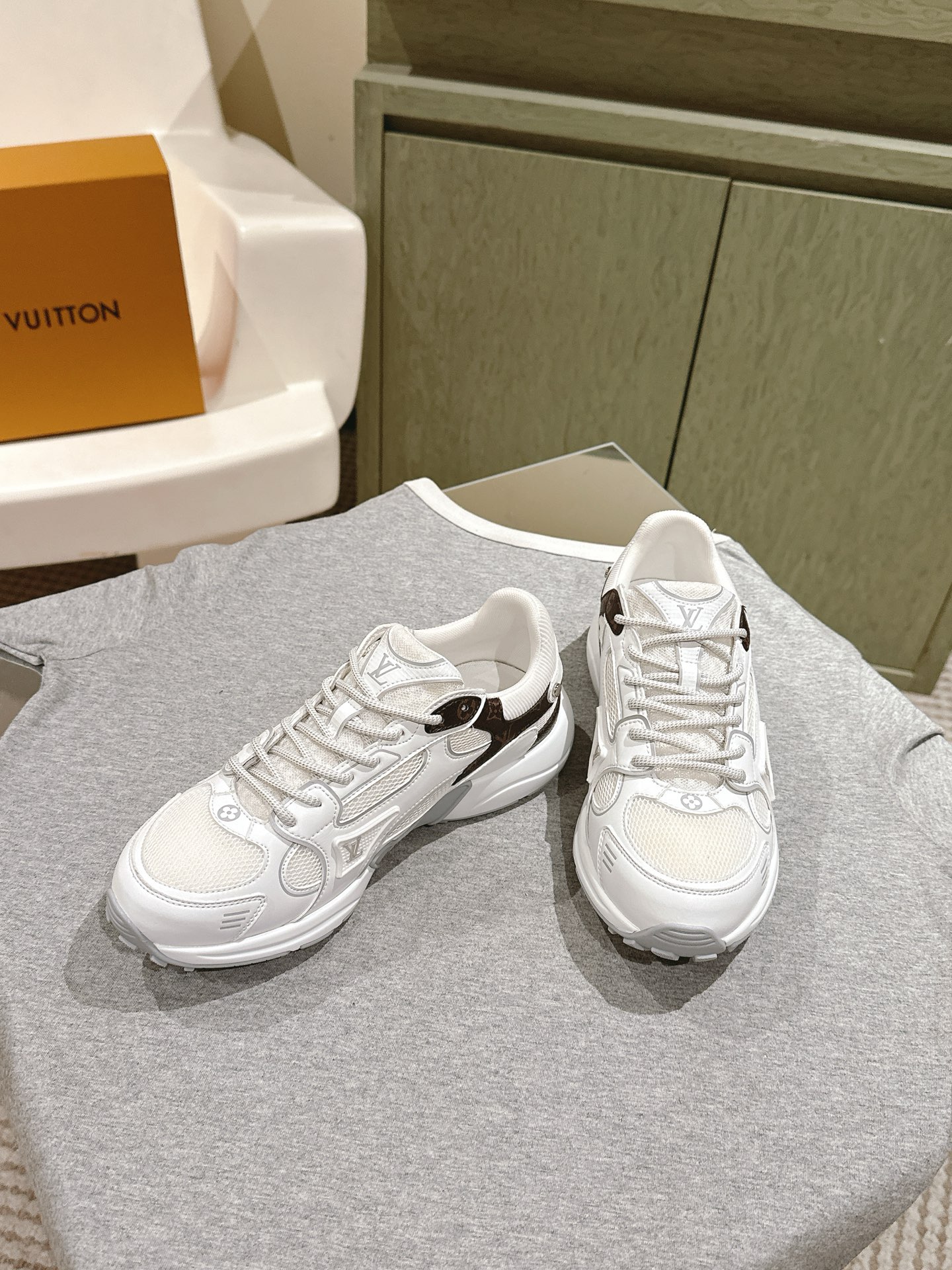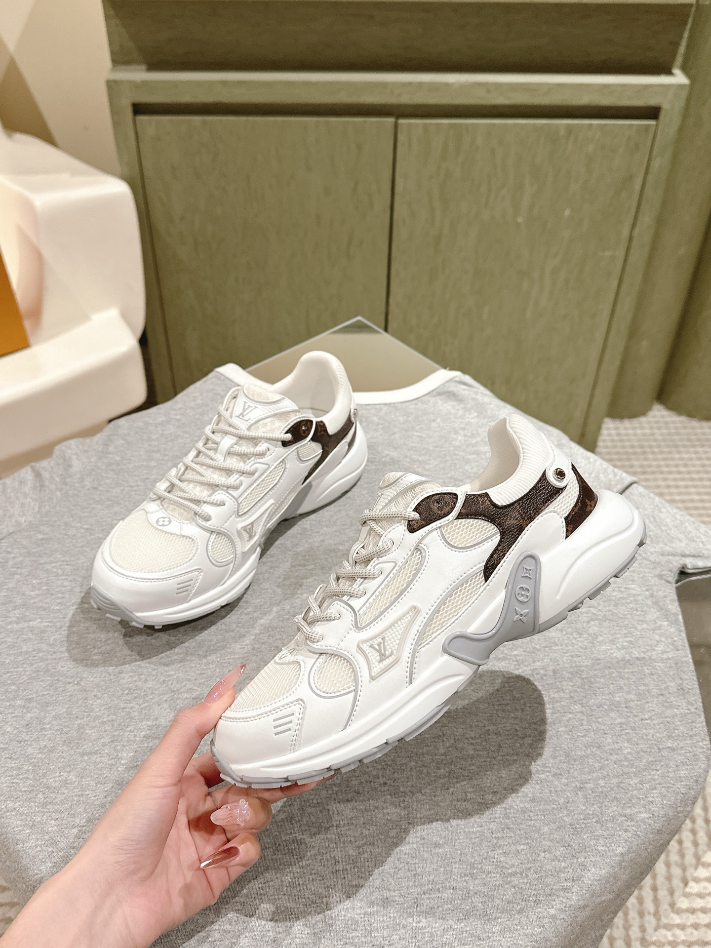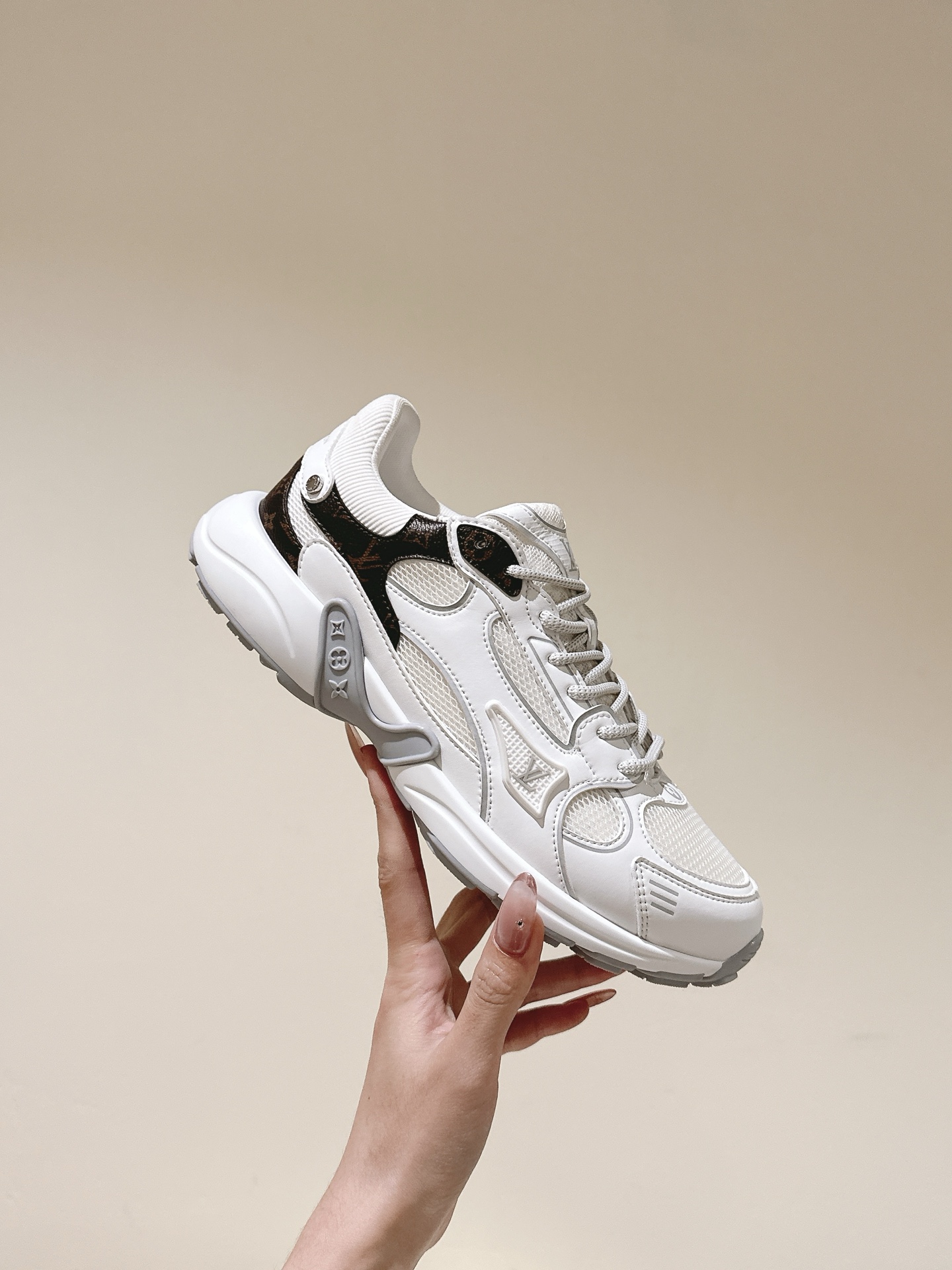 这款鞋子是AAAAA 1:1 质量 (非常棒). 使用了和原版一模一样的材料. 商标部分也保持了和路易威登/Louis Vuitton一样. 图片拍摄是实物鞋子拍摄, 您所收到的实物保证和我们图片一模一样.