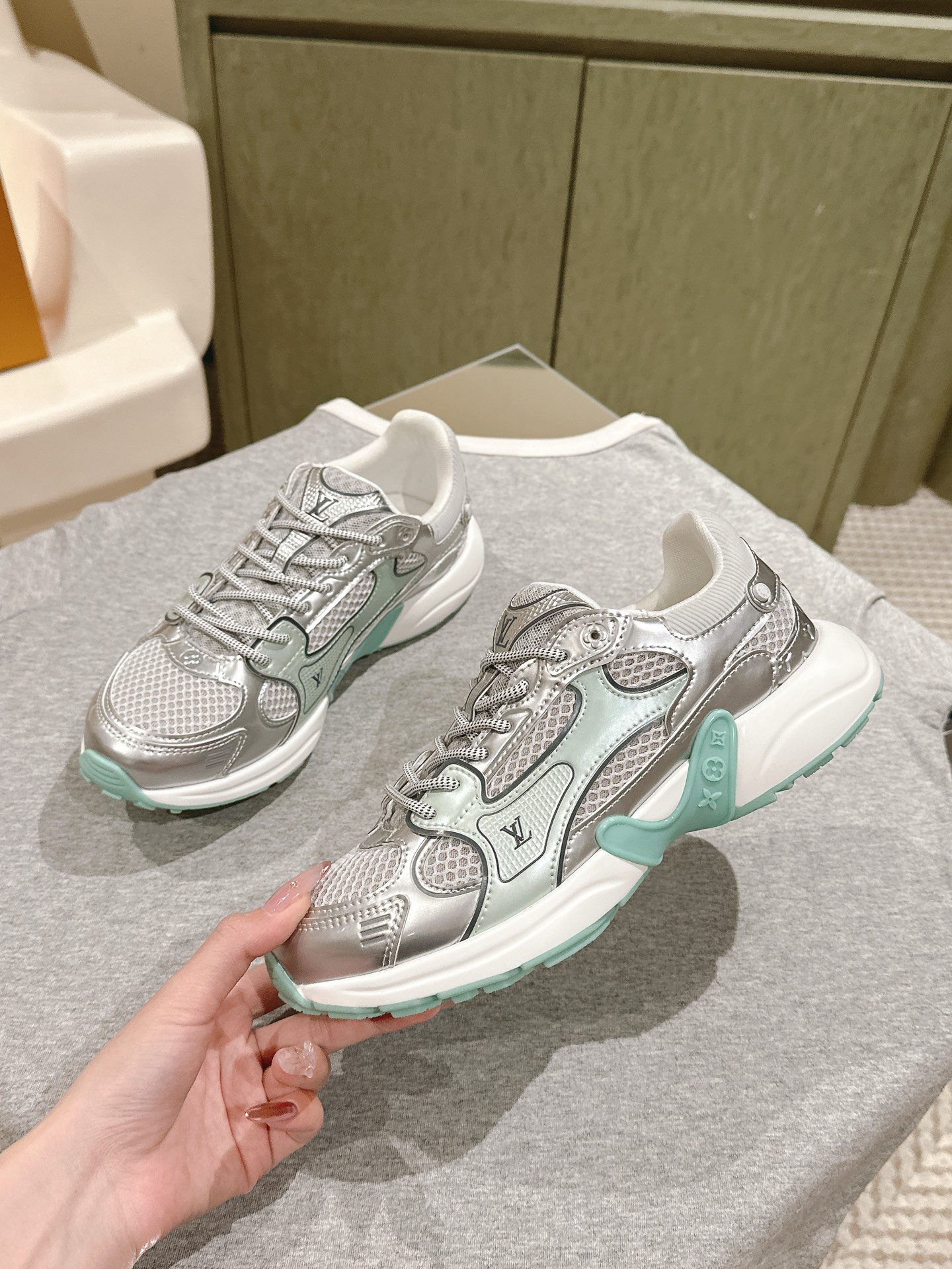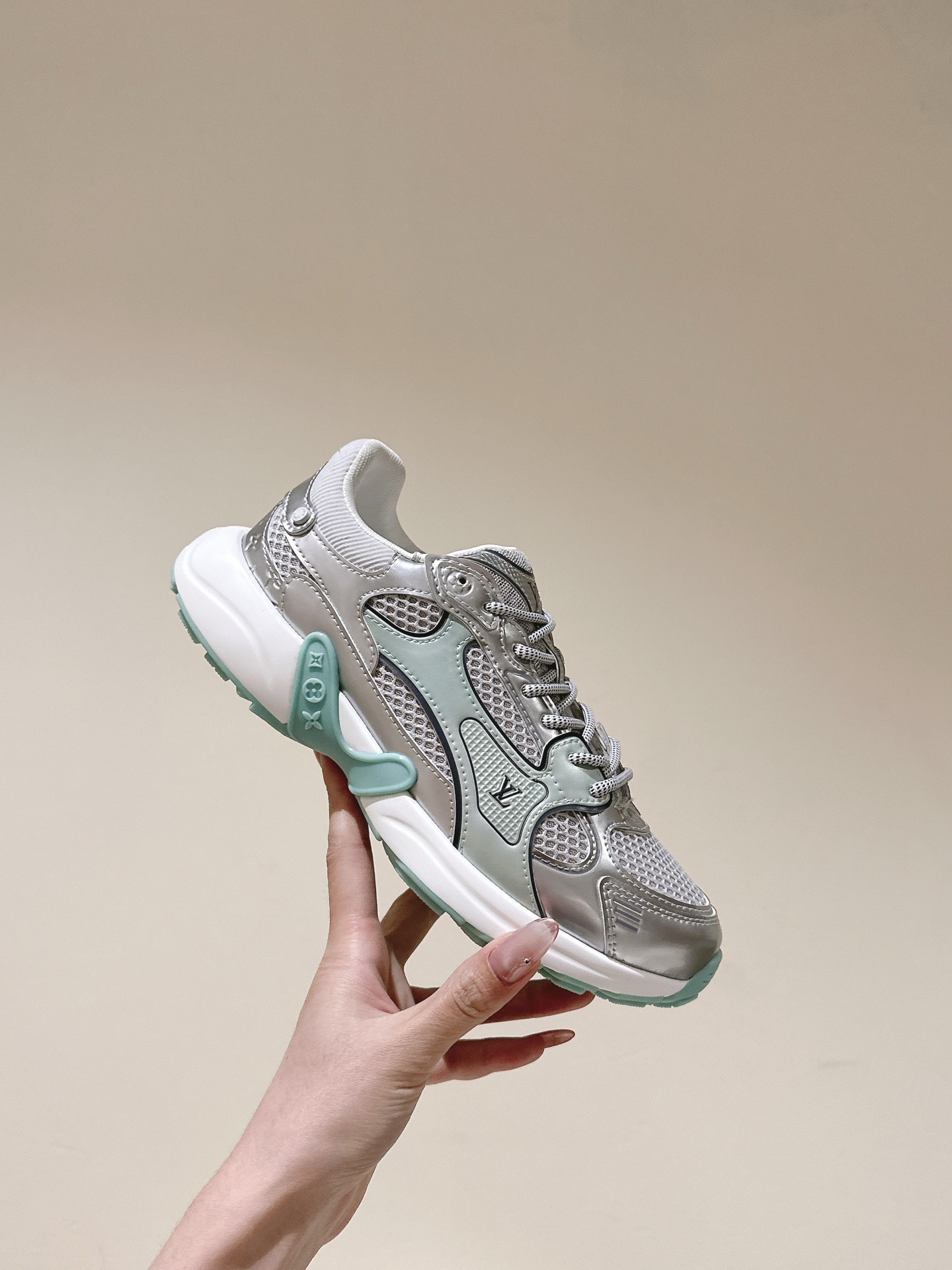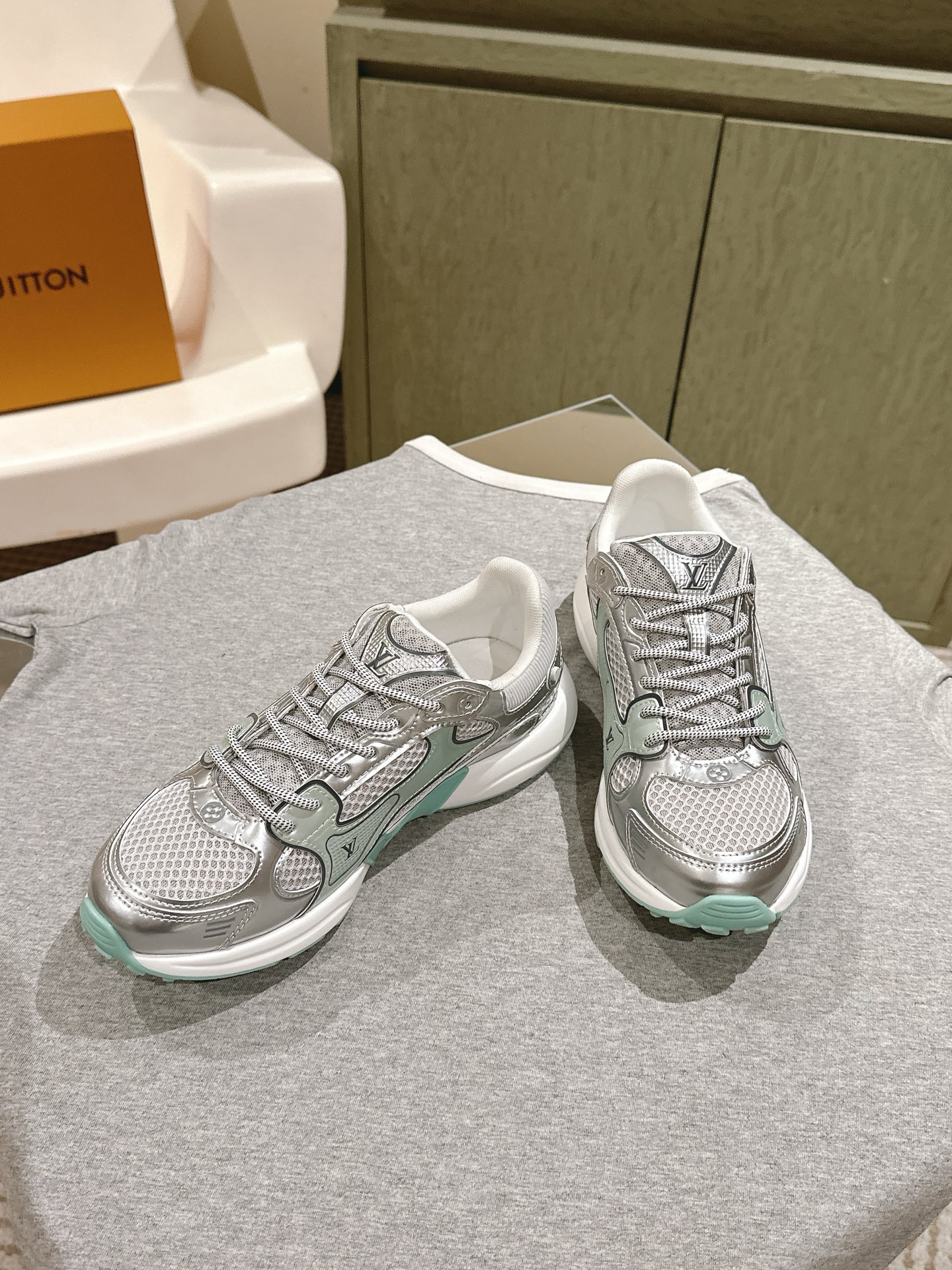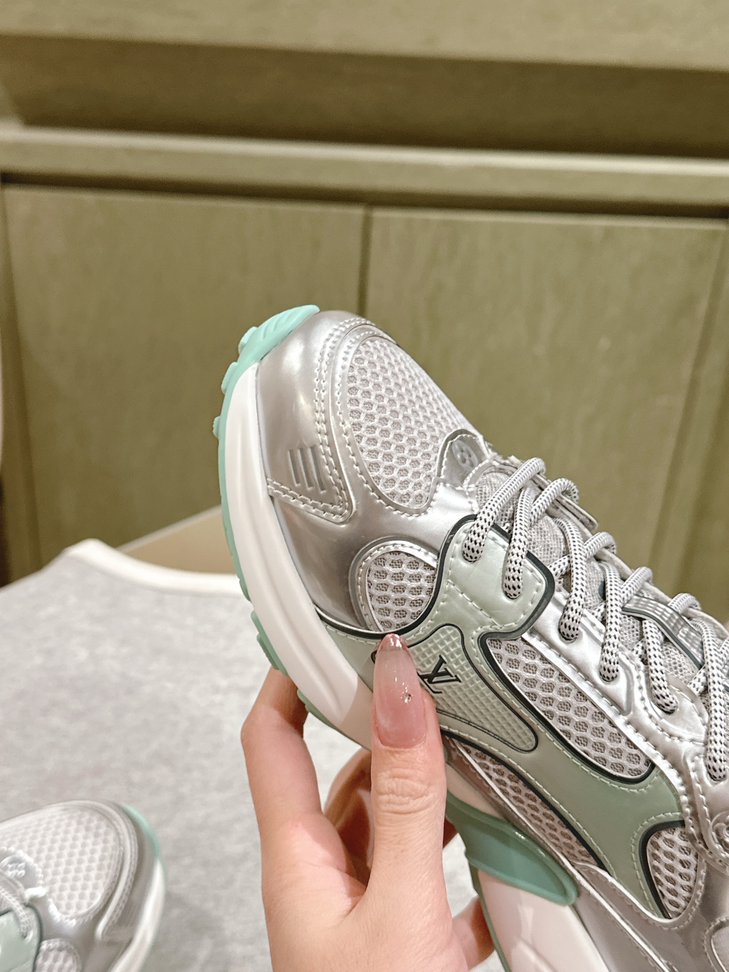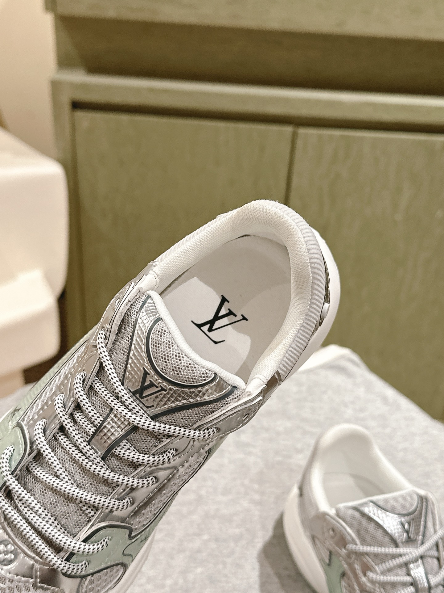 这款鞋子是AAAAA 1:1 质量 (非常棒). 使用了和原版一模一样的材料. 商标部分也保持了和路易威登/Louis Vuitton一样. 图片拍摄是实物鞋子拍摄, 您所收到的实物保证和我们图片一模一样.
