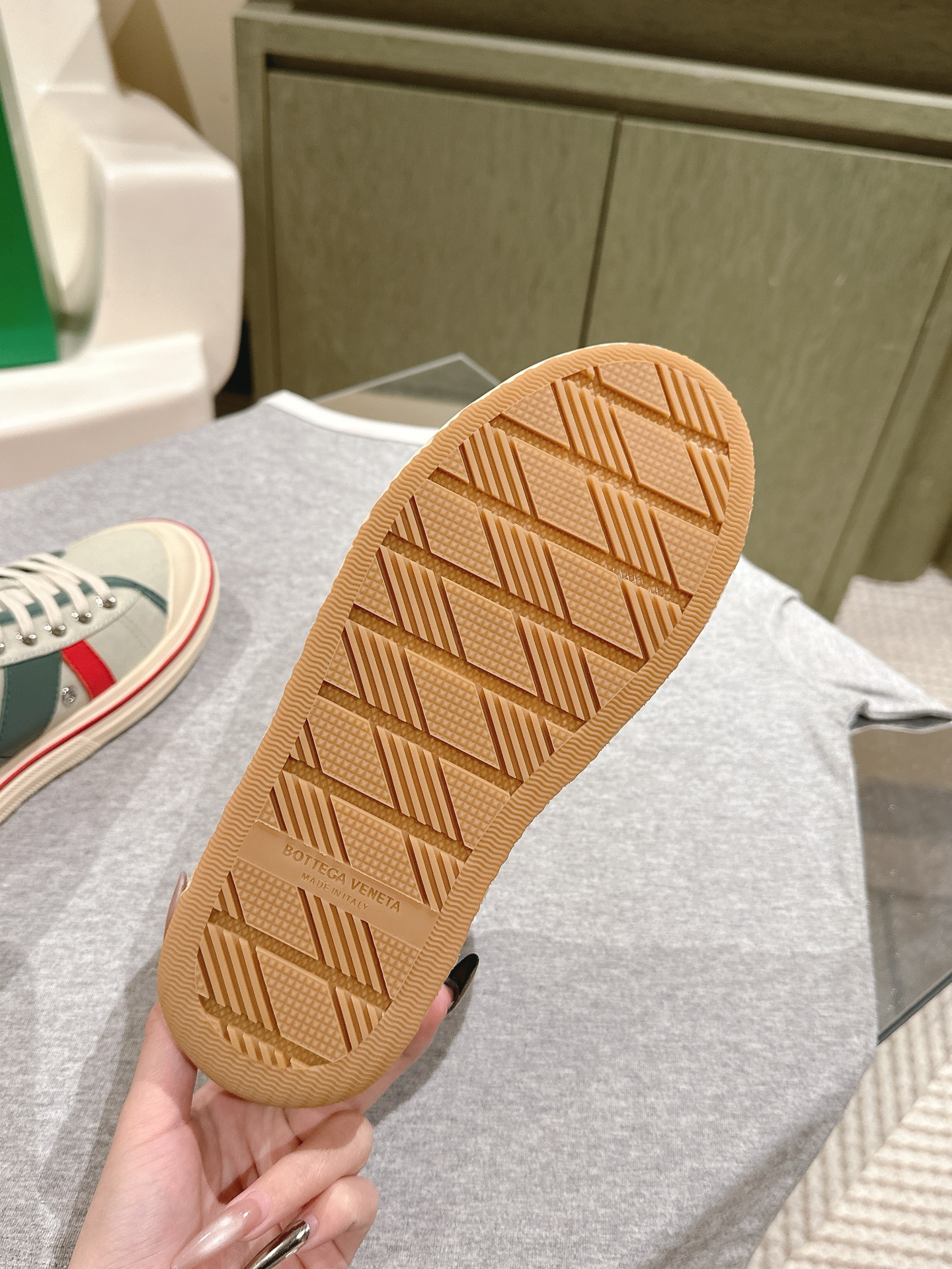 这款鞋子是AAAAA 1:1 质量 (非常棒). 使用了和原版一模一样的材料. 商标部分也保持了和葆蝶家/Bottega Veneta一样. 图片拍摄是实物鞋子拍摄, 您所收到的实物保证和我们图片一模一样.