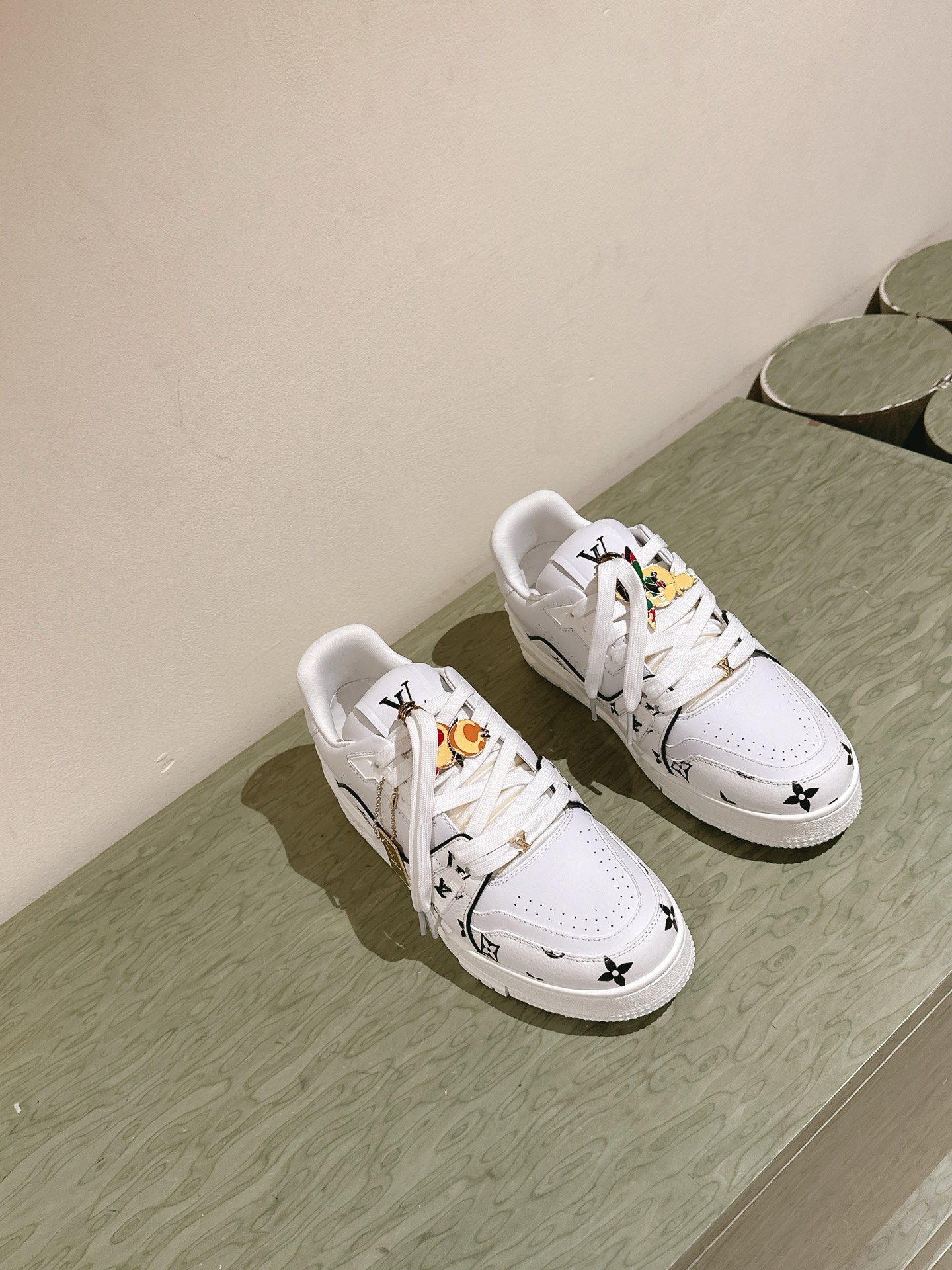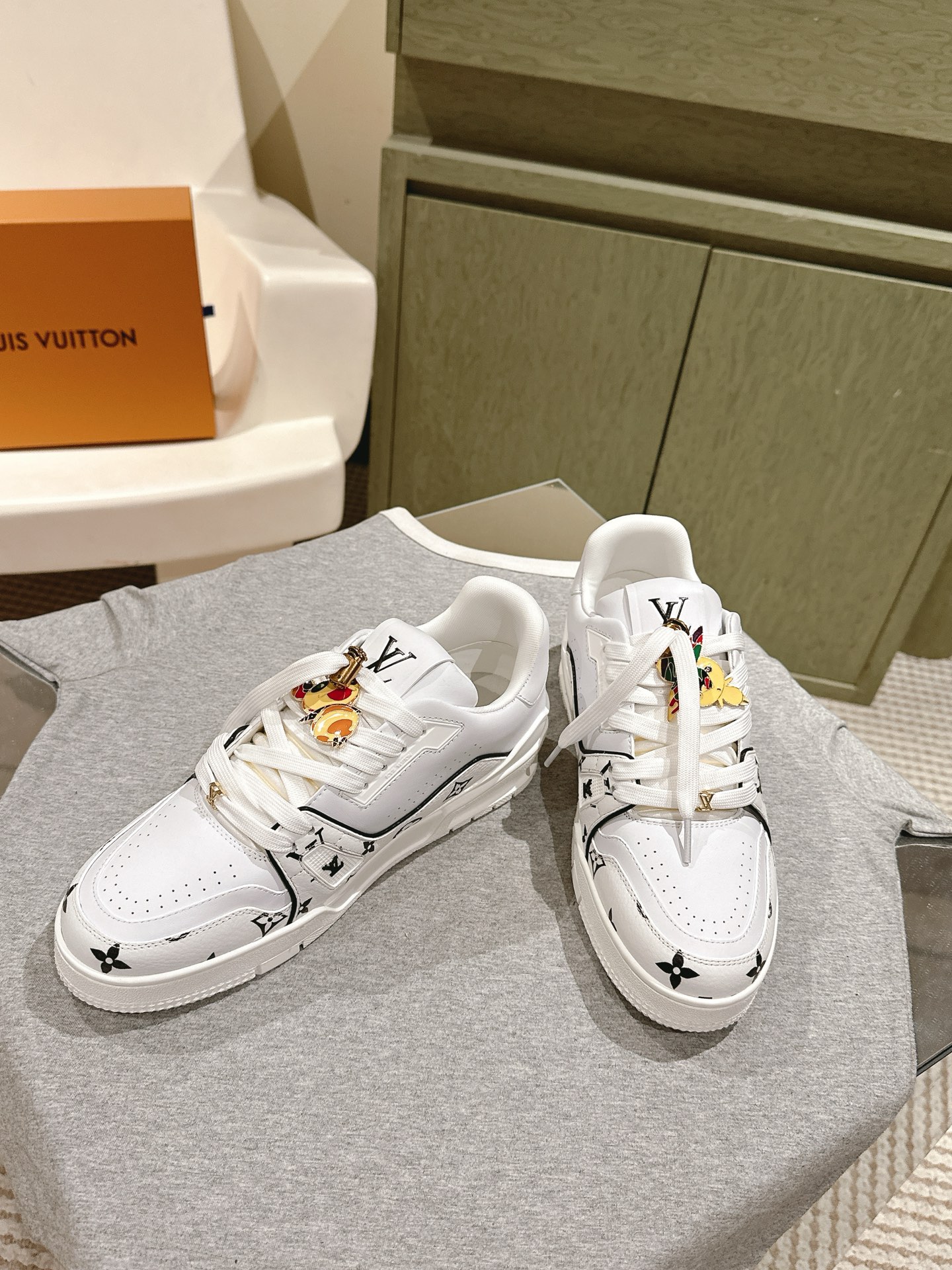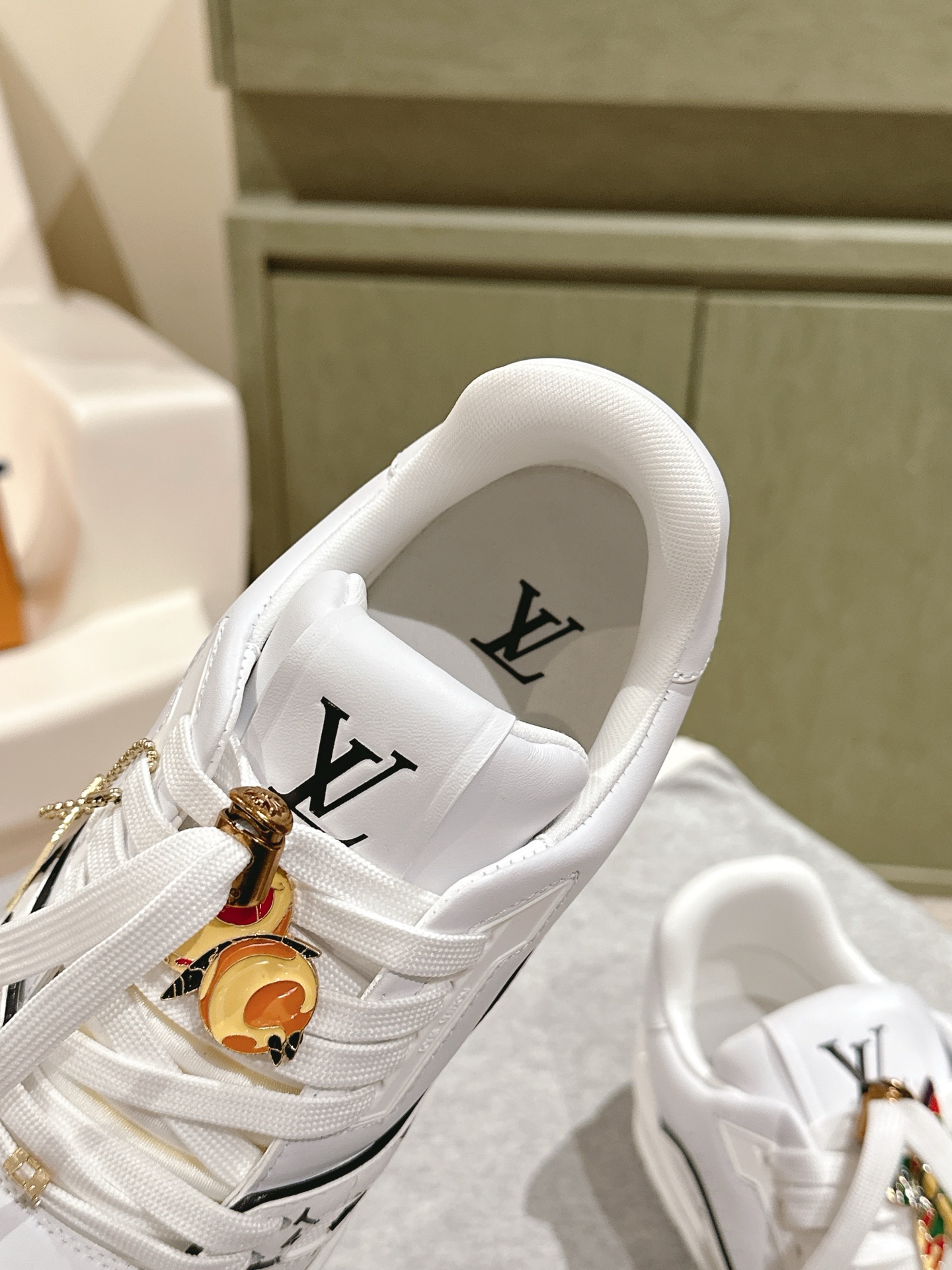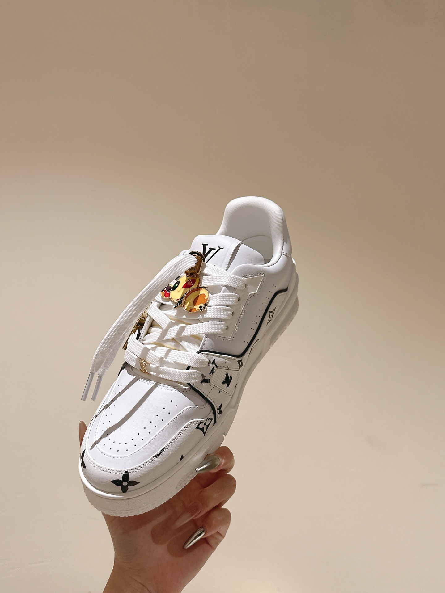 这款鞋子是AAAAA 1:1 质量 (非常棒). 使用了和原版一模一样的材料. 商标部分也保持了和路易威登/Louis Vuitton一样. 图片拍摄是实物鞋子拍摄, 您所收到的实物保证和我们图片一模一样.